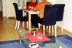 Auf dem Süd-Balkon steht ein kleiner Tisch mit 4 Stühlen.