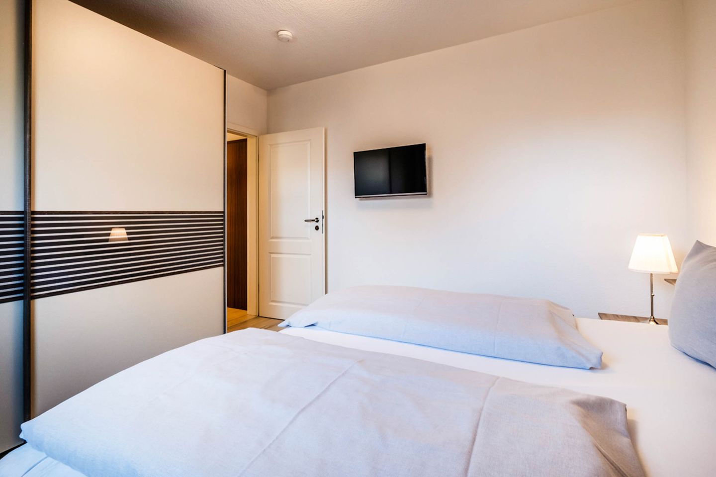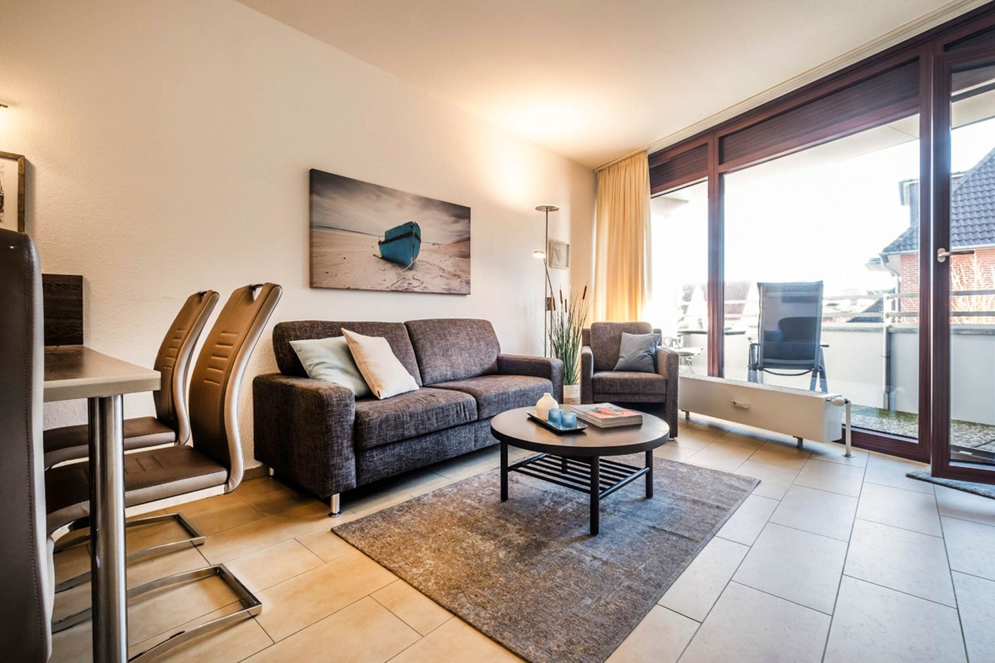 Die Wohnung besteht aus einem gemütlichen Schlafzimmer mit bequemen Schlafmöglichkeiten für bis zu zwei Personen und einem hellen, offenen Wohnbereich, der zum Entspannen einlädt. Der Wohnbereich ist mit einem Sofa und einem Esstisch ausgestattet, der genug Platz für gemeinsame Mahlzeiten bietet. Dank der großen Fenster können Sie die frische Nordseeluft hereinlassen und die Ausblicke auf die Umgebung genießen. Außerdem stehen Ihnen zwei Fernseher sowie eine HiFi-Stereoanlage mit CD, DAB+/FM-Radio, USB und Bluetooth + WLAN zur Verfügung, damit Sie während Ihres Aufenthalts stets unterhalten sind und mit Ihren Liebsten in Kontakt bleiben können.