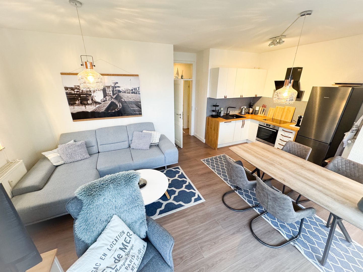Der Balkon bietet eine ruhige Oase im Freien, auf der Sie die frische Meeresbrise genießen können. Die Wohnung ist zudem ideal für Familien, da Kinder willkommen sind und ein Garten zur gemeinschaftlichen Nutzung zur Verfügung steht. Haustiere sind ebenfalls erlaubt, sodass Sie Ihren vierbeinigen Freund mitbringen können. Zur Wohnung gehört ein PKW-Stellplatz. Im Haus gibt es die Möglichkeit Ihre Fahrräder unterzustellen.
