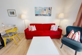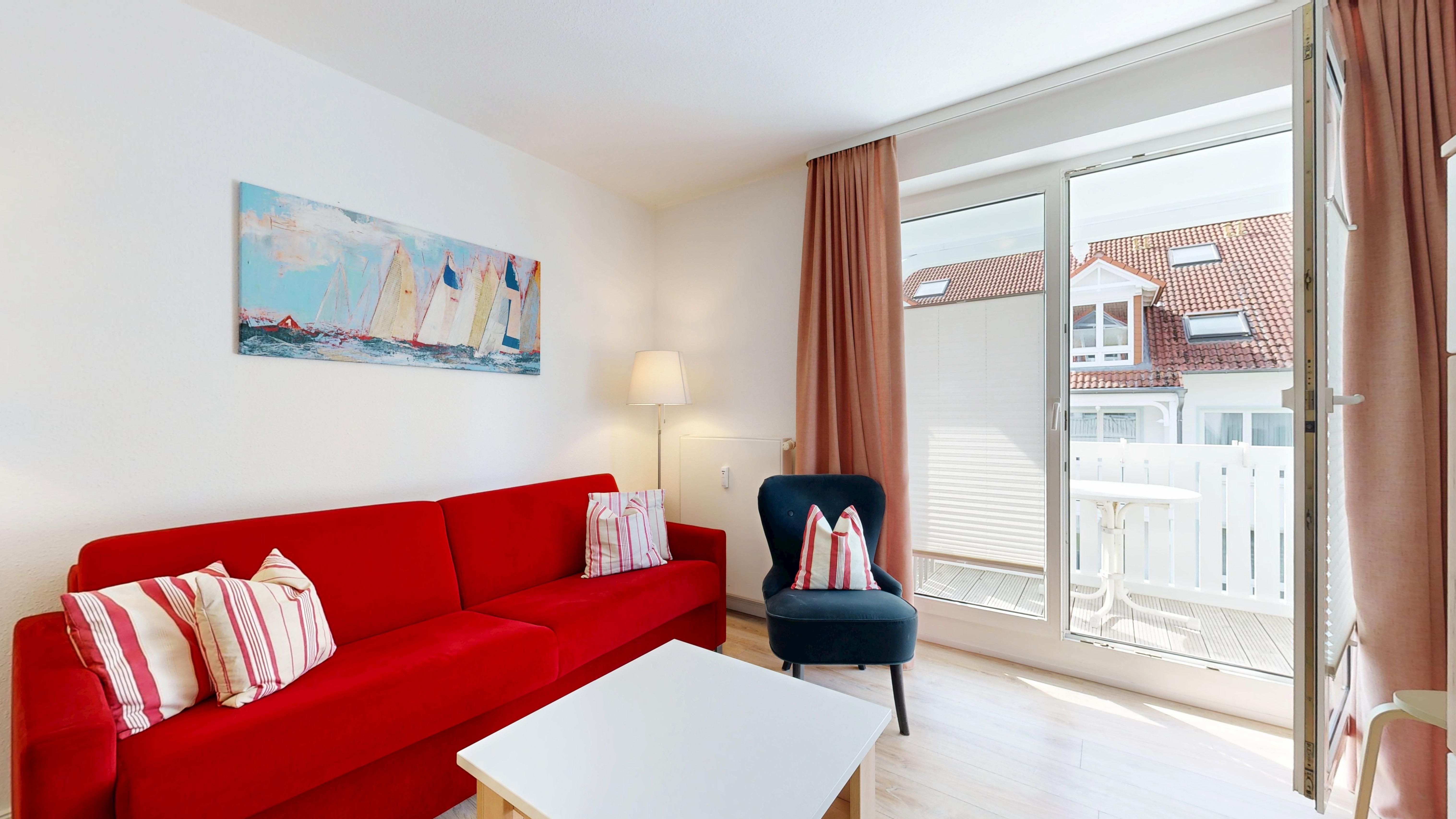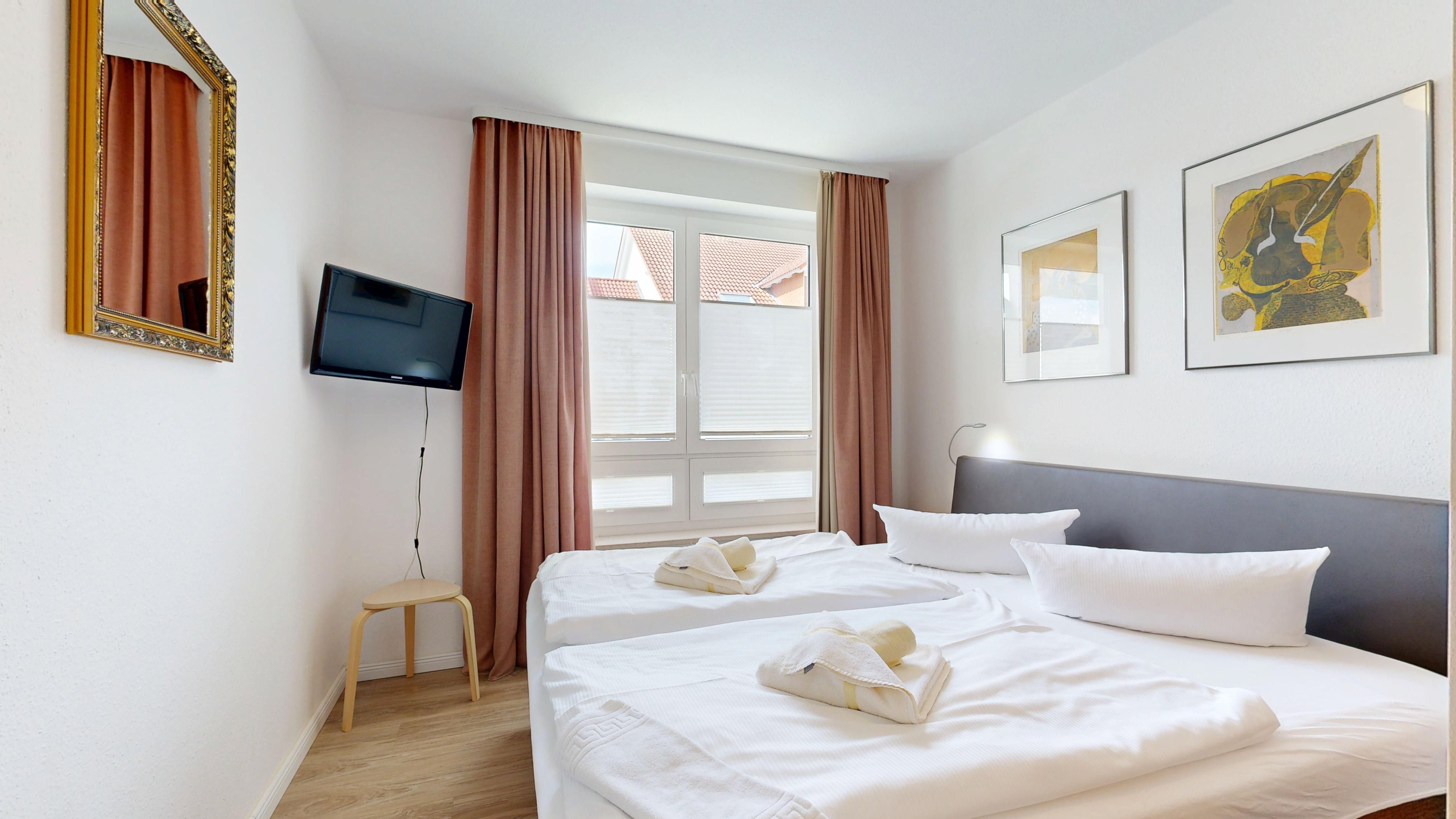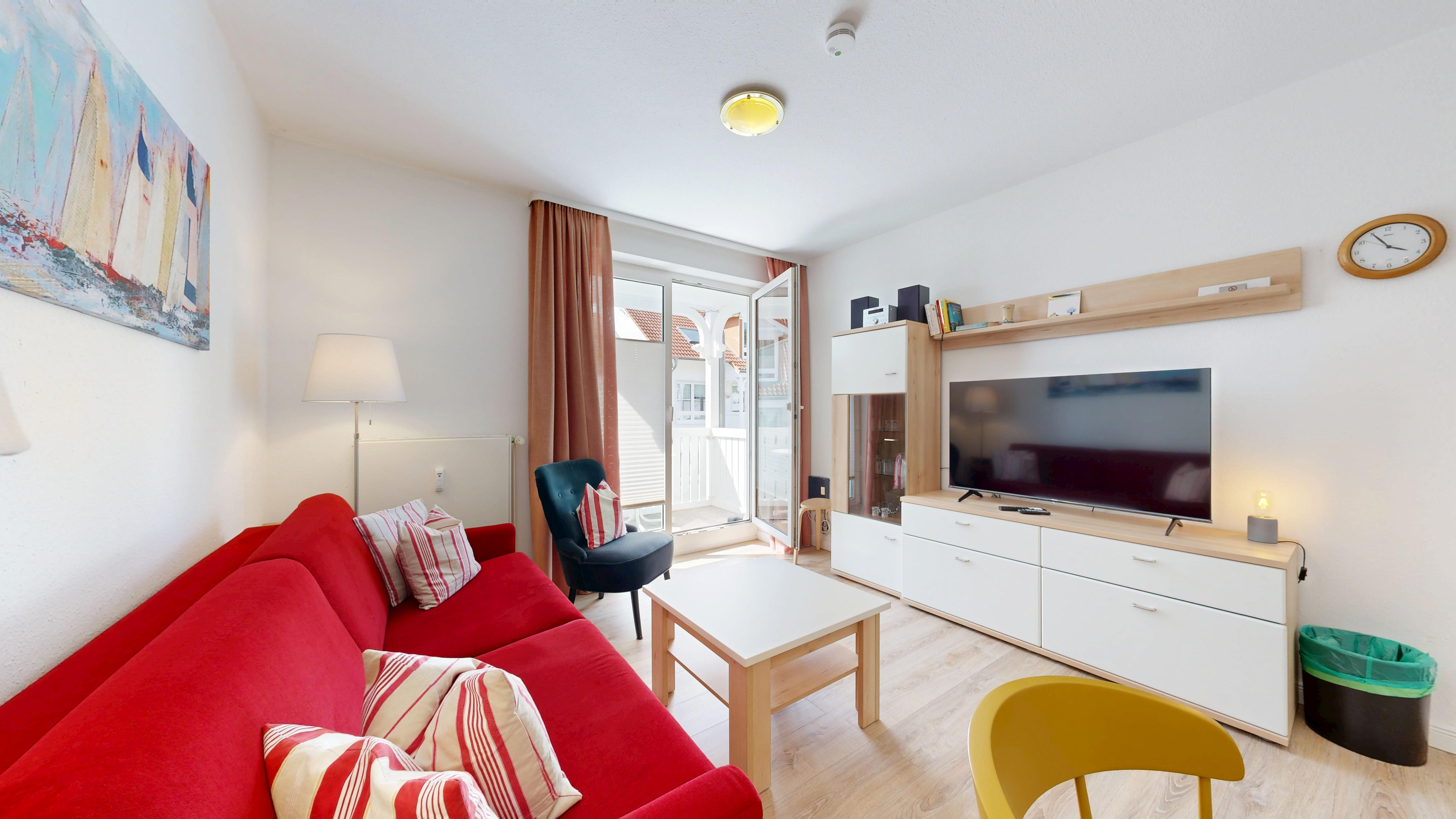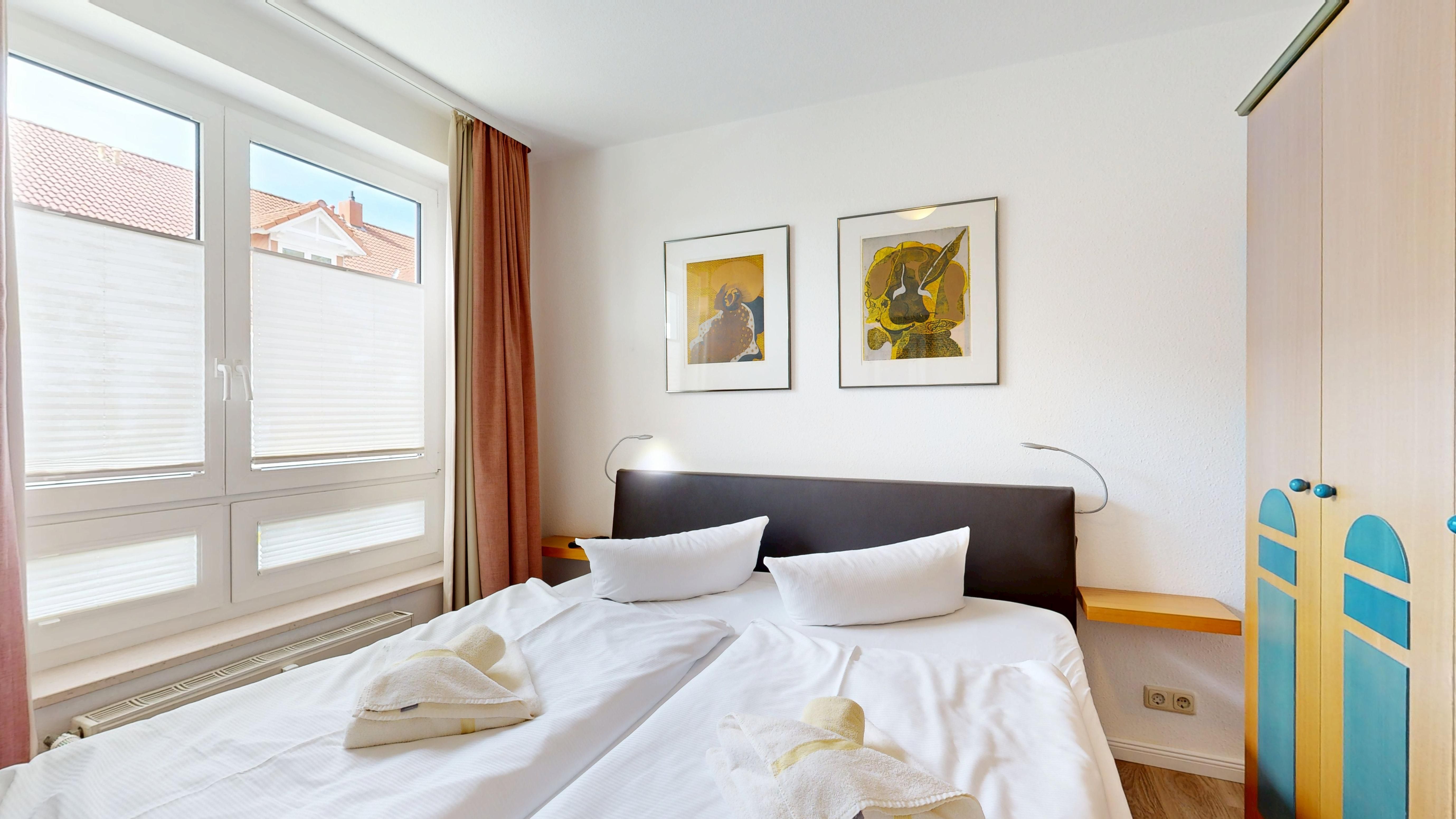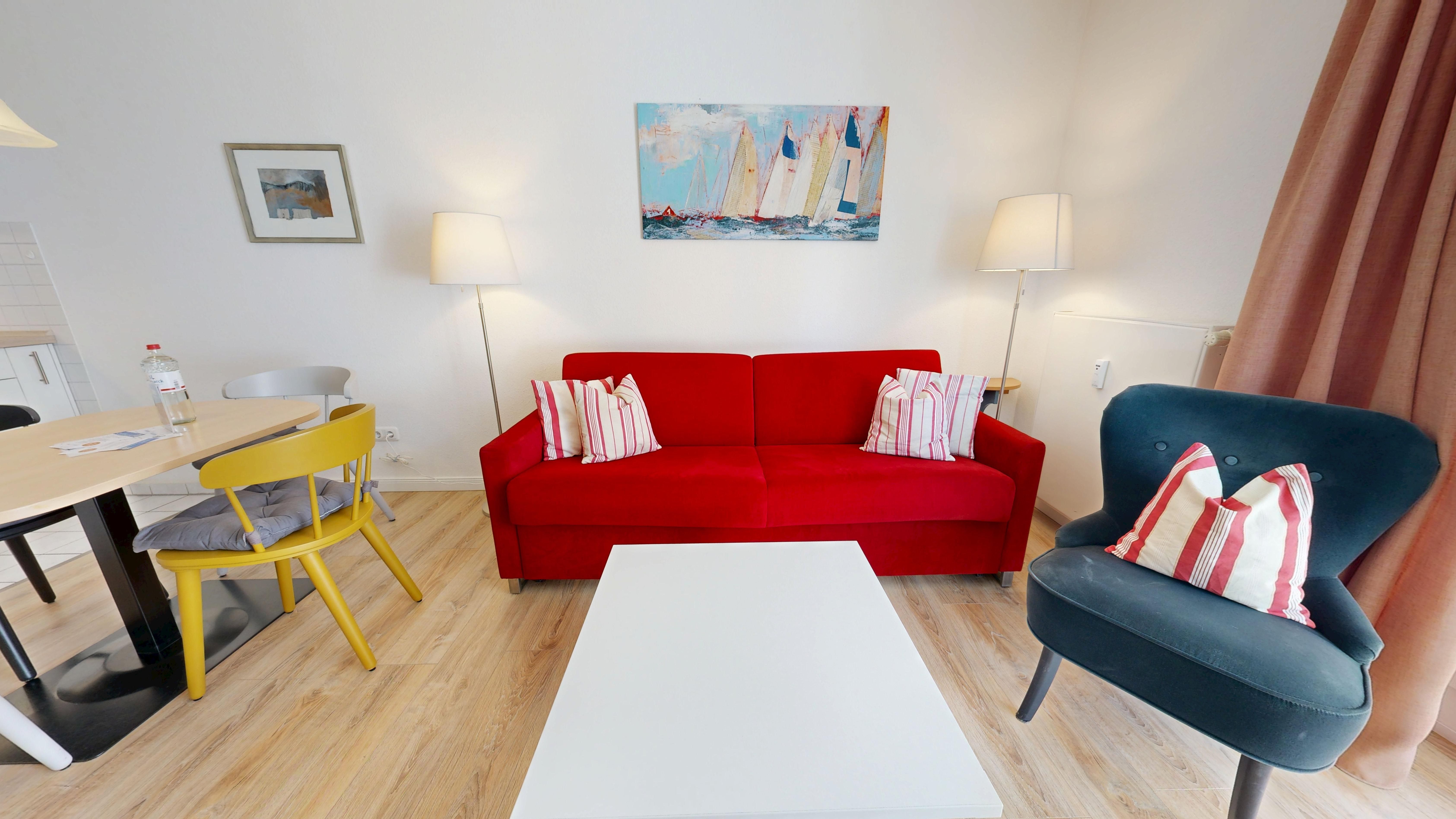 Ferienwohnung Binzer Sterne 29 für bis zu 4 Personen im 1. OG (2 Zimmer / 40 m²) des Appartementhauses Binzer Sterne, 1 Schlafzimmer, Parkplatz (gegen Gebühr) und freies WLAN.