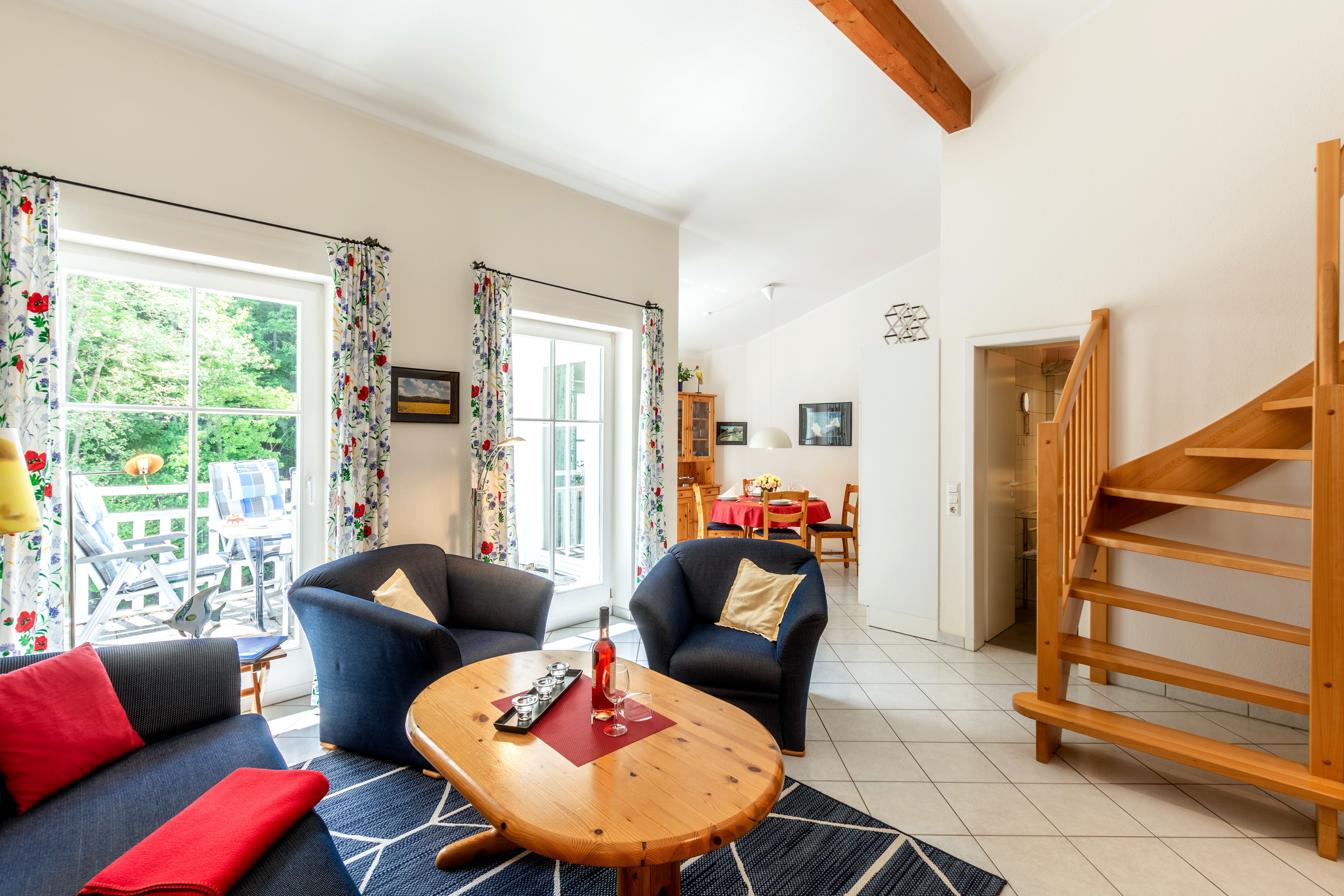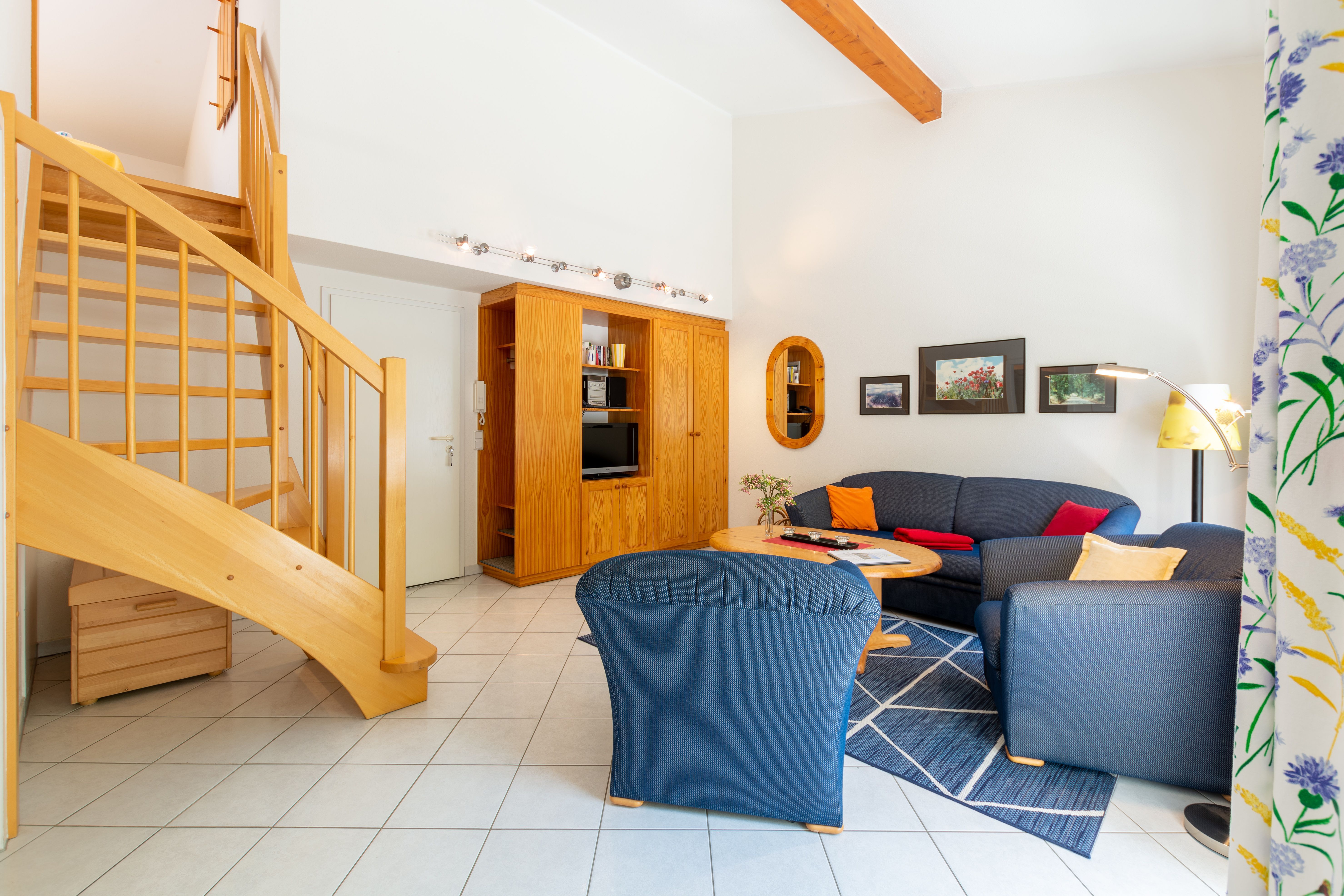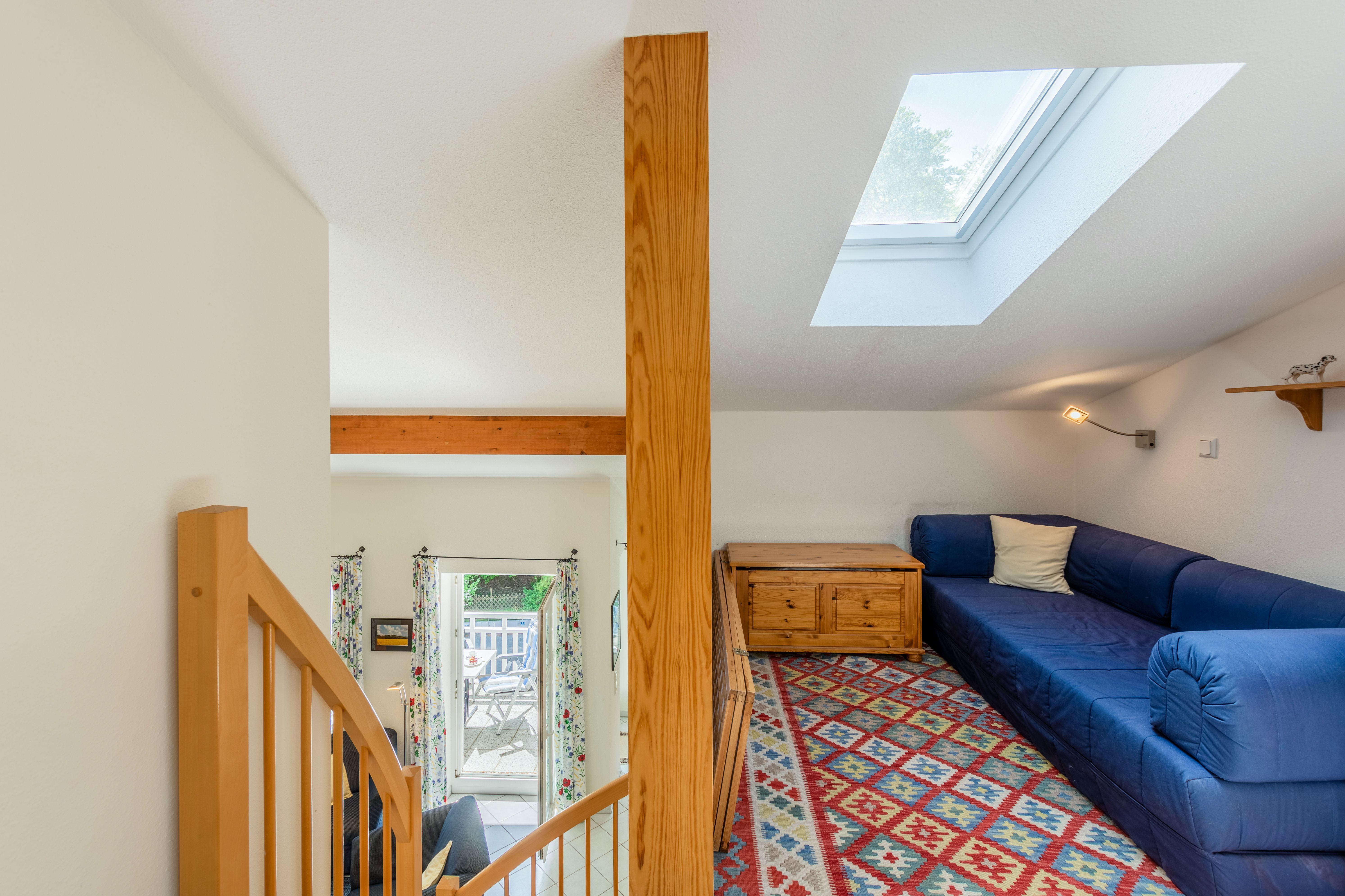 Die freundlich eingerichtete Galeriewohnung ist 50 m² groß und befindet sich im Dachgeschoss.