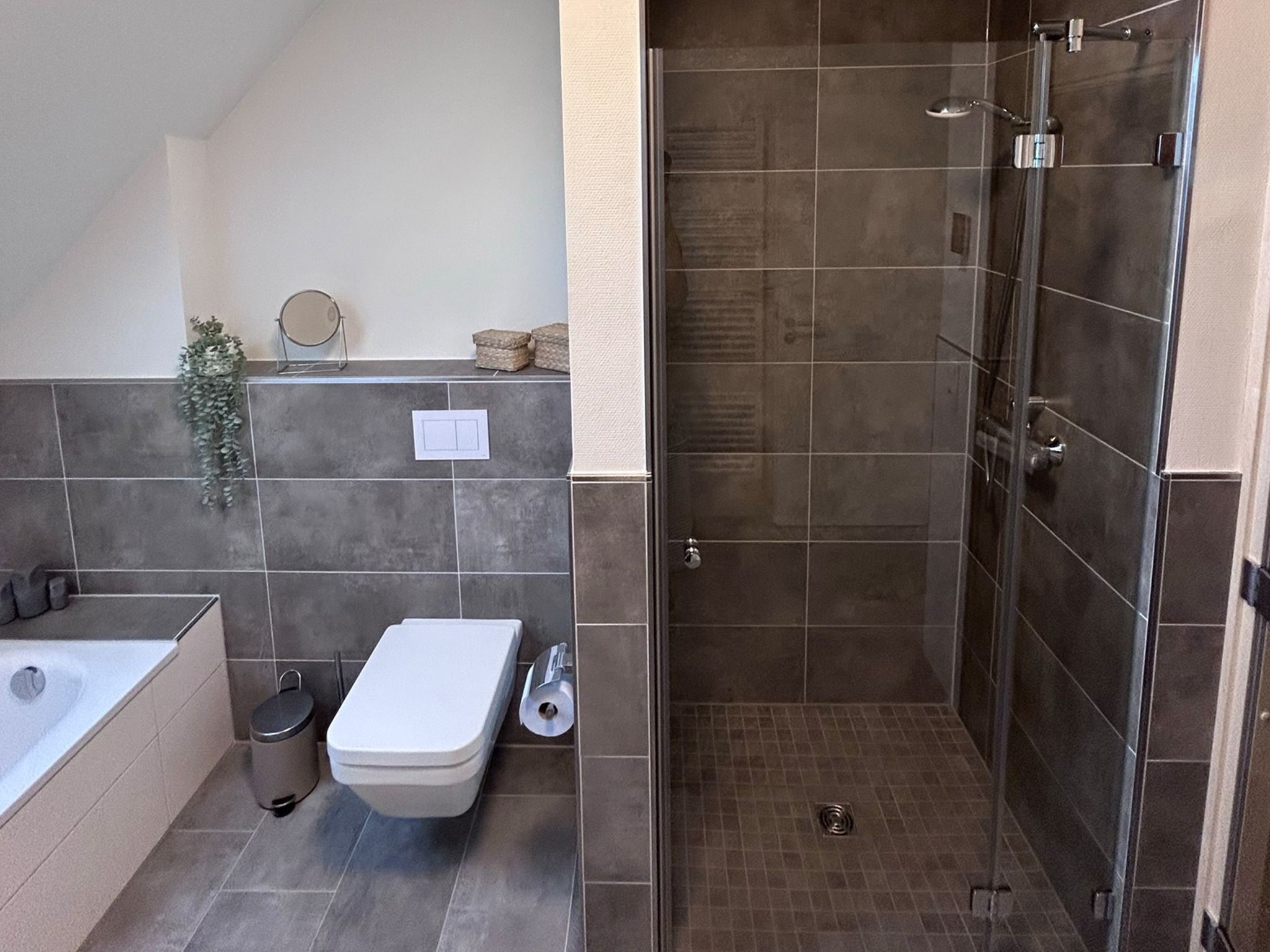 • 1 großes Badezimmer mit Badewanne, Dusche und Sauna