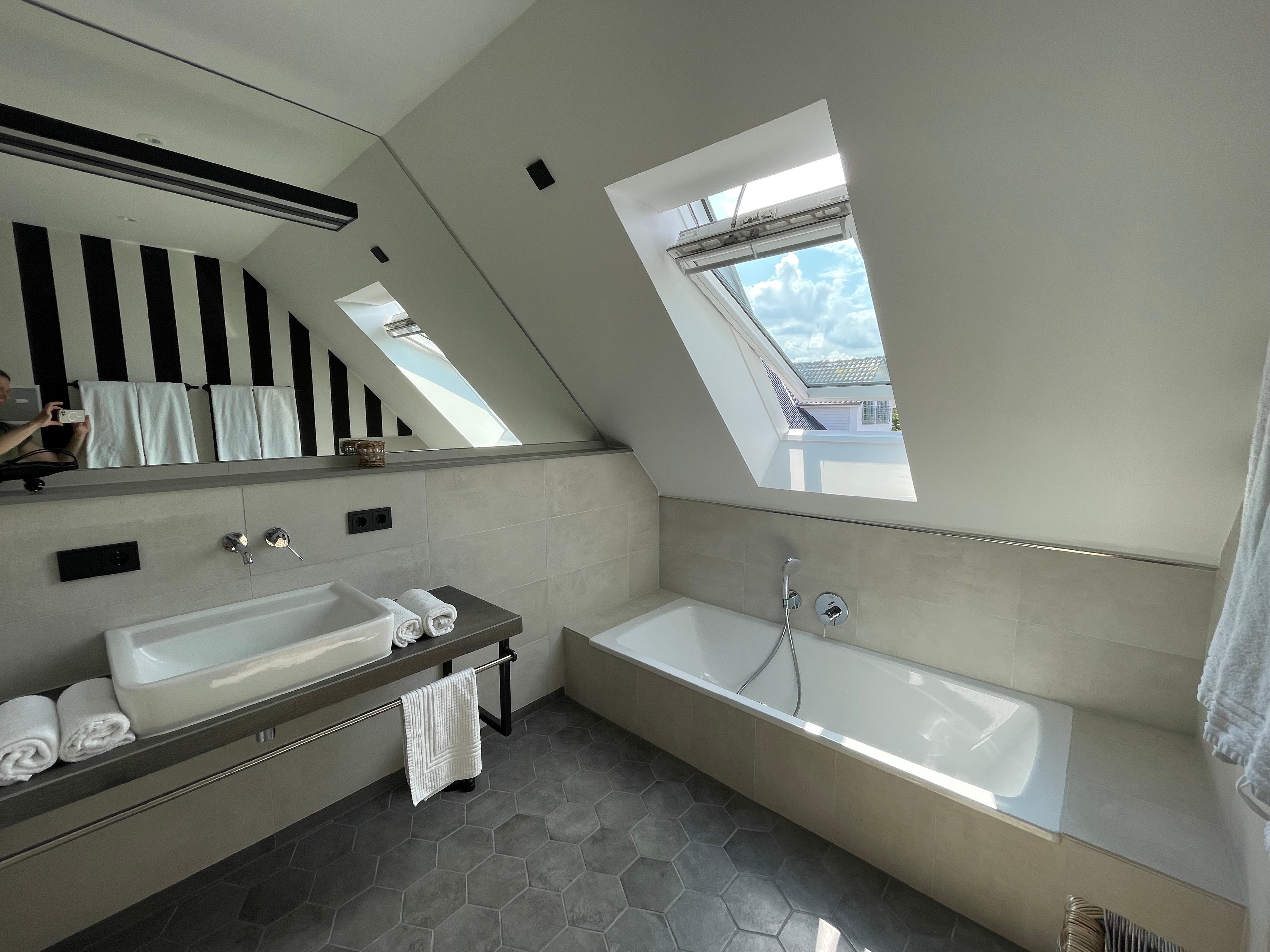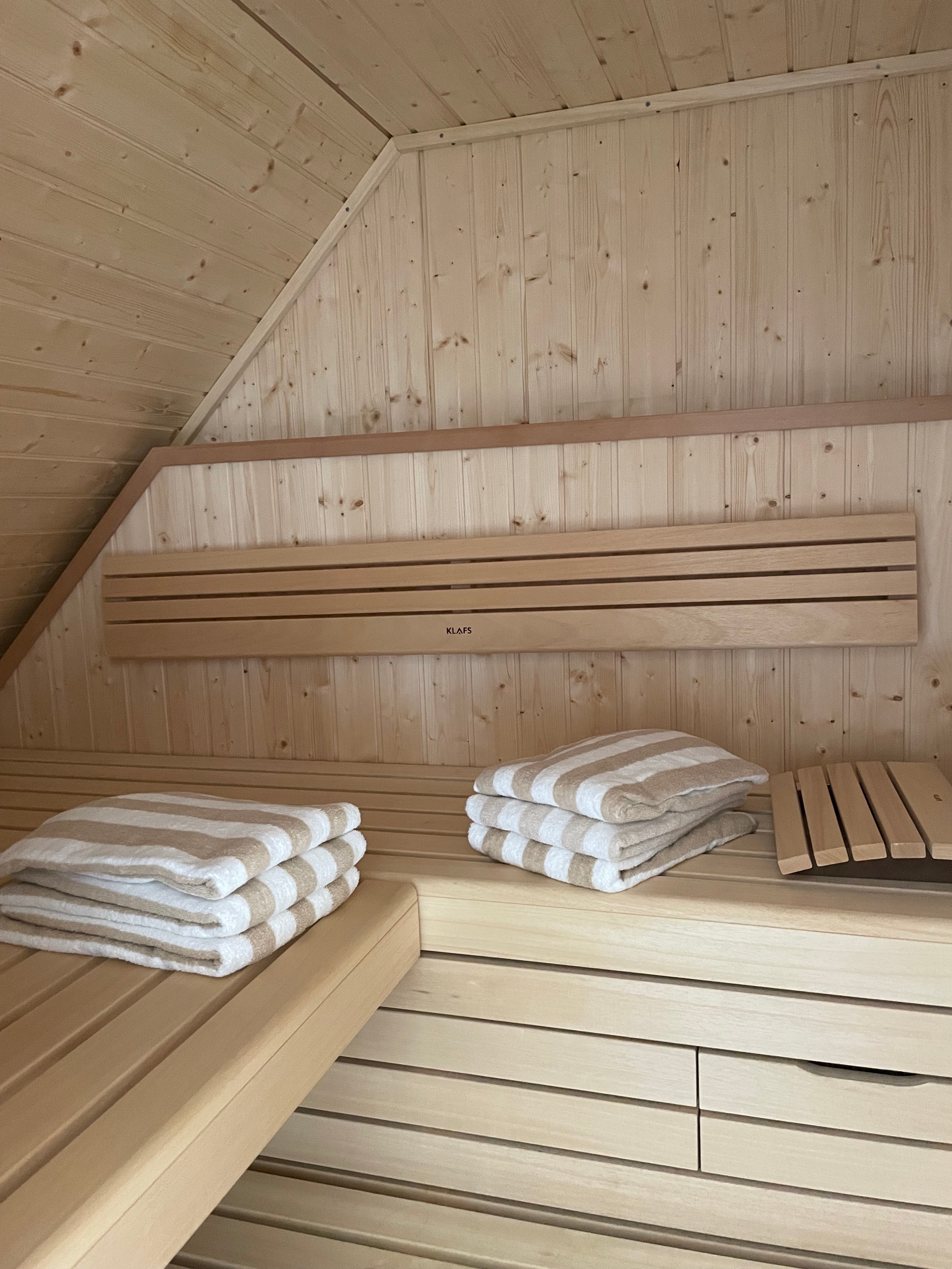 Sie betreten unsere Lotte durch einen Flur mit einer Garderobe. Vom Flur gehen das Wohnzimmer, das Schlafzimmer, ein Alkoven, ein separates WC sowie das Badezimmer ab. Im Wohnbereich befindet sich eine vollausgestattete Einbauküche mit Essbereich für vier Personen, ein kuscheliges Hussensofa, ein Sessel und ein Flachbild-TV. Vom Wohnzimmer aus kommen Sie auf den Balkon mit Süd-West-Ausrichtung, auf dem Sie ein kleiner Tisch und Stühle erwarten. Hier können Sie den ersten Kaffee des Tages oder am Abend einen erfrischenden Sundowner genießen. Das Schlafzimmer verfügt über ein gemütliches Boxspringbett, zwei große Kleiderschränke mit einem Zimmersafe und einen Flachbild-TV. Entschleunigen können Sie im separaten Badezimmer mit integriertem Internet-Radio, Badewanne, einer Regendusche sowie als Highlight in der eigenen Sauna. Die hochwertige Einrichtung umfasst u. a. Möbel von Riviera Maison. Ein kleiner Abstrellraum rundet die Wohnung ab.