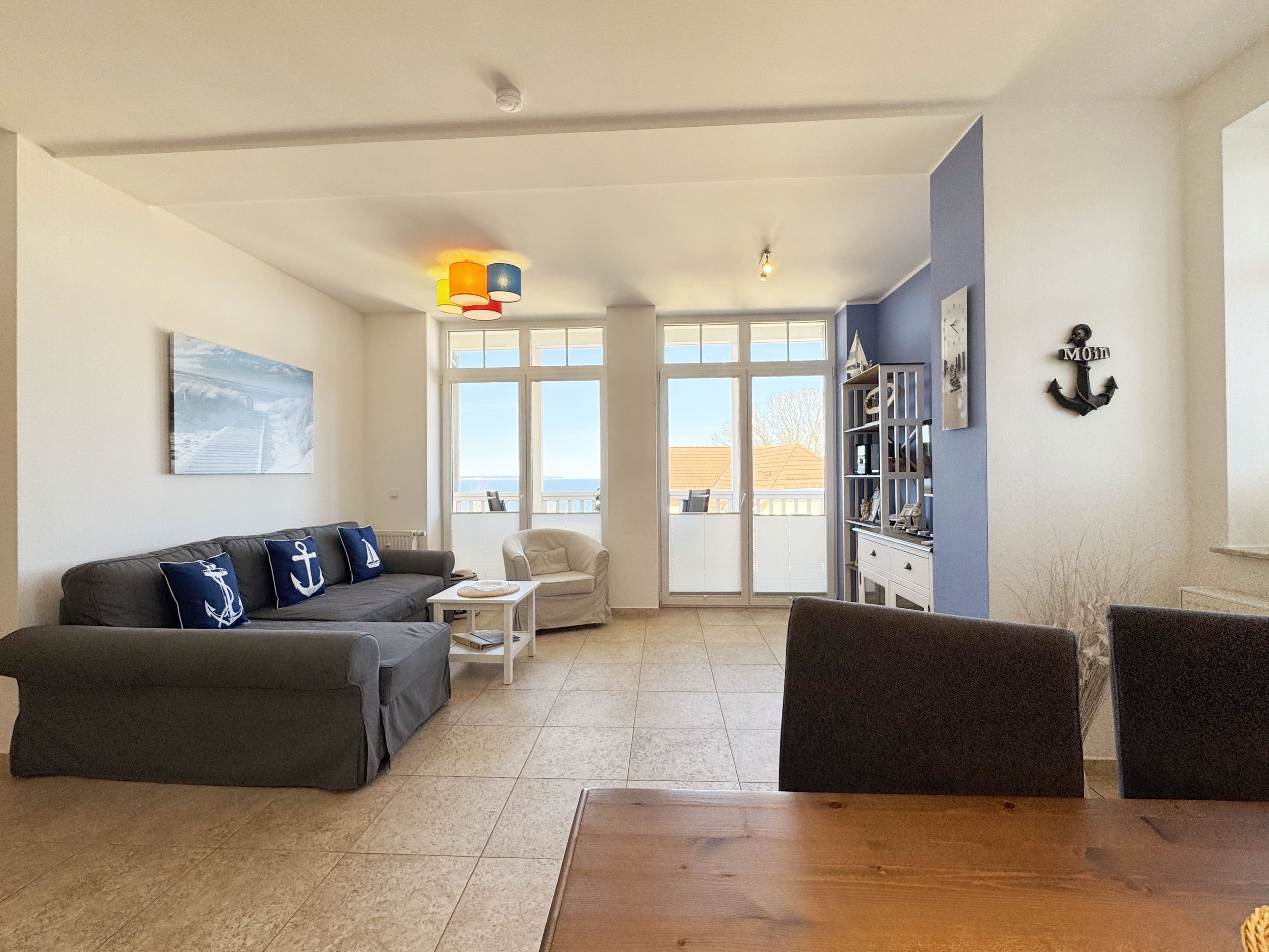 Die Villa Bergfrieden liegt auf einer kleinen Anhöhe direkt neben dem Küstenwald am Rande des Biosphärenreservates. Trotz der absolut ruhigen Lage ohne Autoverkehr, liegt die Villa Bergfrieden zentral. Zum wunderschönen Nordstrand und zum Ortszentrum sind es fußläufig nur zwei bis fünf Gehminuten. Die bevorzugte Lage wird noch unterstrichen durch den herrlichen Panoramablick bis zu den Kreidefelsen.