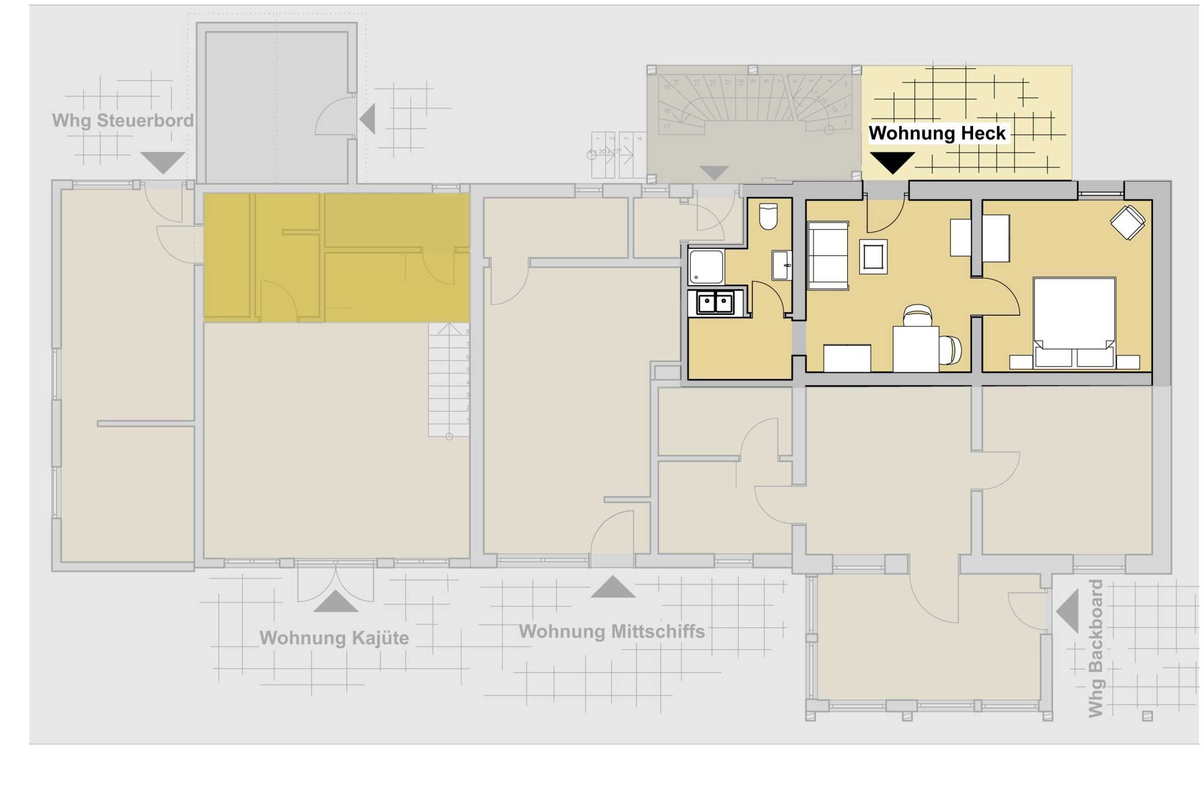 Terrasse, Grill und Strandnähe. Die Ferienwohnung Heck bietet genau das für bis zu 4 Personen. Die 2-Zimmer-Ferienwohnung wurde im Frühjahr 2022 renoviert und neu eingerichtet. Die Wohnung besteht aus Wohnzimmer, Schlafzimmer, einer Küche und einem Bad mit Walk-In Dusche. Das Schlafzimmer und das Wohnzimmer haben jeweils einen eigenen Fernseher. Es gibt ein 180 cm Doppelbett und ein Ausziehsofa im Wohnzimmer. Auf der eigenen Terrasse sind nicht nur Tisch und 4 Stühle, sondern auch ein Grill für entspannte Abende nach dem Strand.
