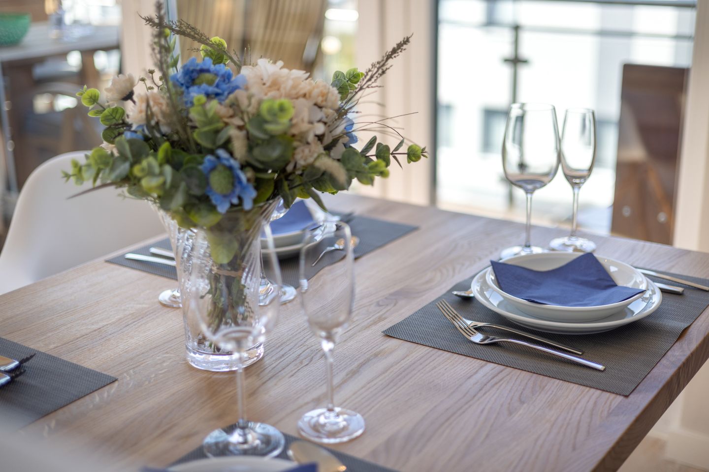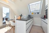 Die offene Wohnküche ist ein Highlight für alle, die gerne kochen. Mit Backofen, Geschirrspüler, Kühlschrank, Nespresso-Maschine und vielem mehr steht einem gelungenen Dinner nichts im Weg. Genießen Sie Ihre Mahlzeiten am Esstisch im Wohnbereich oder auf dem großzügigen Balkon, der mit einem wohnungseigenen Strandkorb und einer Lounge-Ecke ausgestattet ist. Lassen Sie hier den Tag bei einem Glas Wein ausklingen, während die Abendsonne den Himmel in warme Farben taucht.