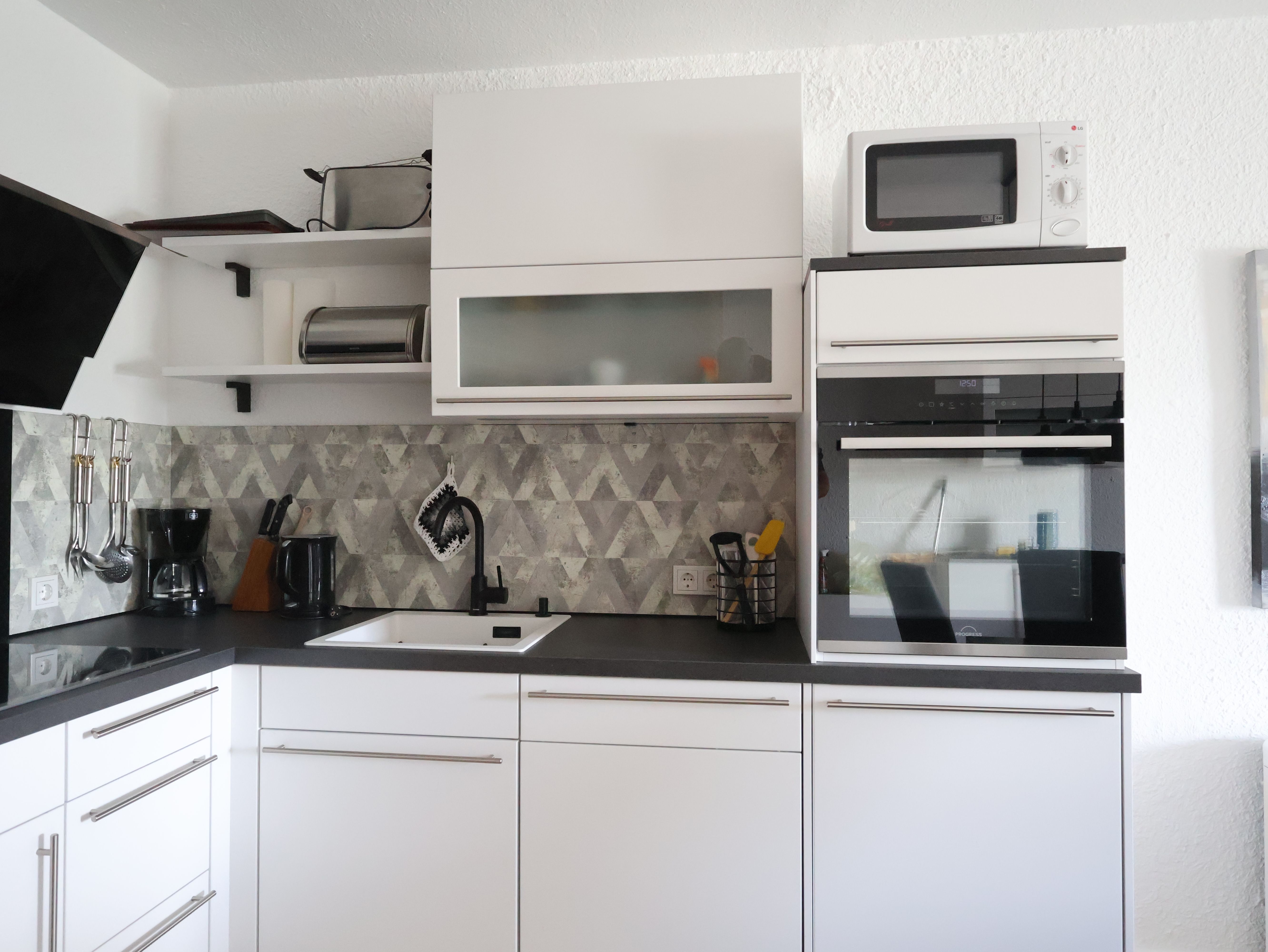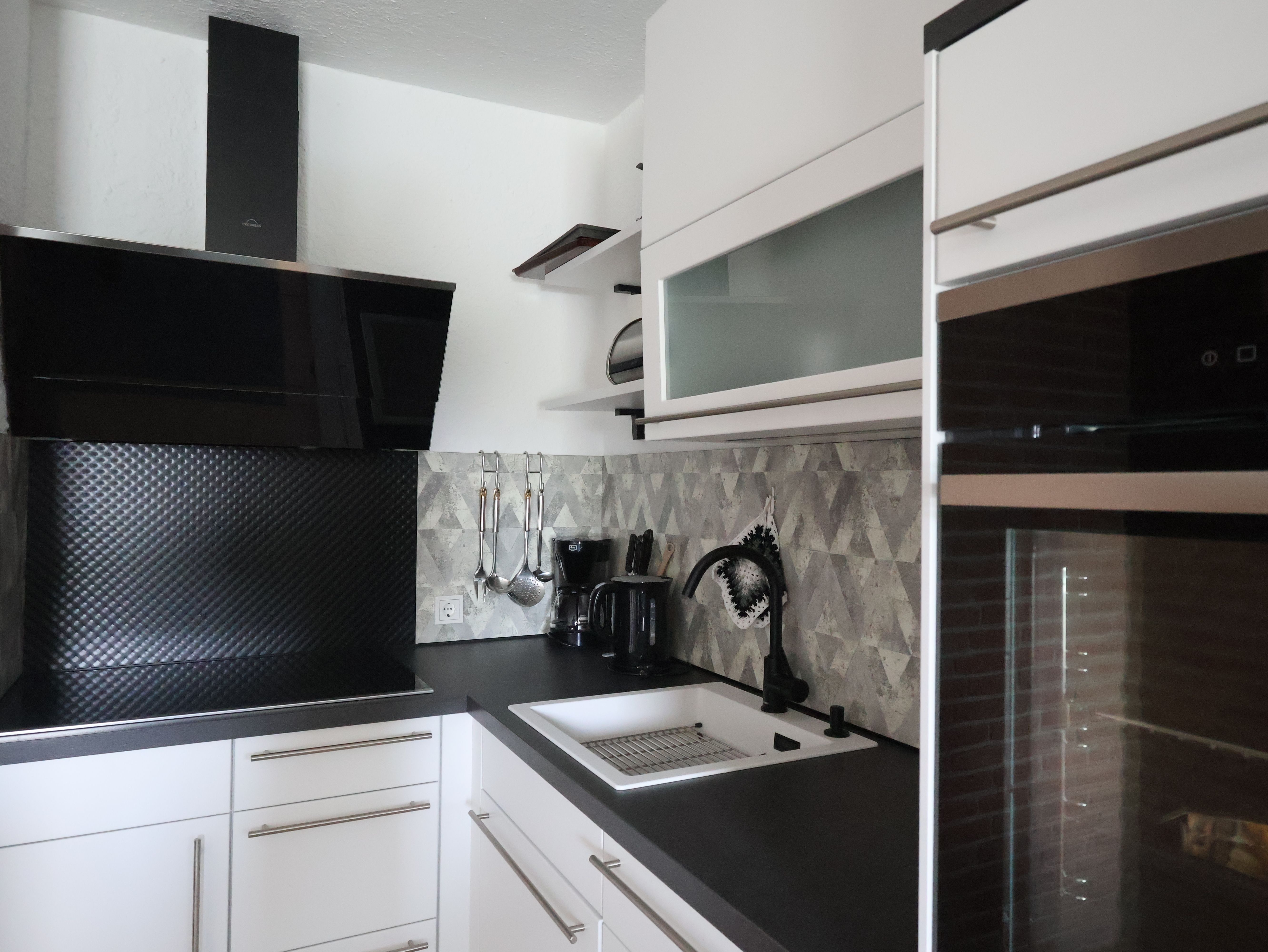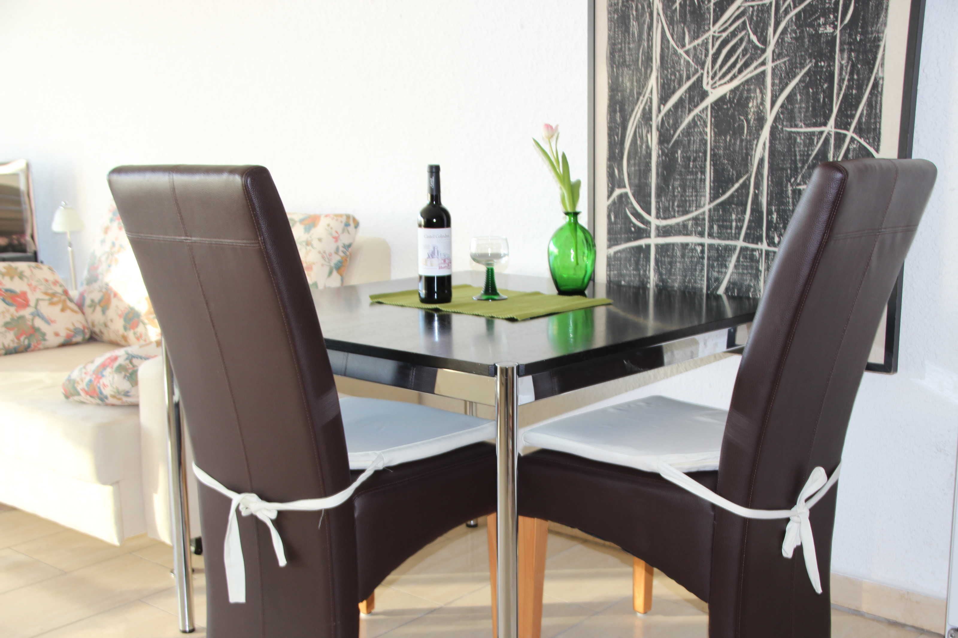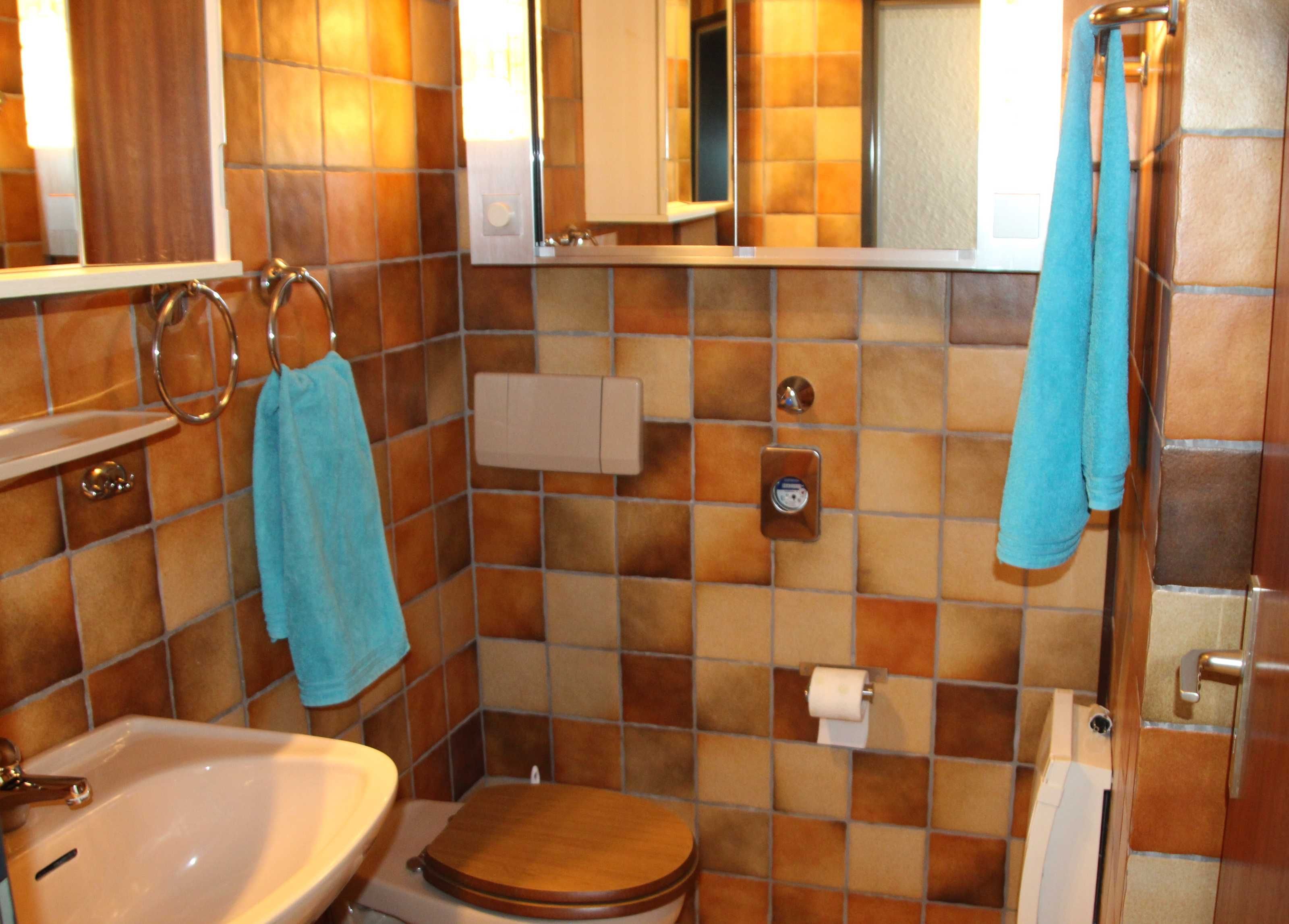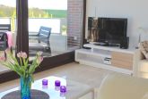 Zu der neuen Küche gehören ein Kühlschrank, ein Geschirrspüler, ein Herd, ein Toaster sowie ein kleiner Ofen. Ein gemütliches Schlafzimmer ist mit einem Doppelbett von 1,80 Meter Breite und das Wohnzimmer mit einer 1,20 Meter breiten Schlafcouch eingerichtet. Des Weiteren gehört ein gepflegtes Duschbad zur Wohnung.