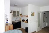 In der offenen Küche finden Sie u. a. einen Geschirrspüler, einen kombinierten Kühl- und Gefrierschrank, ein Cerankochfeld (mit 4 Kochfeldern), einen Backofen, eine Kaffeemaschine und einen Wasserkocher sowie einen Esstisch mit 4 Stühlen.