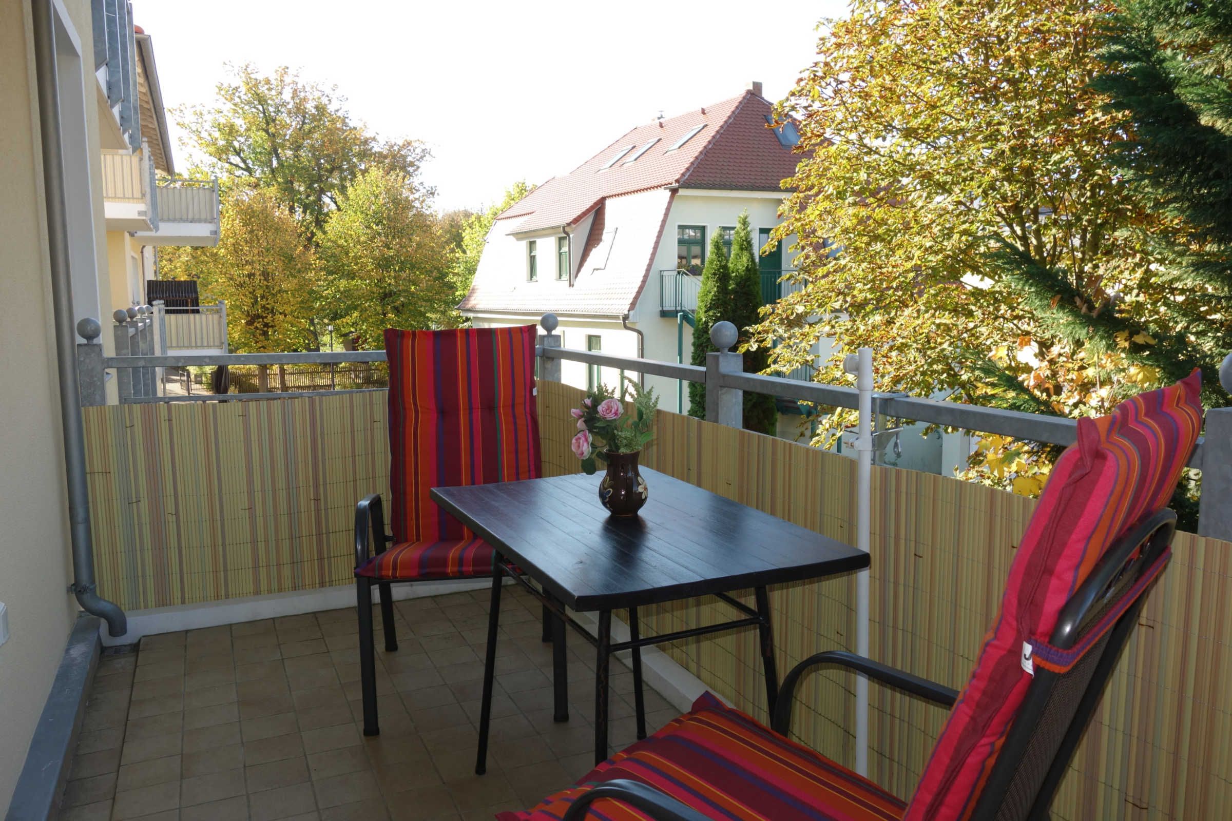 Zu der Ferienwohnung gehören ein Balkon ind ein PKW-Stellplatz in der Tiefgarage.