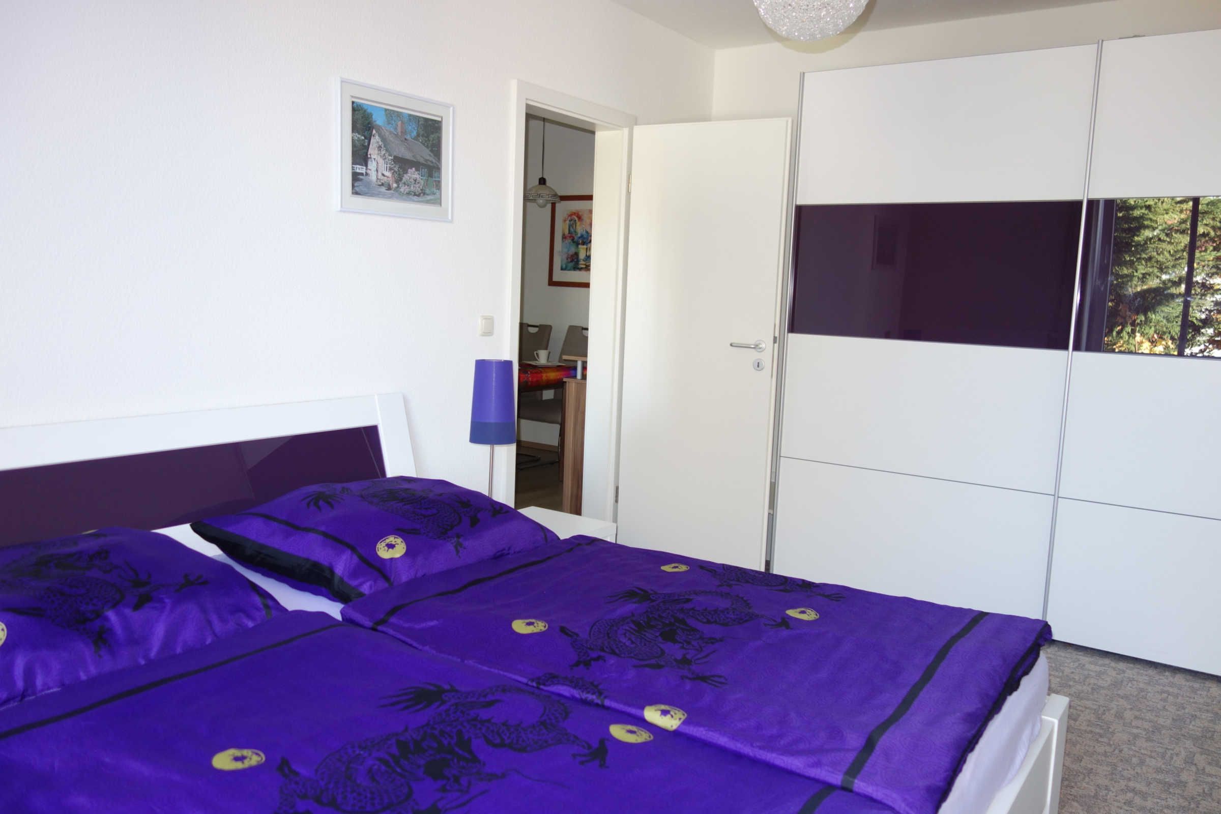 Das größere Schlafzimmer verfügt über ein Doppelbett (2x90x200cm) mit 2 Nachttischen und einen großen Kleiderschrank.