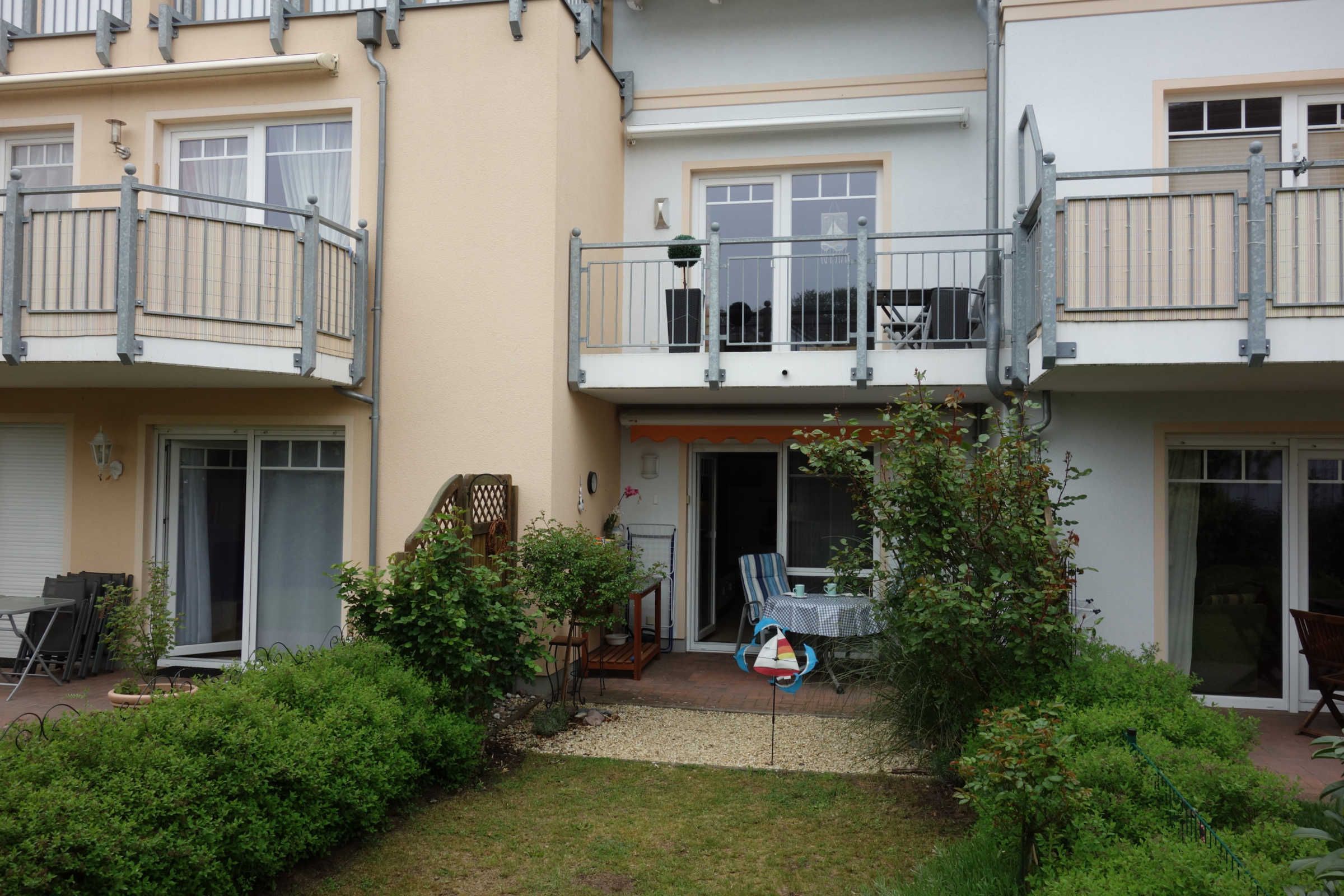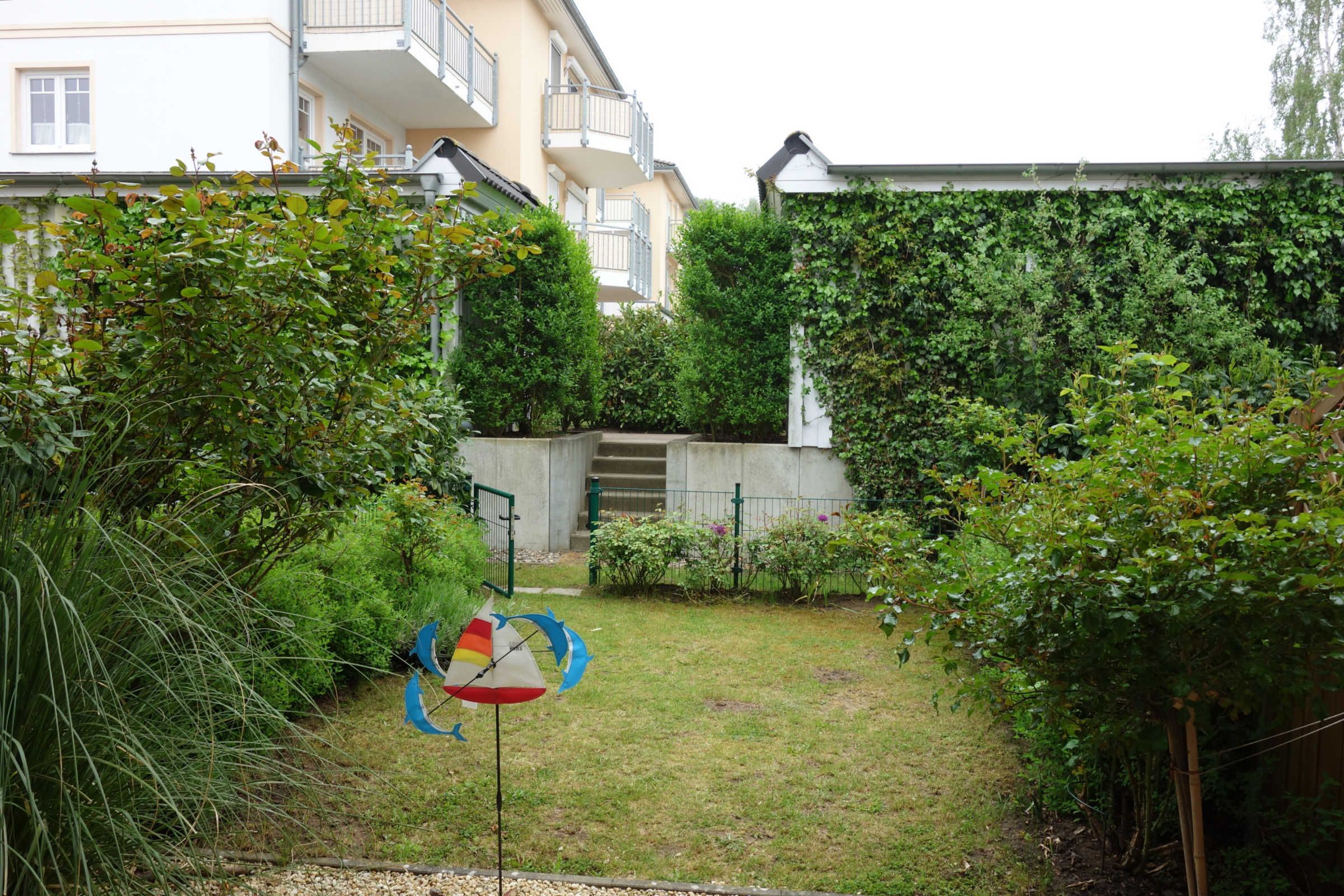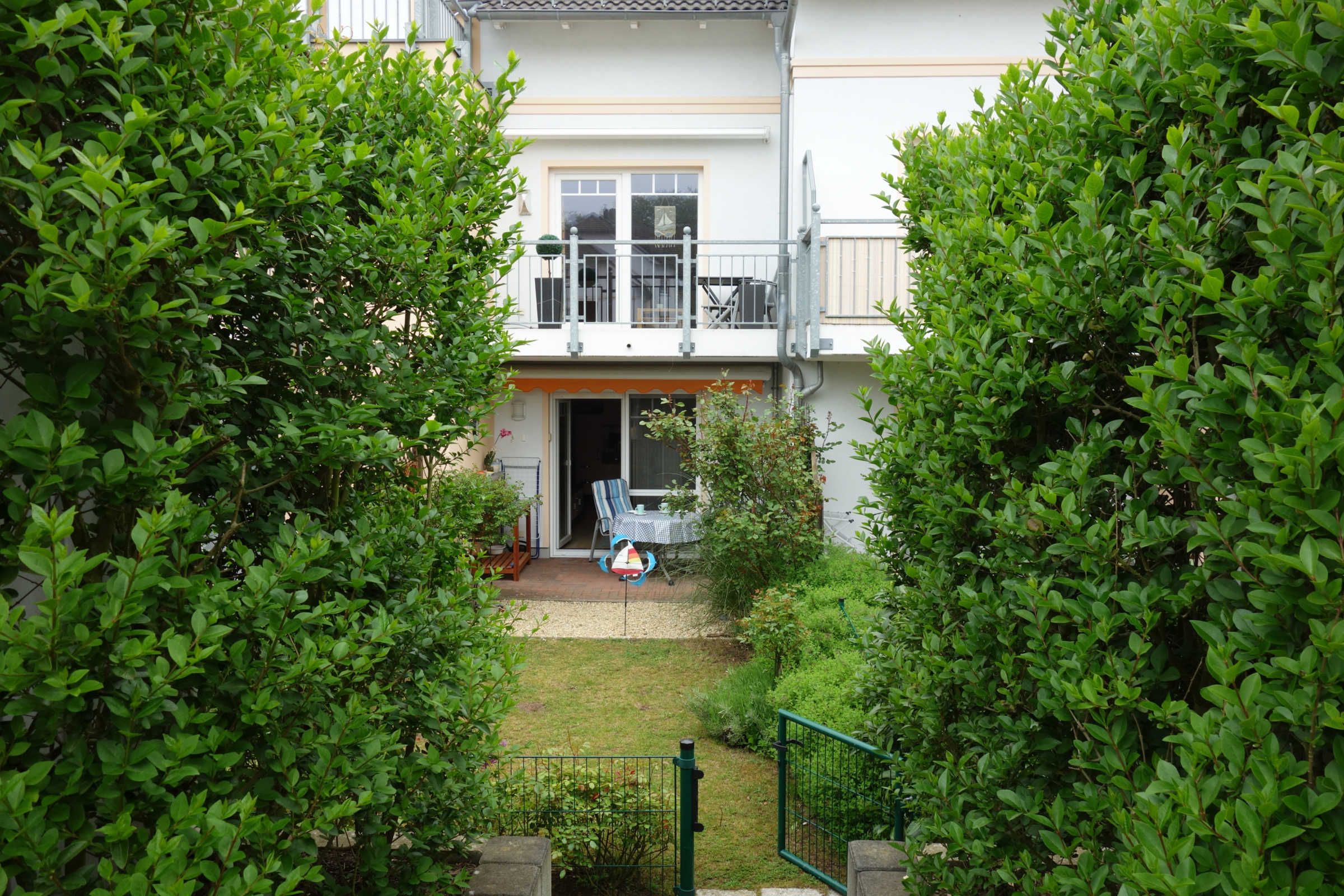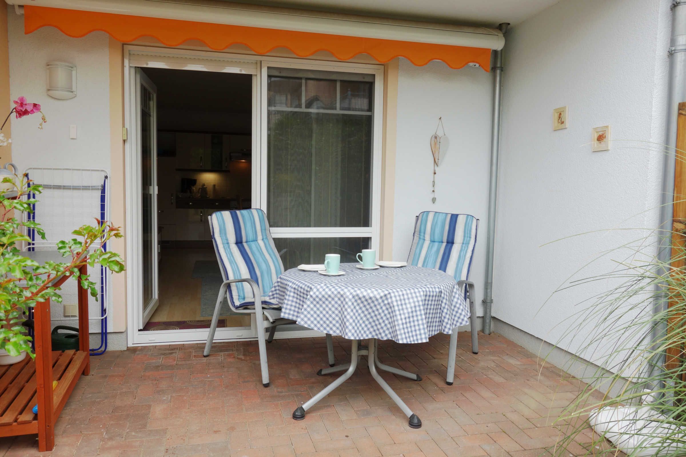 Durch das Wohnzimmer gelangen Sie auf die Terrasse und in den kleinen Garten. Dort stehen für Sie Terrassenmöbel zur Verfügung. Sitzauflagen und Sonnenschirm finden Sie im zur Wohnung gehörenden Außenabstellraum vor. Hier können Sie bis zu 2 eigene Fahrräder unterbringen (für die Sicherheit wird keine Haftung übernommen). Weitere Fahrradstellplätze sind vorm Haus vorhanden.
