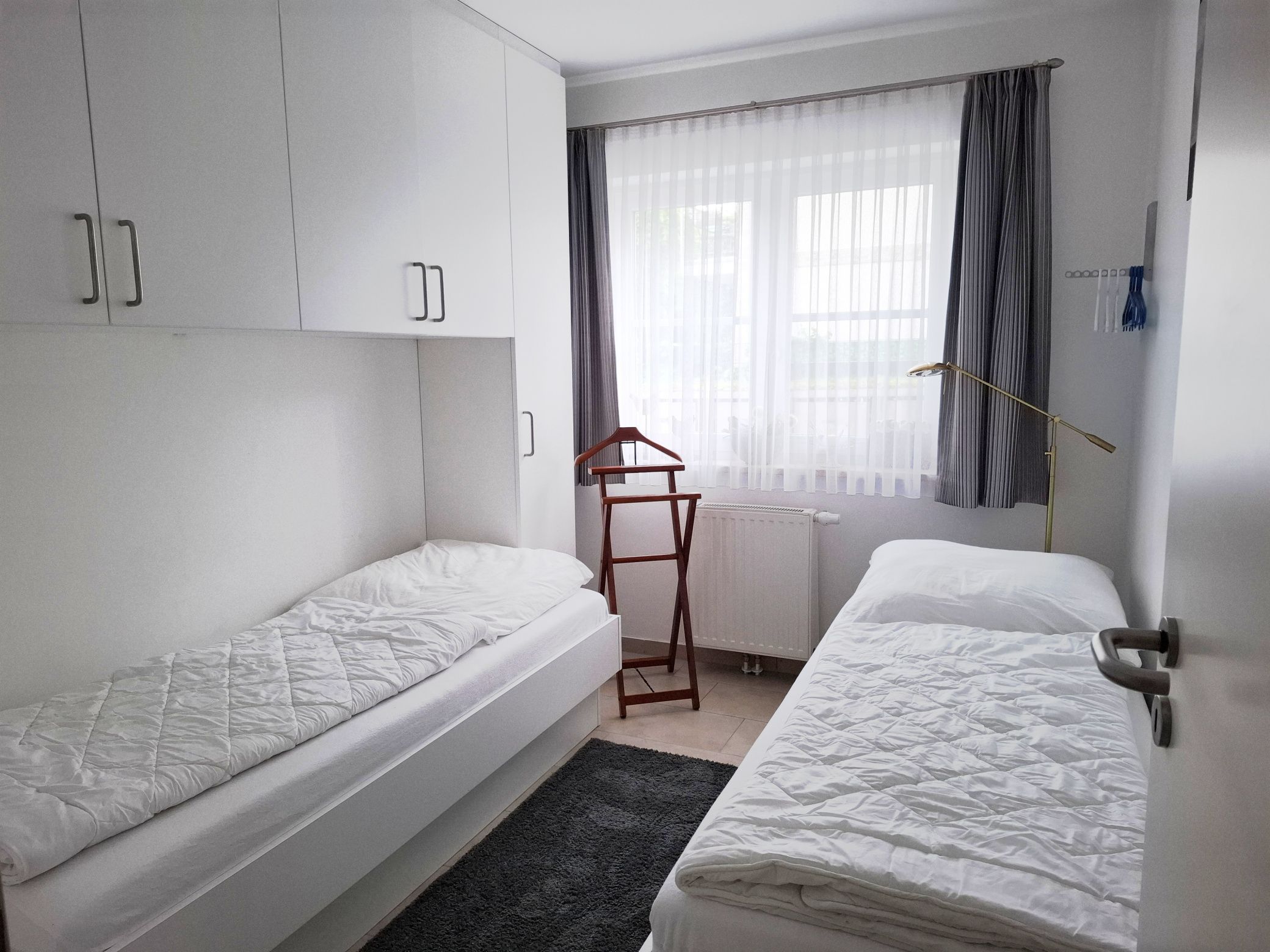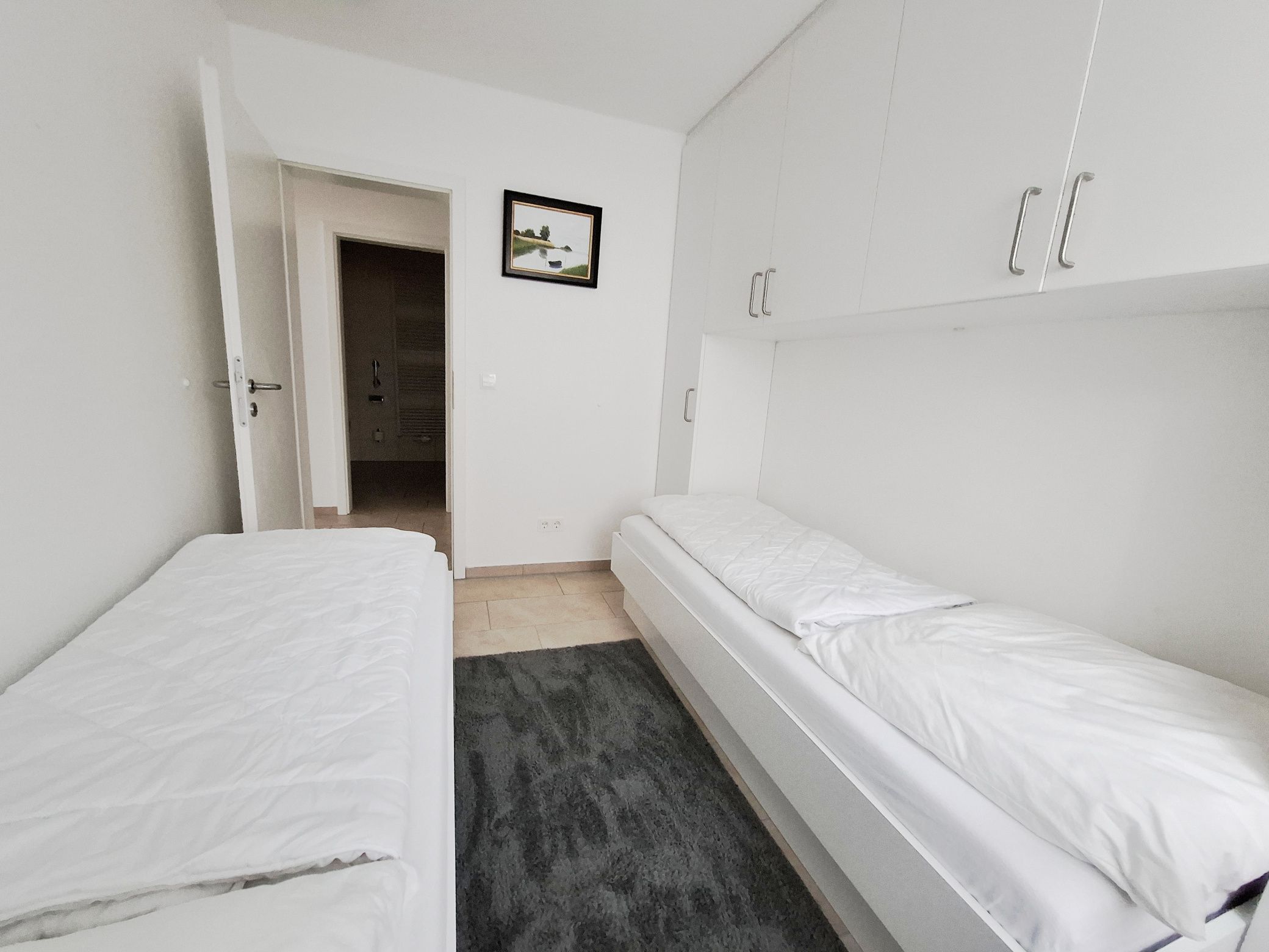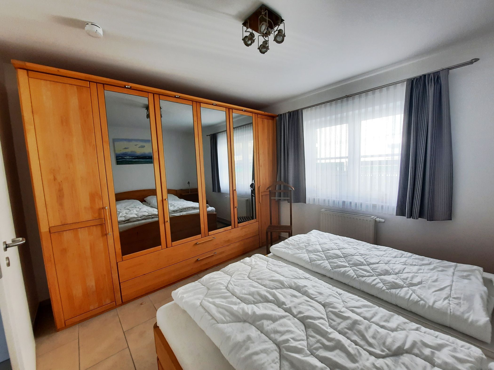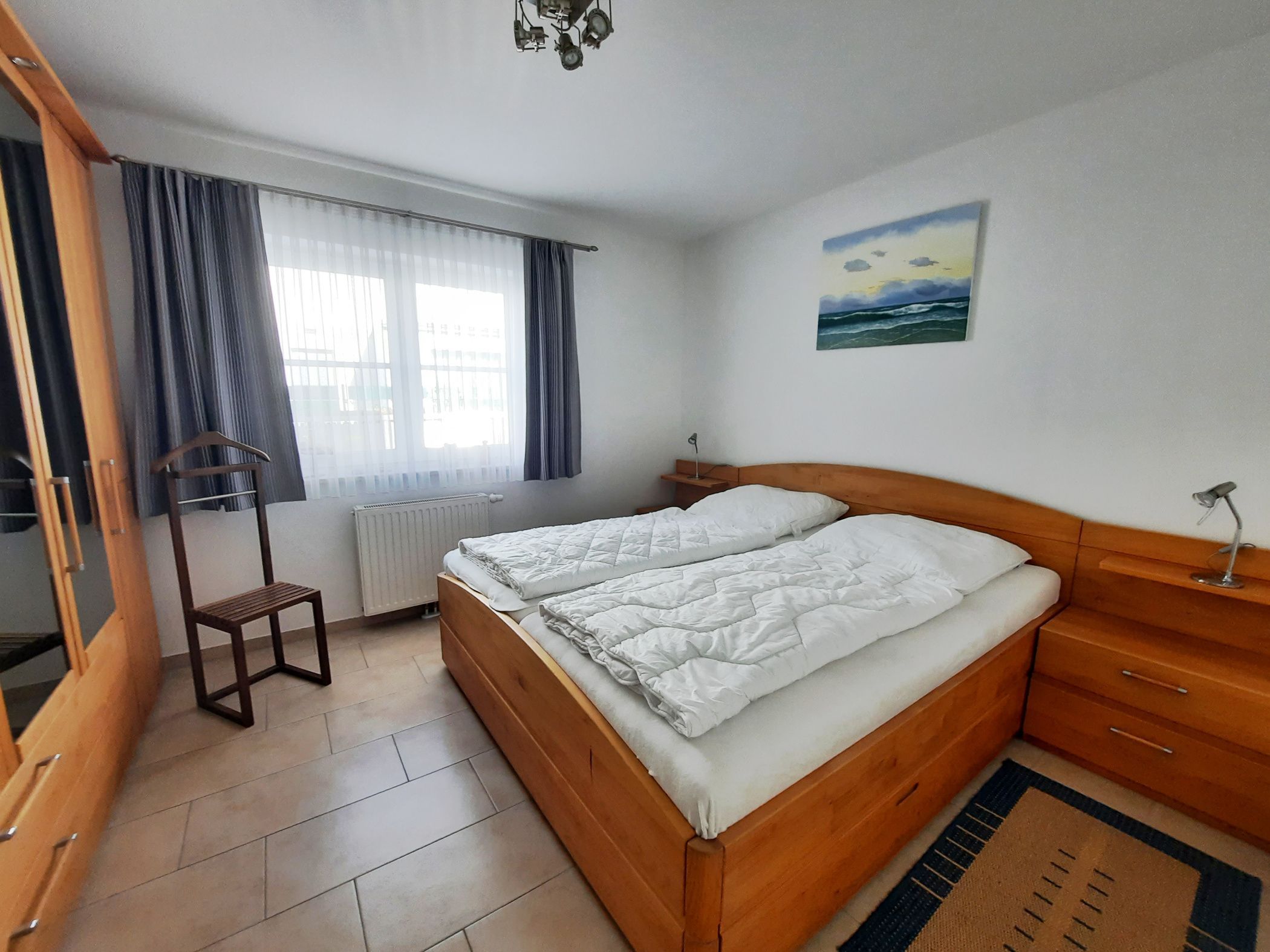 Ein Schlafzimmer verfügt über ein Doppelbett und einen großen Kleiderschrank. Im zweiten Schlafzimmer befindet sich ein bequemes Wandklappbett (2,00 x 1,40m).