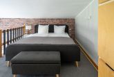 In der oberen Etage erwartet Sie ein komfortables 1,80 m breites Doppelbett, das für erholsame Nächte sorgt. Im Wohnbereich im Erdgeschoss befindet sich eine Schlafcouch, die Platz für zwei weitere Personen bietet.