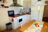 Die Küche mit einer Essecke ist in das Wohnzimmer integriert und ist unter anderem mit 4 Kochfeldern auf einem Cerankochfeld, einer Backröhre, einer Geschirrspülmaschine, einem Kühlschrank, einem Wasserkocher und einer Kaffeemaschine ausgestattet.