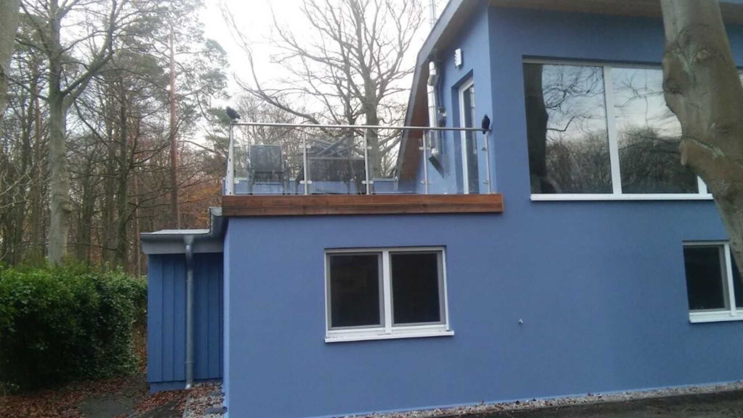 Im Erdgeschoss befinden sich insgesamt 4 Schlafzimmer, 2 Bäder, eine großzügige Küche mit Essbereich und ein Flur sowie eine Terrasse. Im Obergeschoss mit Blick auf die Ostsee befinden sich das loungeartige Wohnzimmer mit riesiger Fensterfront und Kamin und eine große Dachterrasse. WLAN ist im gesamten Haus kostenfrei vorhanden. Das Wohnzimmer verfügt über einen Fernseher mit DVD Player und einen CD-Player mit Radio.