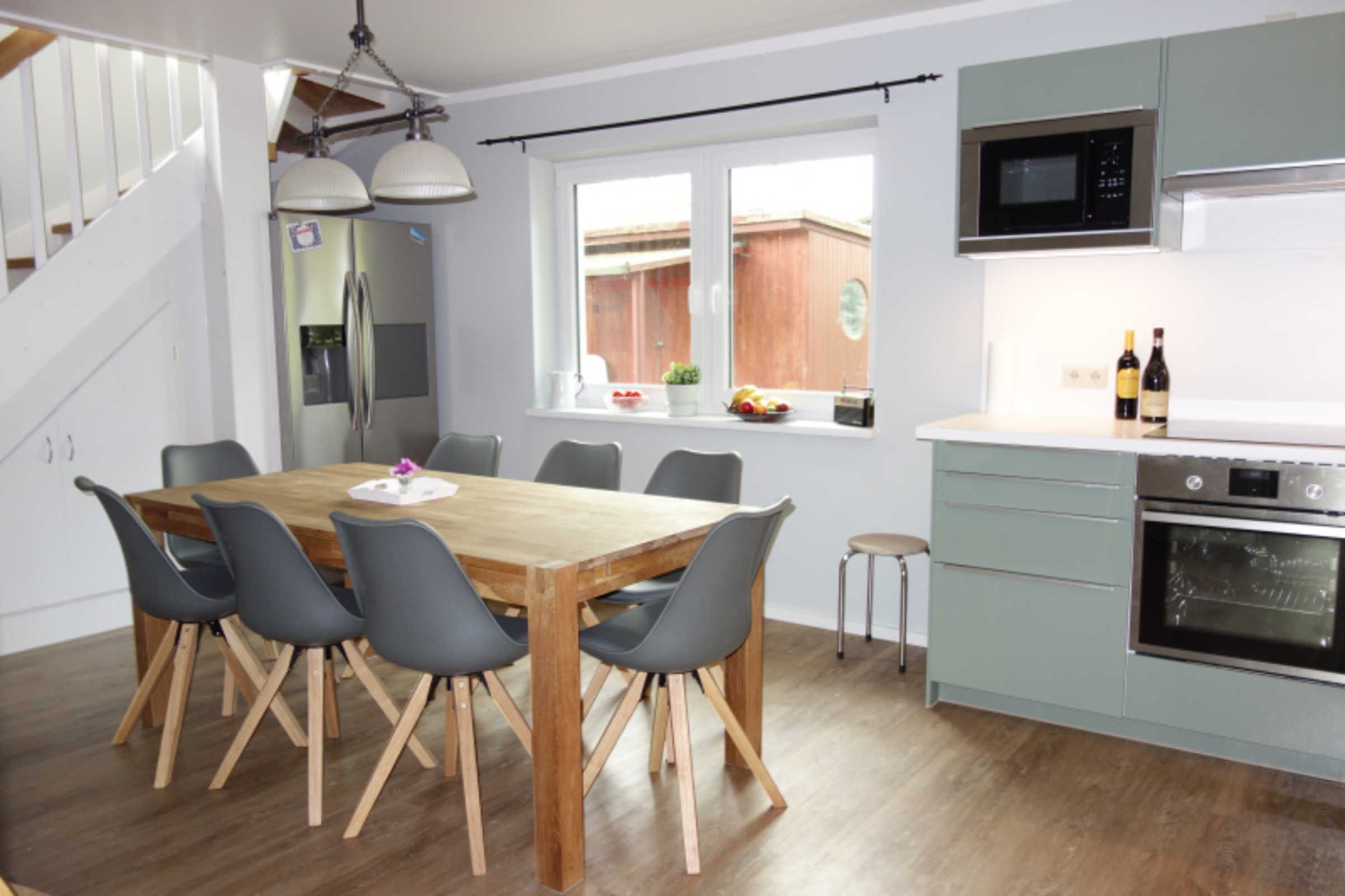 Das Ferienhaus verfügt über 4 Schlafzimmer, eine Küche, 2 Bäder und im Obergeschoss befindet sich das Wohnzimmer.