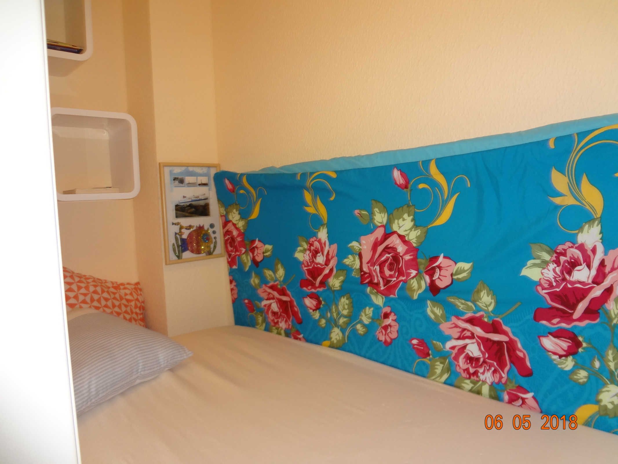 Als Schlafmöglichkeit für ein Kind gibt es eine kleine Schlafburg. Die Schlafburg ist ein etwa 1,30m hohes Hochbett, welches komplett das kleine Zimmer ausfüllt. Unter dem Hochbett können Koffer oder andere Sachen abgestellt werden.
