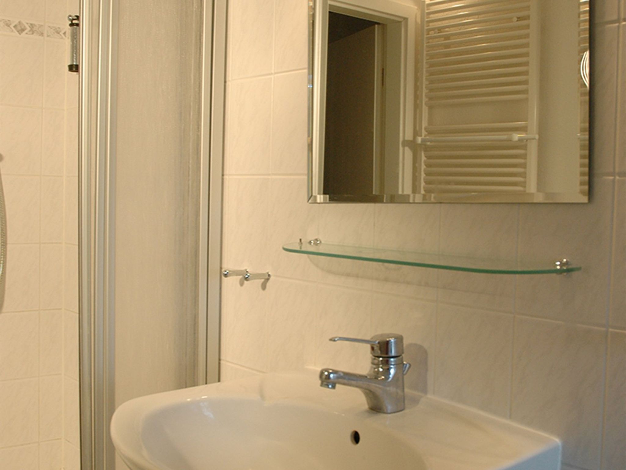 Komplettiert wird die Ferienwohnung von einem Badezimmer mit Dusche und einer vollausgestatteten Küche. Ein Babybett und ein Hochstuhl können bei Bedarf hinzugestellt werden.