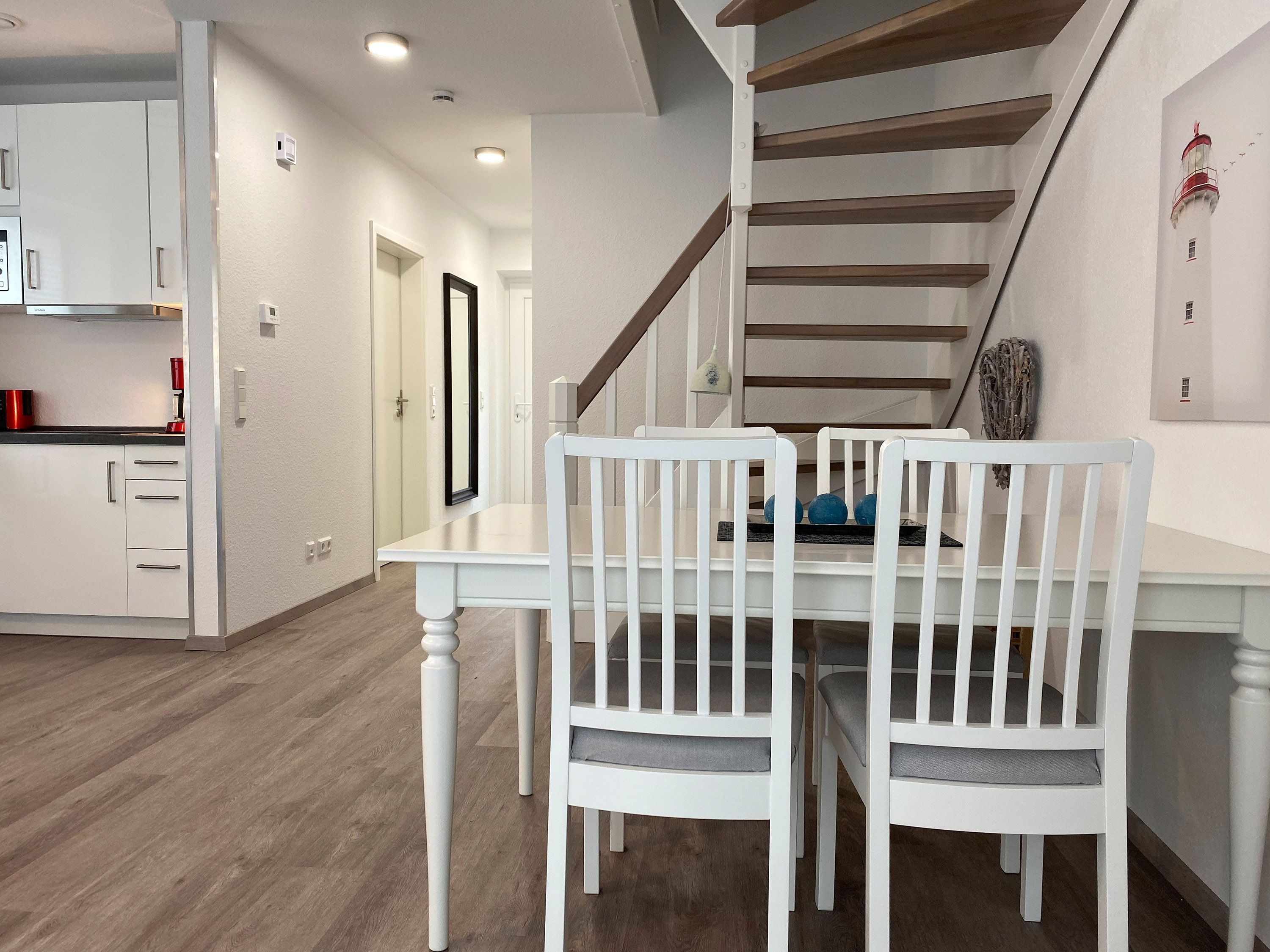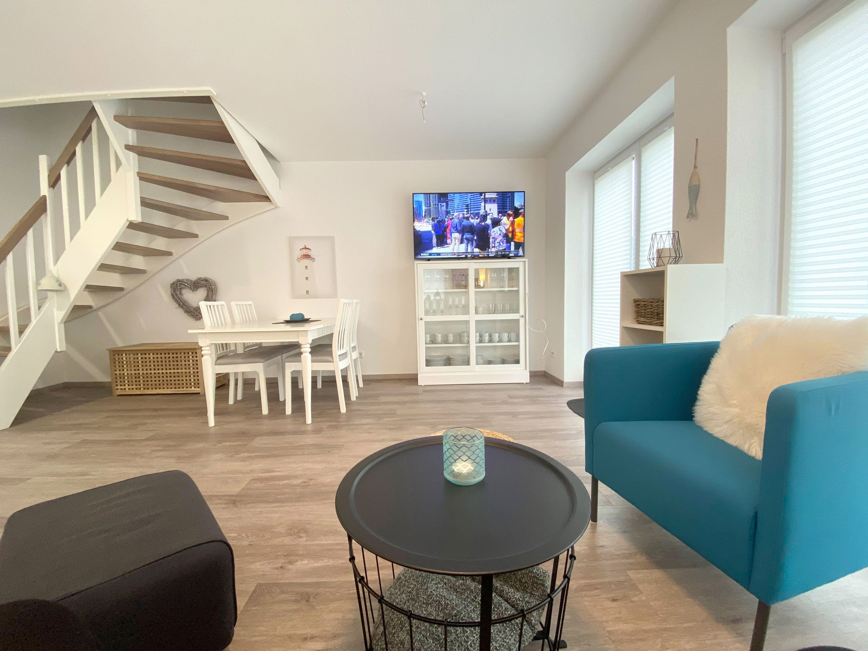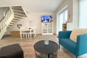 Dieses neuwertige und geschmackvoll eingerichtete Reihenendhaus bietet Ihnen höchsten Komfort und verfügt dabei über einen lichtdurchfluteten Wohnbereich mit einer offenen Küche. Die hier angeschlossene Terrasse ist ideal, um das Frühstück oder ein Glas Wein am Abend zu genießen. Zudem befindet sich im Erdgeschoss ein Badezimmer mit Dusche. Die Unterkunft verfügt über zwei separate Schlafzimmer inkl. TV im Obergeschoss. Eines mit Doppelbett, das andere mit zwei Einzelbetten. Ein modernes Badezimmer mit begehbarer Dusche steht hier ebenfalls für Sie bereit. WLAN ist inbegriffen. Eine hochwertige Ausführung und attraktive Ausstrahlung sorgen für entsprechende Wohnqualität.