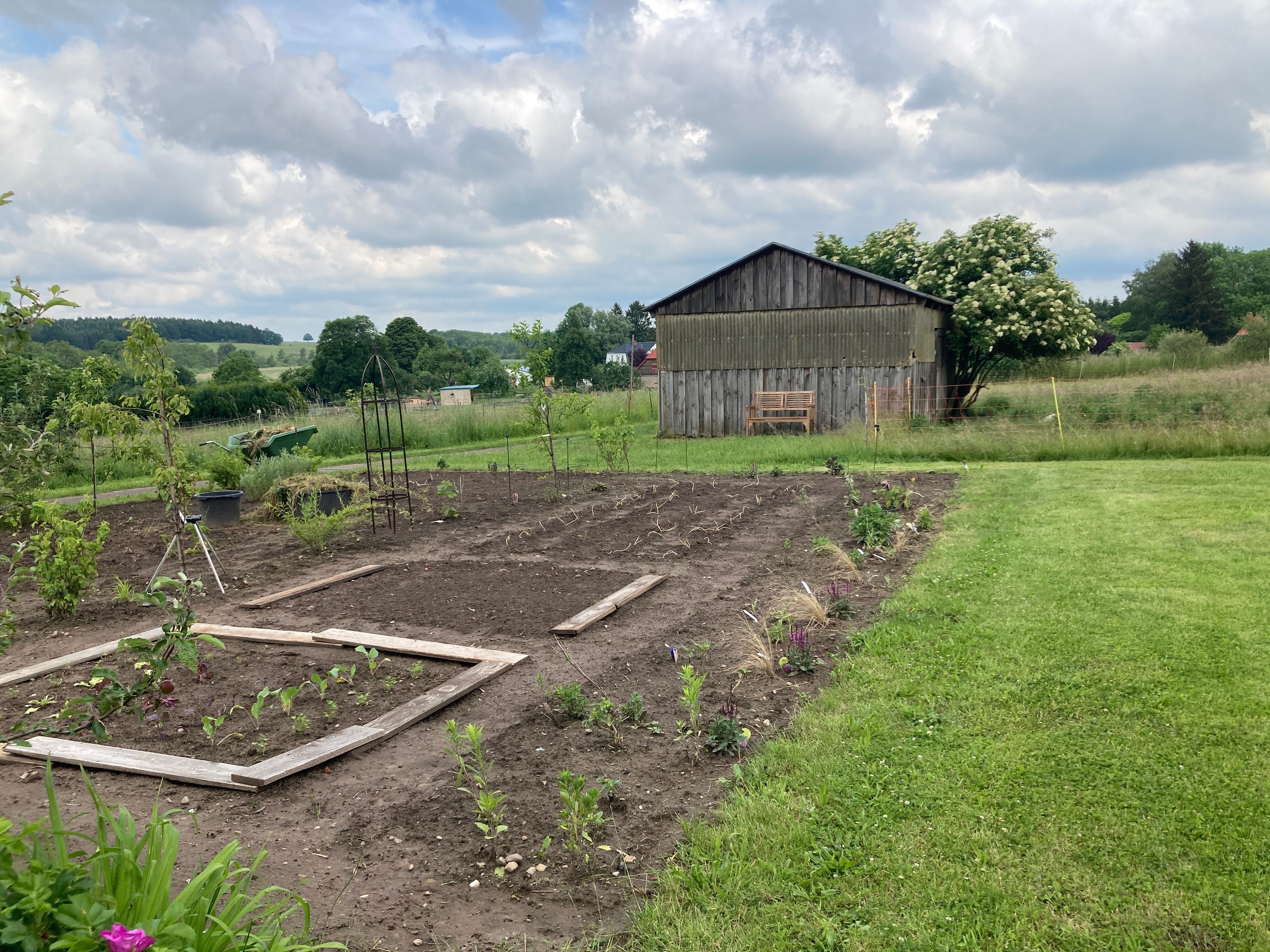 Neben dem kleinen Back- und Räucherhaus und den Obstbäumen befindet sich eine große Feuerstelle, die gern genutzt werden kann. Feuerholz kann direkt vor Ort erworben werden. Im Eingangsbereich des Gartens (neben dem Hofcafé) befindet sich der Spielplatz mit einem Klettergerüst, zwei Schaukeln, zwei Turnrecks und dem Sandkasten. Weitere Spielmaterialien stehen auf der Gästeterrasse kostenfrei zur Verfügung.