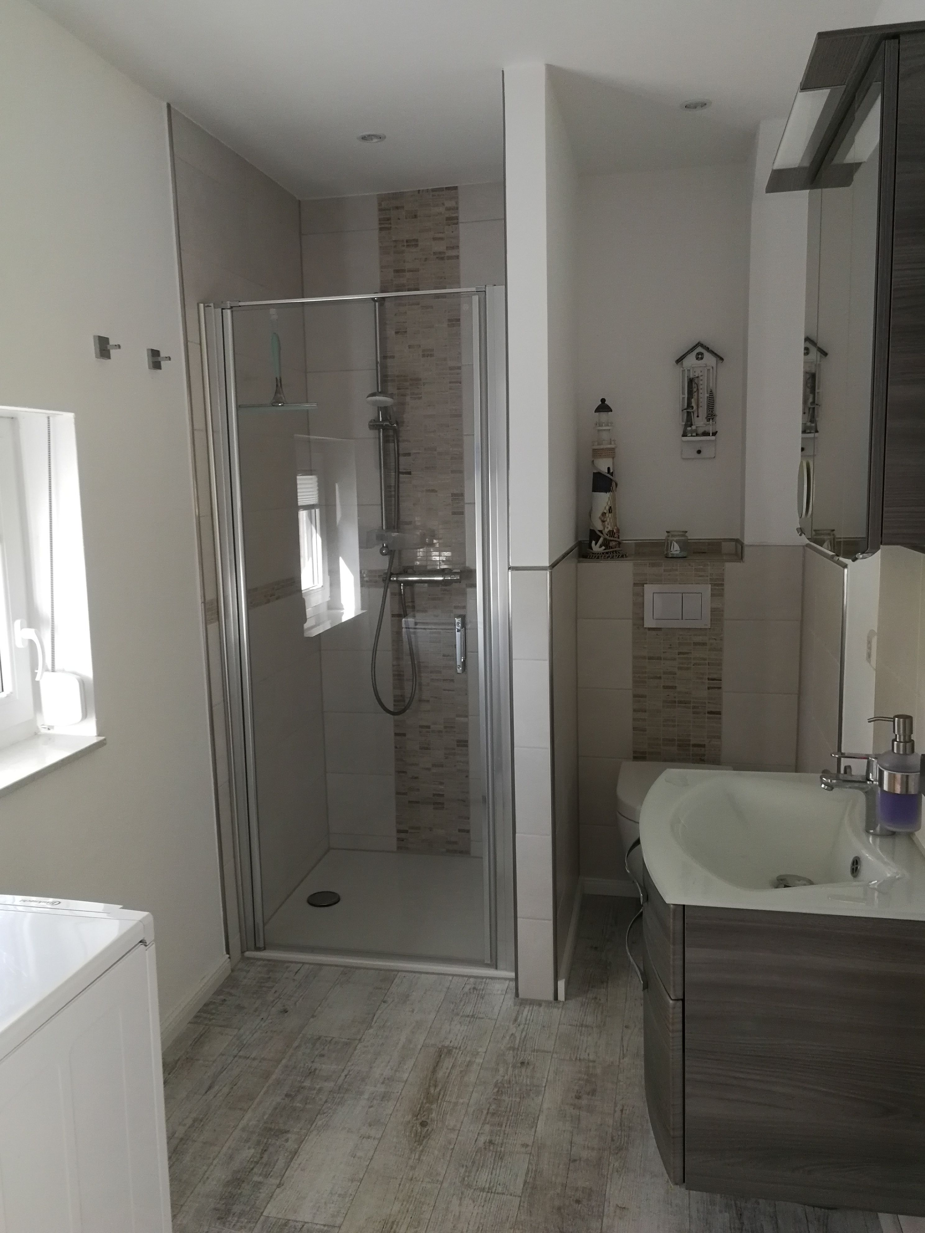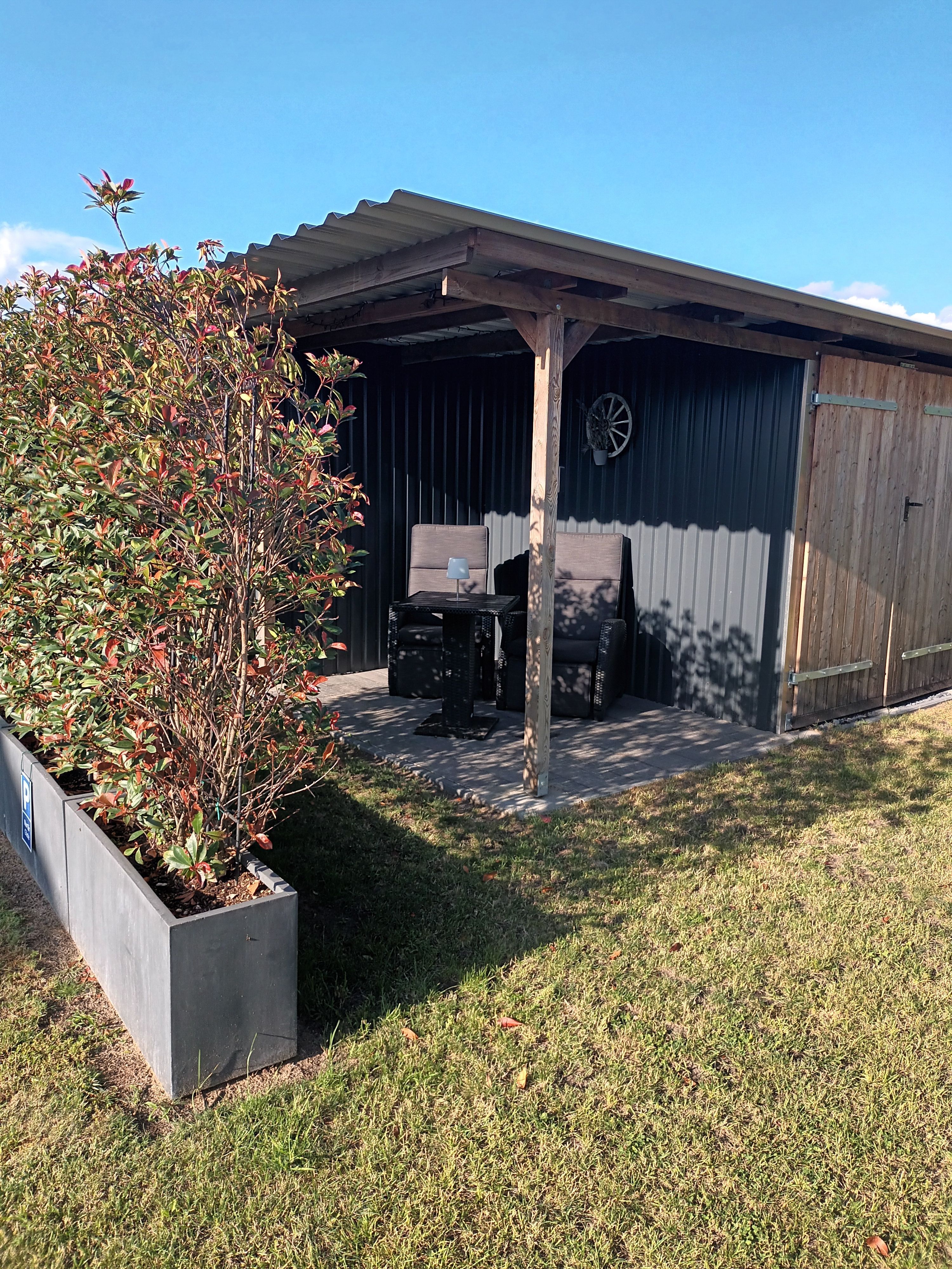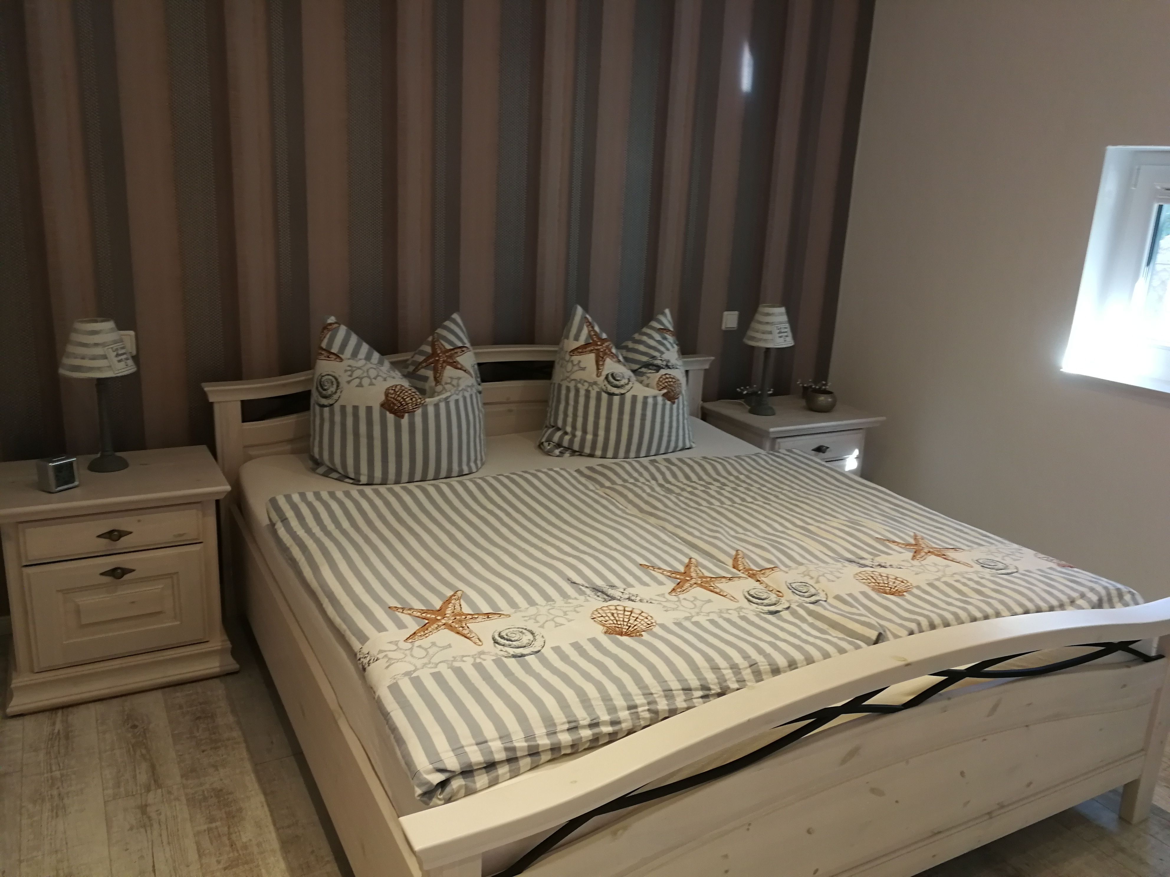 Moderne Einrichtung, ruhige und zentrale Lage, ebenerdig bis auf 2 Stufen bei der Haustür. Nichtraucherhaus, Vinylboden, die Terrasse ist überdacht und das Doppelbett hat eine Größe von 180 x 200 cm