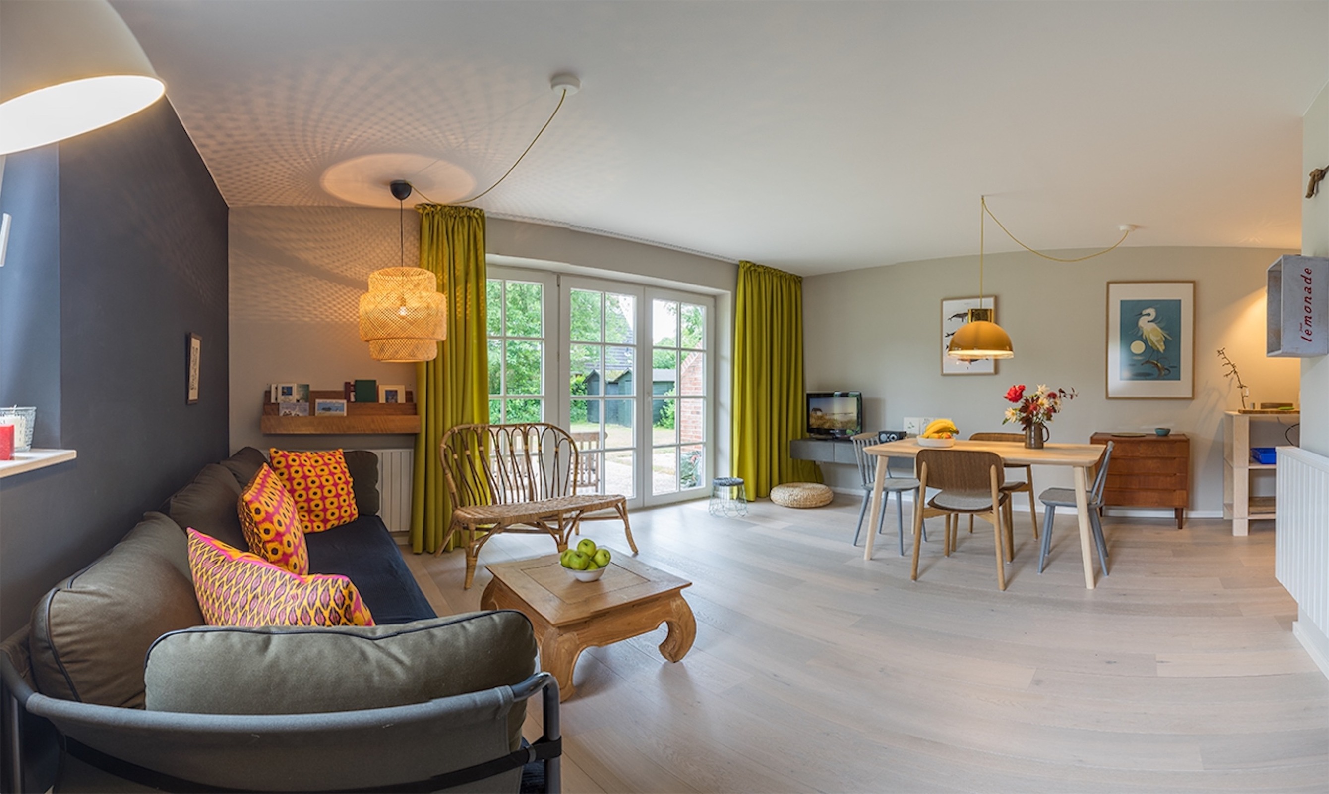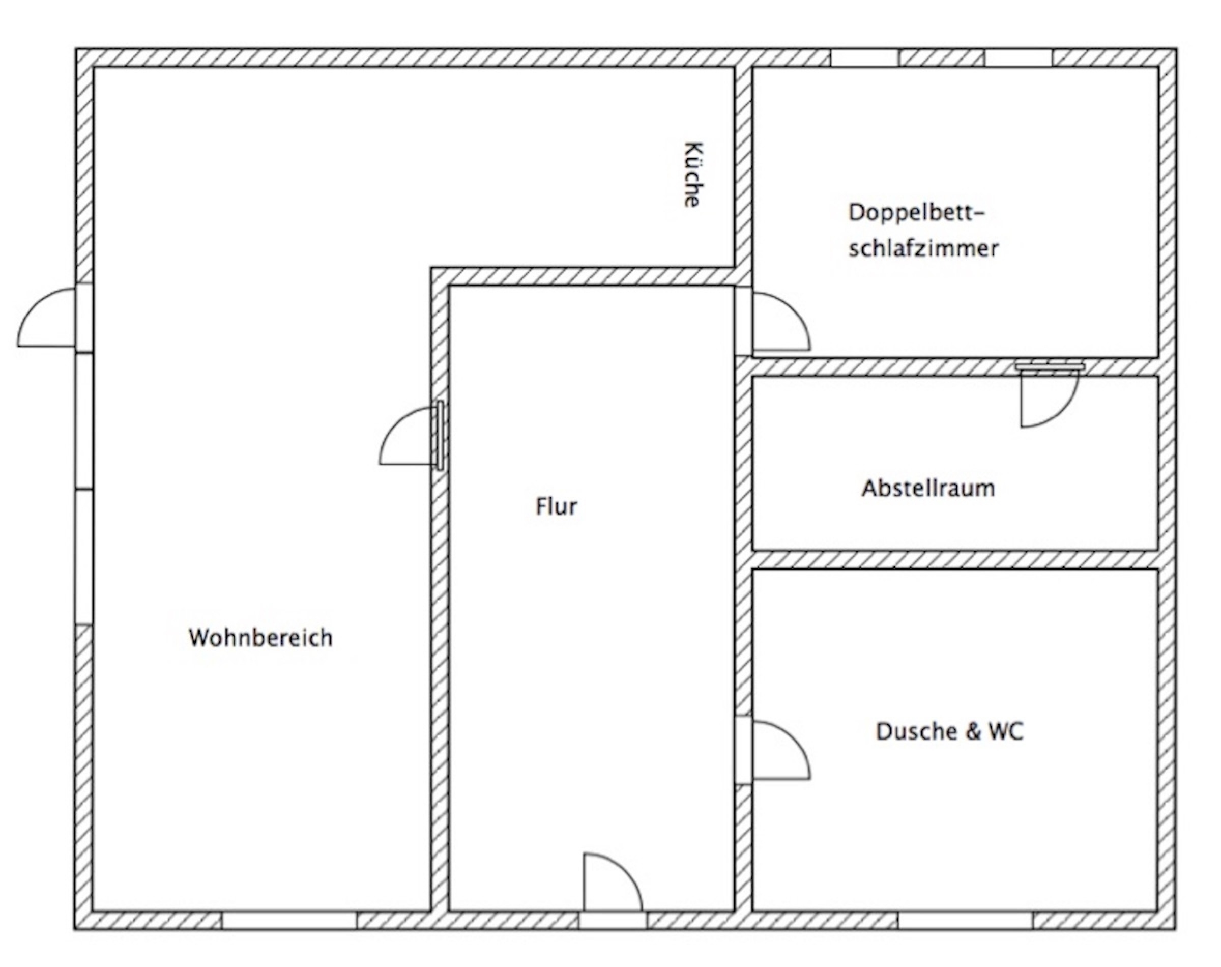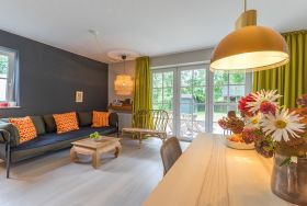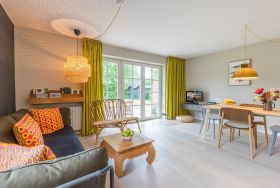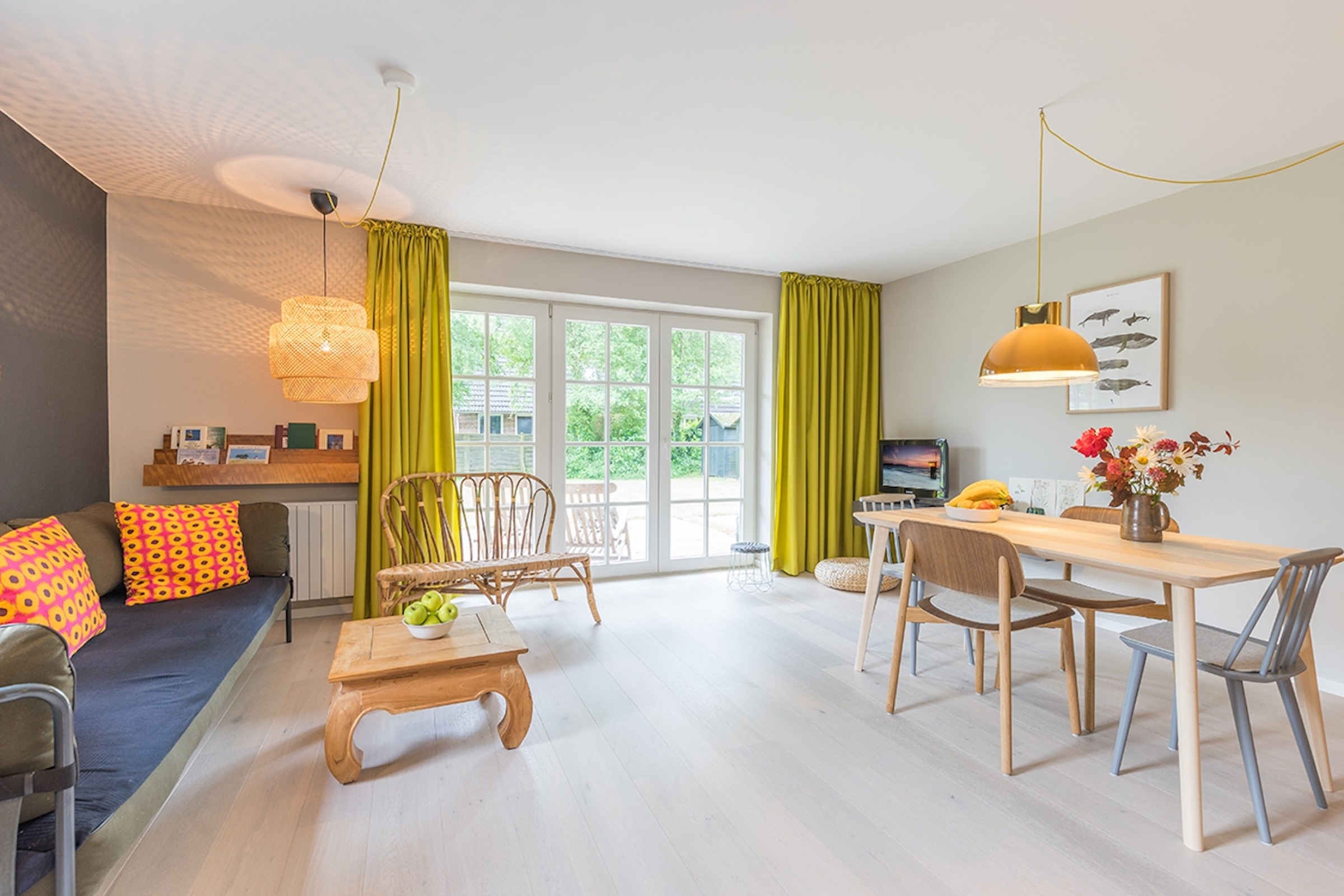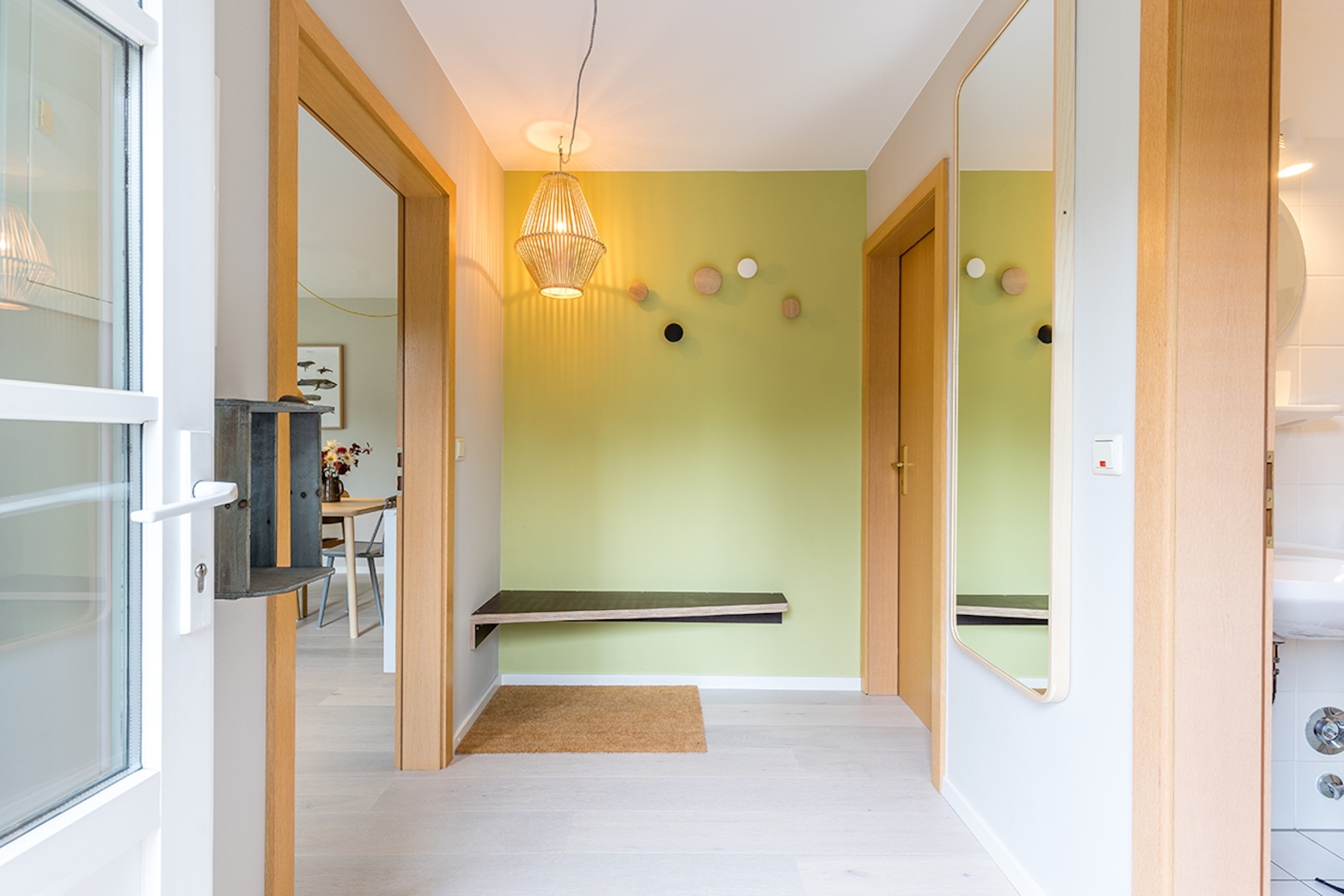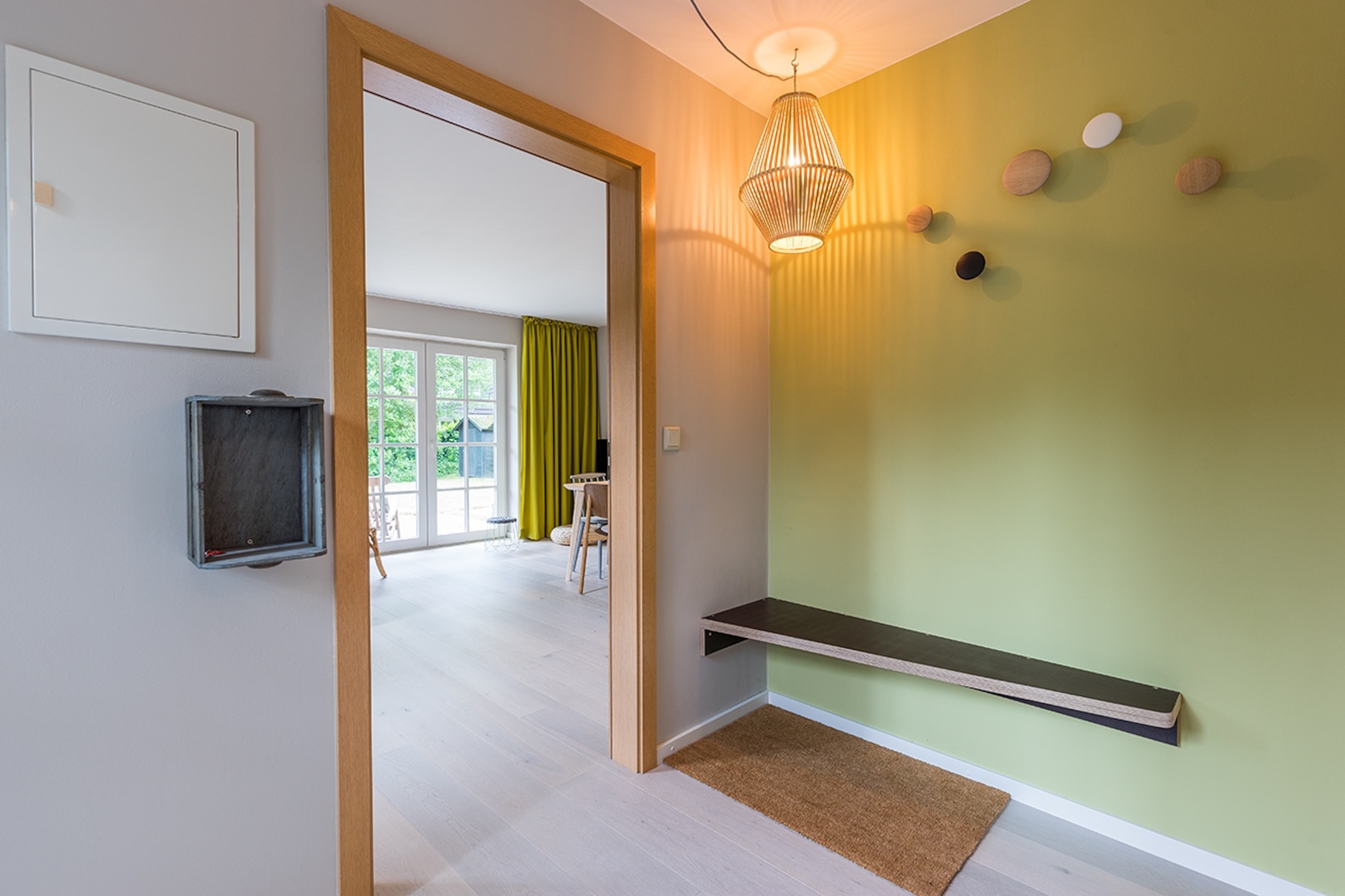 Die ca. 46 qm große Ferienwohnung befindet sich im Erdgeschoss des Vierparteien-Hauses.