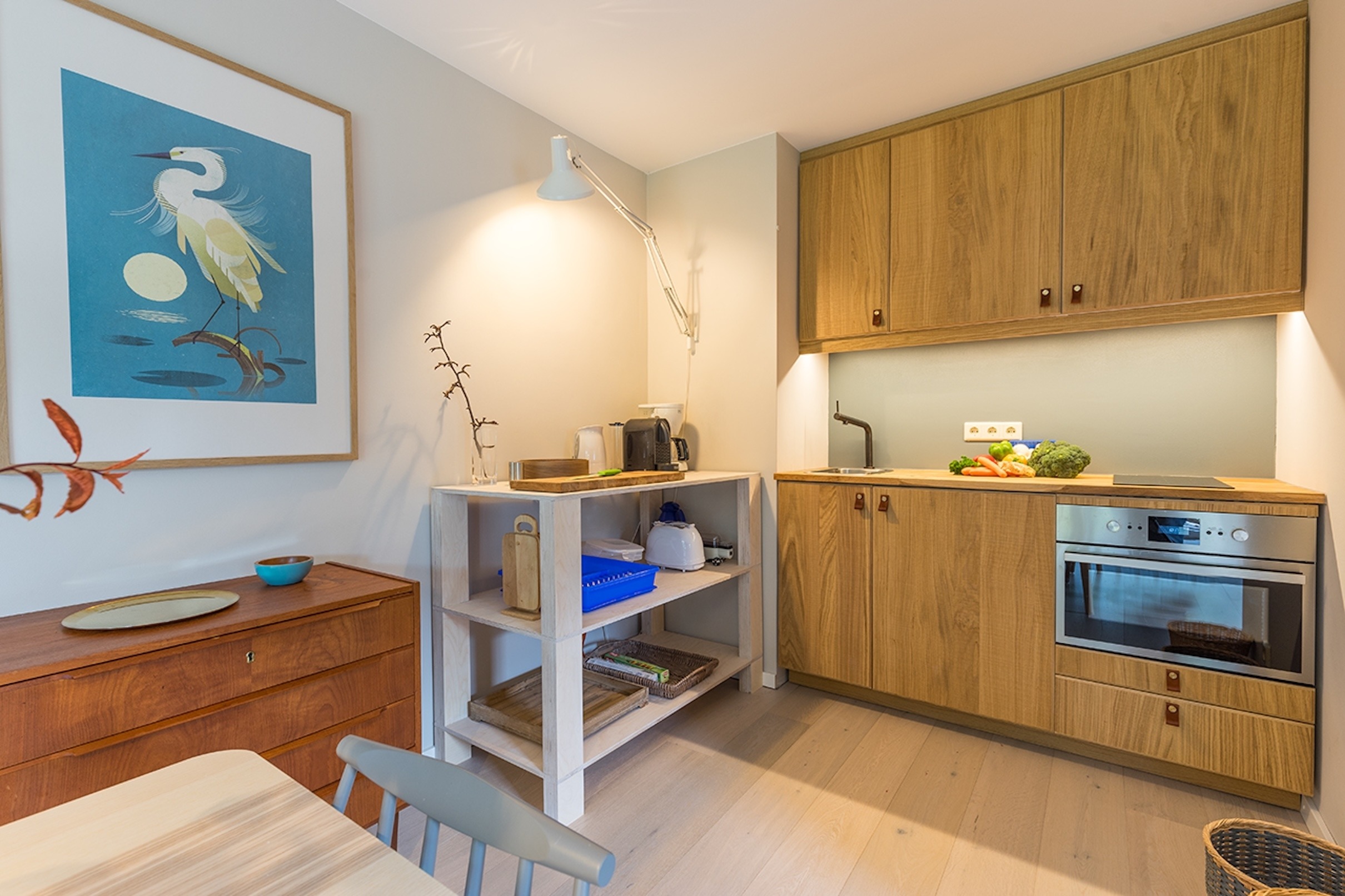 Die Küche ist mit 2er-Cerankochfeld, Backofen, Kühlschrank mit Gefrierfach, Wasserkocher, Kaffeemaschine & Toaster ausgestattet. Selbstverständlich sind ausreichend Geschirr sowie die üblichen Utensilien einer Küche vorhanden.