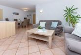 Wohnraum mit integrierter Küche und Essgruppe