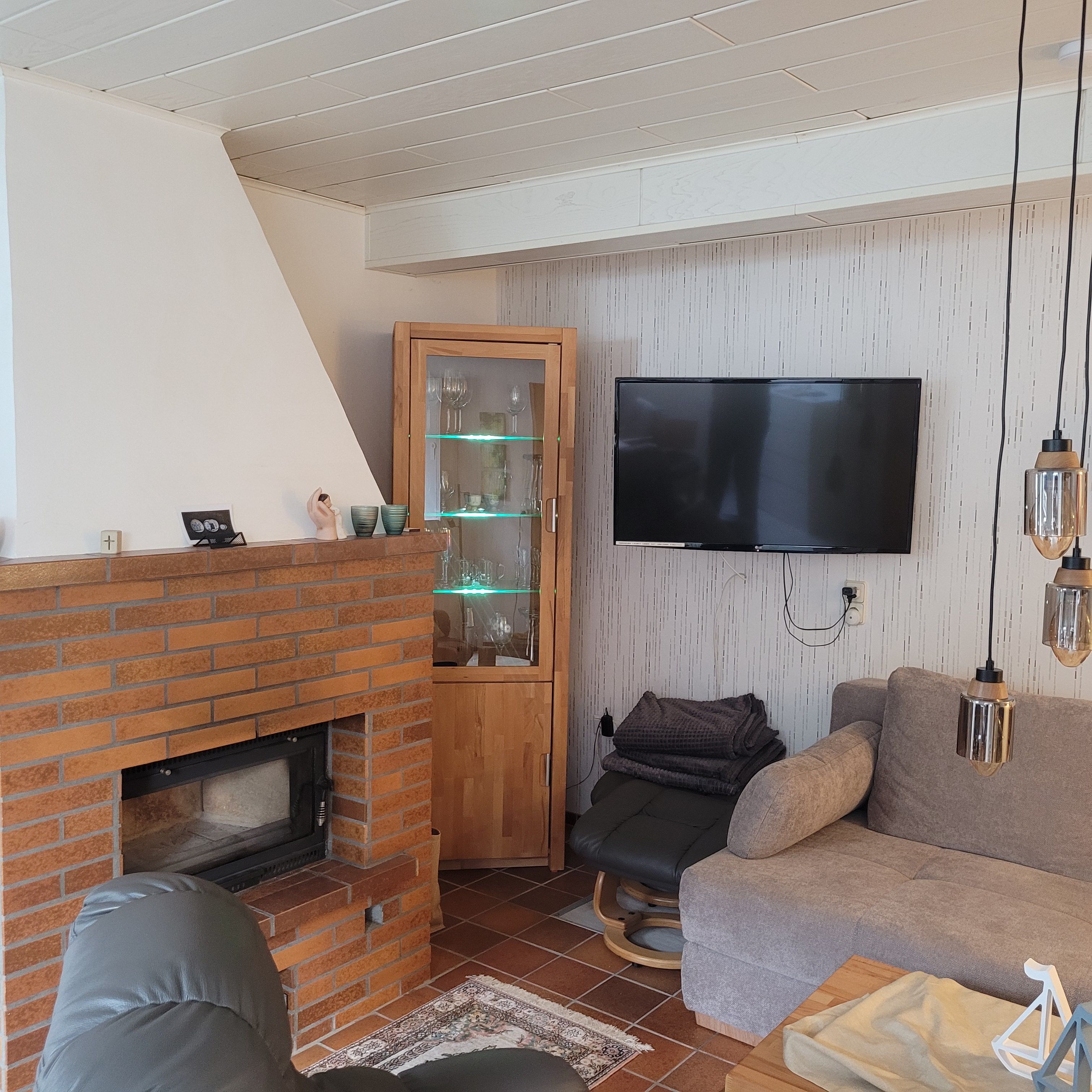 Der Fernseher im Wohnzimmer läuft über die Sat-Schüssel oder mit dem Fire-Stick ermöglichen wir Ihnen den Zugang zum Internetfernsehen mit den bekannten Streamingportalen (Prime Netflix Disney).