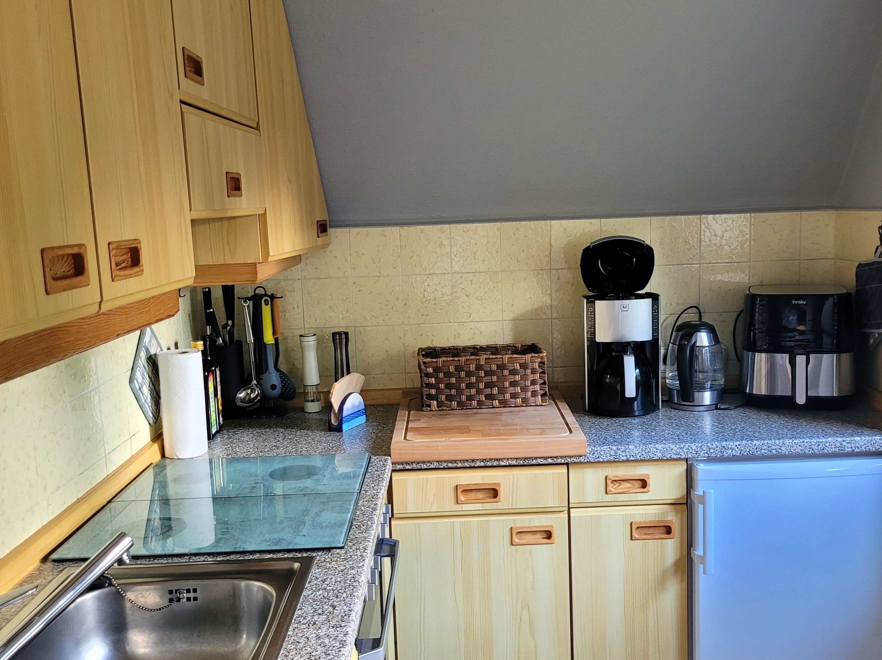 Die große Wohnküche lässt es an nichts fehlen. Es ist alles vorhanden, was Sie benötigen und zusätzlich so viele Dinge, die einfach Luxus bedeuten, wie zum Beispiel die Heißluftfriteuse.