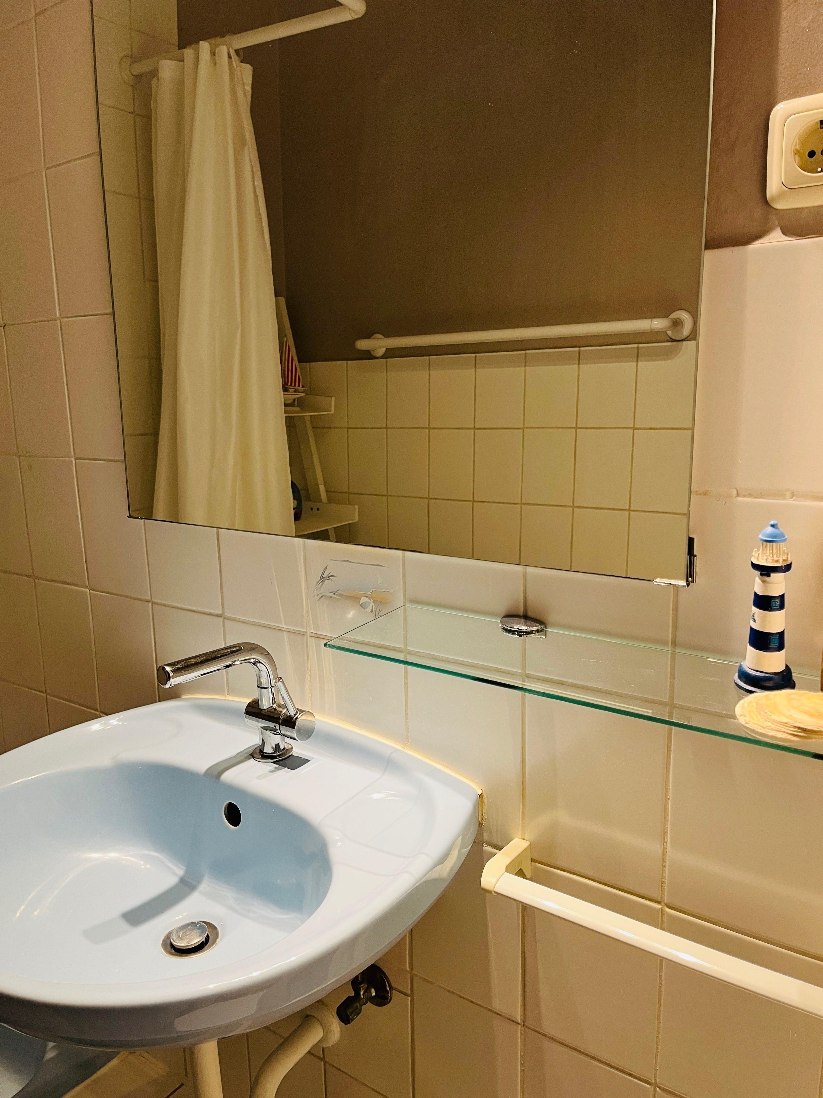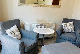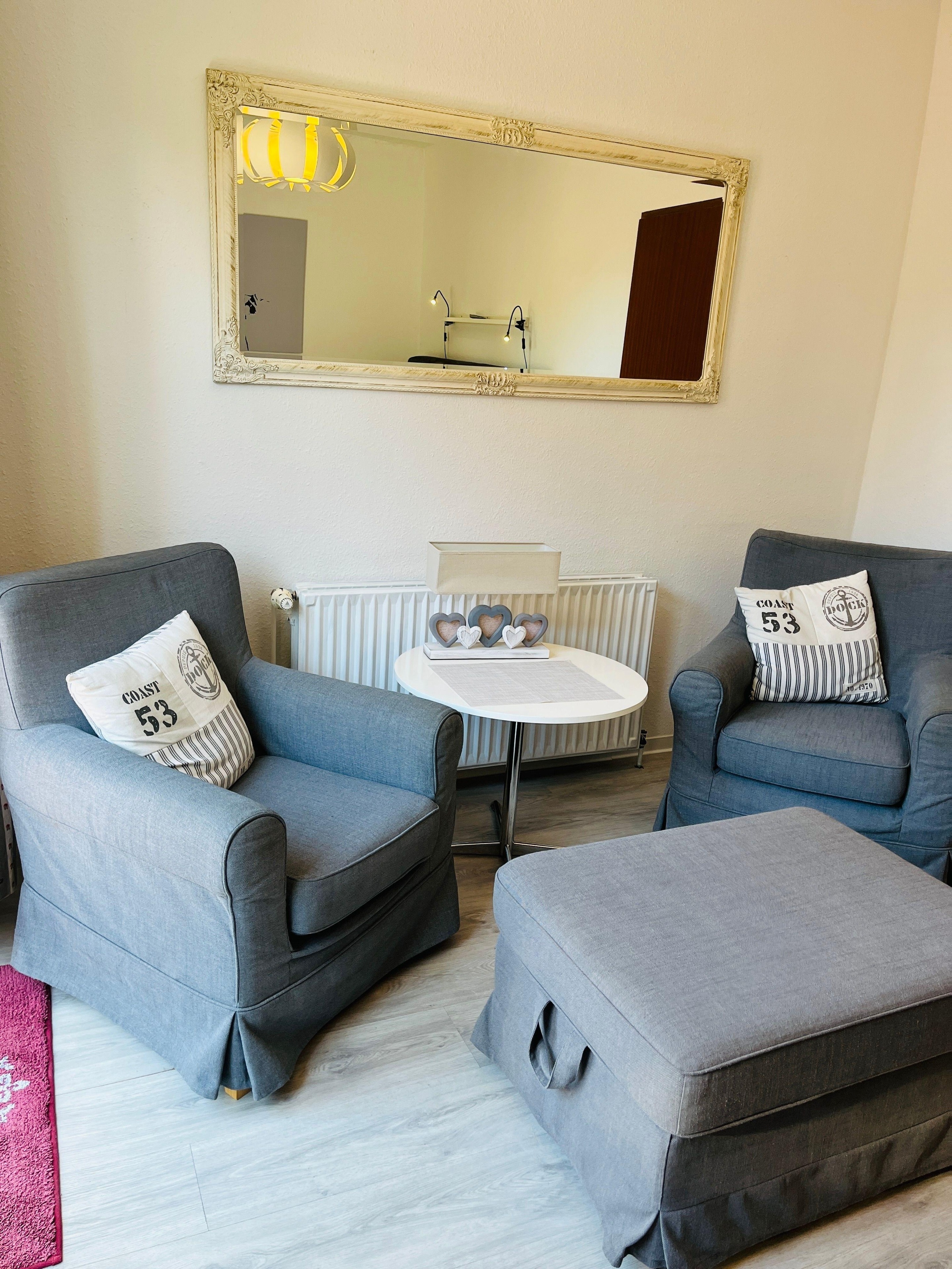 Die Ferienwohnung ist hell und modern eingerichtet. Die Küche ist komplett mit Kaffeemaschine, Wasserkocher, Eierkocher, Toaster und Geschirr ausgestattet.