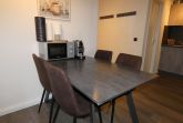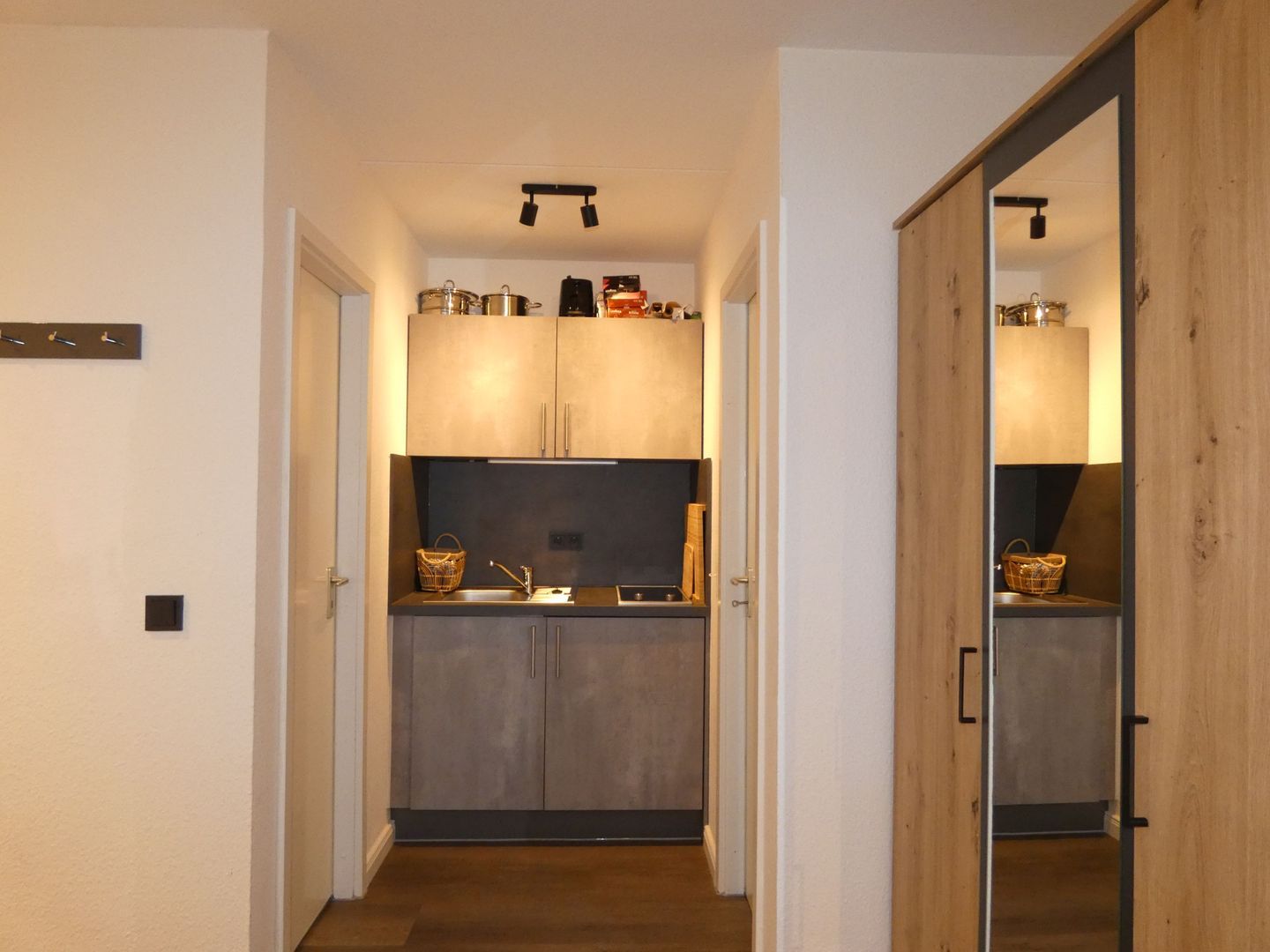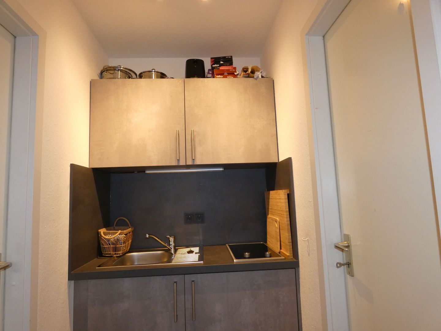 Das lichtdurchflutete Studio besticht durch eine offene Raumgestaltung, die es gemütlich und einladend macht. Der Wohnbereich ist mit einem großen TV ausgestattet, der internationale Kanäle bietet, und die moderne Küchenzeile lädt dazu ein, gemeinsam zu kochen und abends bei einem leckeren Essen den Tag Revue passieren zu lassen. Sie finden alle notwendigen Küchenutensilien, einen Herd mit zwei Platten, eine Mikrowelle, einen Kühlschrank mit Gefrierfach sowie eine Kaffeemaschine vor – perfekt für ein selbstgemachtes Frühstück oder ein romantisches Abendessen.