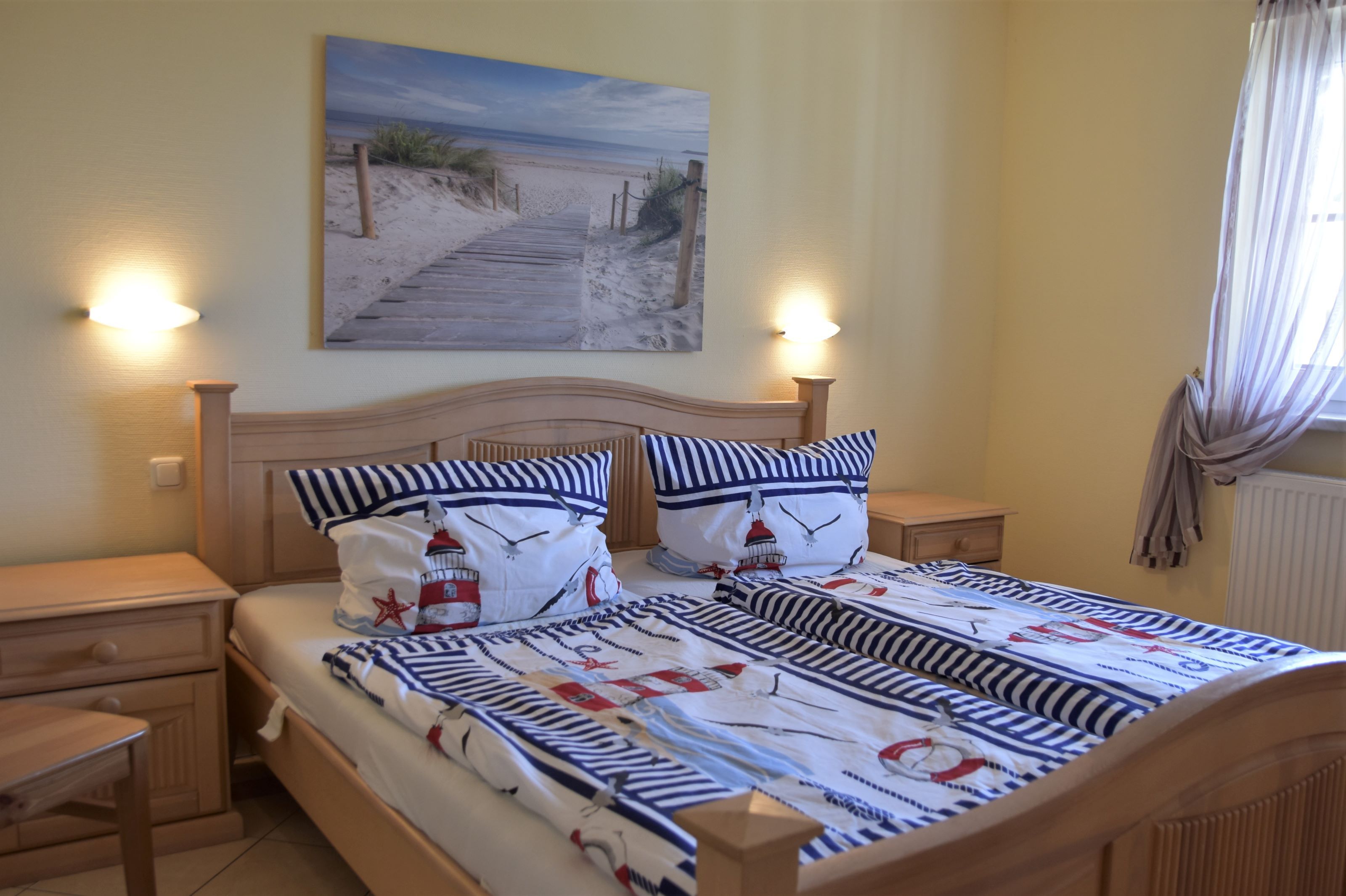 Die beiden separaten Schlafzimmer bieten jeweils ein komfortables Doppelbett, einen Schrank und genügend Ablageflächen, sodass Sie sich rundum wohlfühlen können. Auf Wunsch können Sie zusätzliche Wäschepakete (Bettwäsche und Handtücher) kostenpflichtig hinzubuchen.