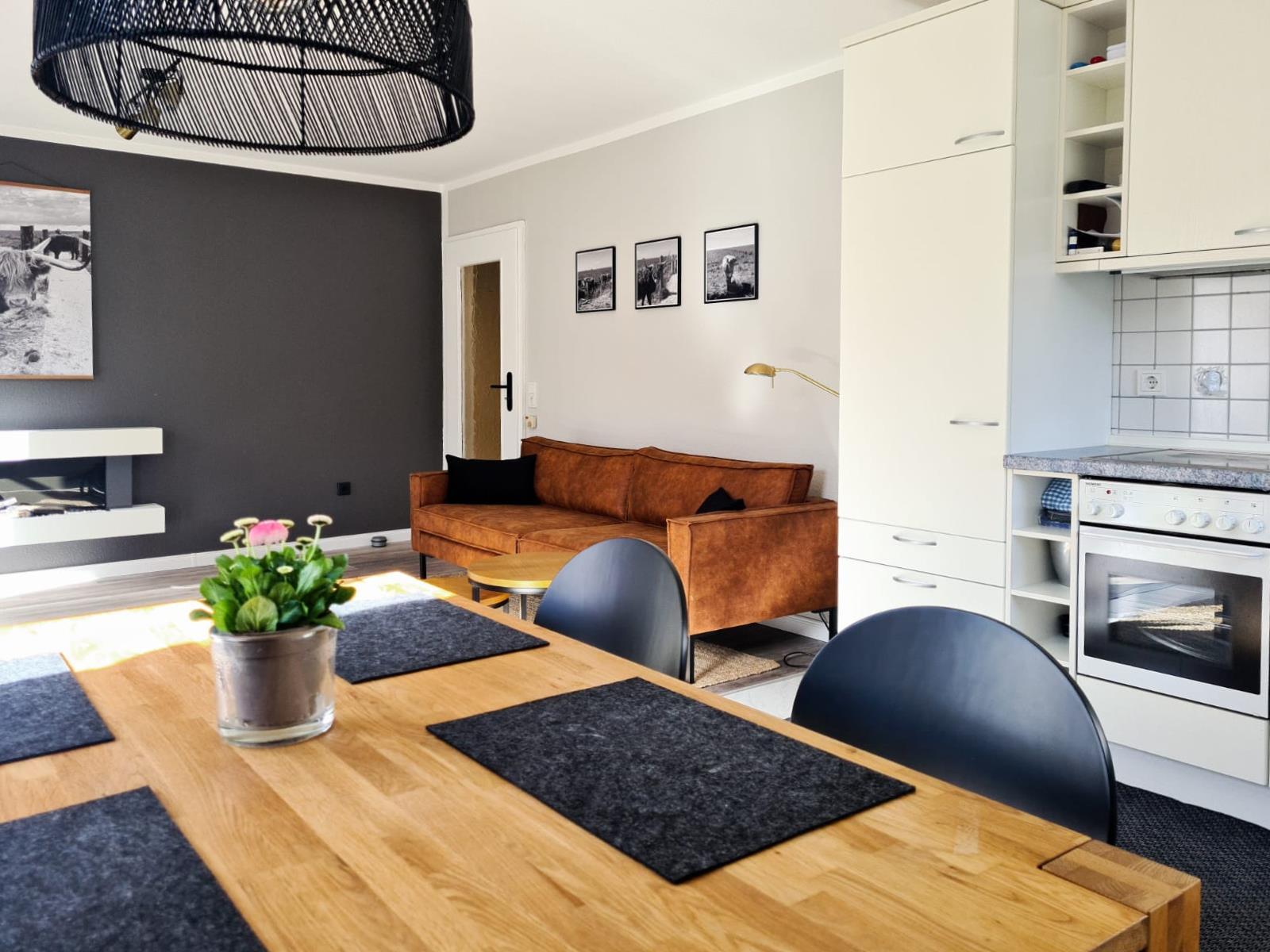 Moderne und gemütliche 55 m² Ferienwohnung, ausgestattet mit einer Süd-Terrasse, für bis zu 2 Gäste – wir freuen uns auf Ihren Besuch!