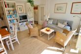 Helle 3-Zimmer-Ferienwohnung im Obergeschoss mit sonnigem Balkon. Die individuelle Wohnung verfügt über einen gemütlichen Wohn- Essbereich mit Zugang zur kleinen, aber gut ausgestatteten Küche. Der Balkon, der mit einer großen Markise versehen ist, erreichen Sie über den Wohn-Essbereich. Auf dieser Ebene befindet sich das Schlafzimmer mit zwei einzelnen Betten. Direkt daneben liegt das erste von zwei Duschbädern. Auf der 2. Ebene gibt es ein zusätzliches Schlafzimmer mit Doppelbett und bad-en-suite. Hervorzuheben ist der ausreichende Stauraum in beiden Schlafzimmern, der durch die Einbauschränke gegeben wird. Den Sandstrand in Nieblum erreichen Sie in wenigen Gehminuten.