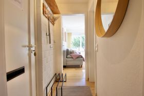 Helle 2-Zimmer-Ferienwohung im Erdgeschoss. Die gemütliche Wohnung verfügt über einen offenen Wohn-Ess-Küchenbereich mit Zugang zur Terrasse, ein separates Schlafzimmer mit Doppelbett (Bettmaße 2*90*200cm) sowie ein modernes Duschbad. Den Sandstrand in Nieblum erreichen Sie in wenigen Gehminuten. Den Sandstrand in Nieblum erreichen Sie in wenigen Gehminuten. Das Haus liegt unweit des Dorfteiches Bi de Meere. Parkplätze für Fahrräder und PKW liegen direkt beim Haus.