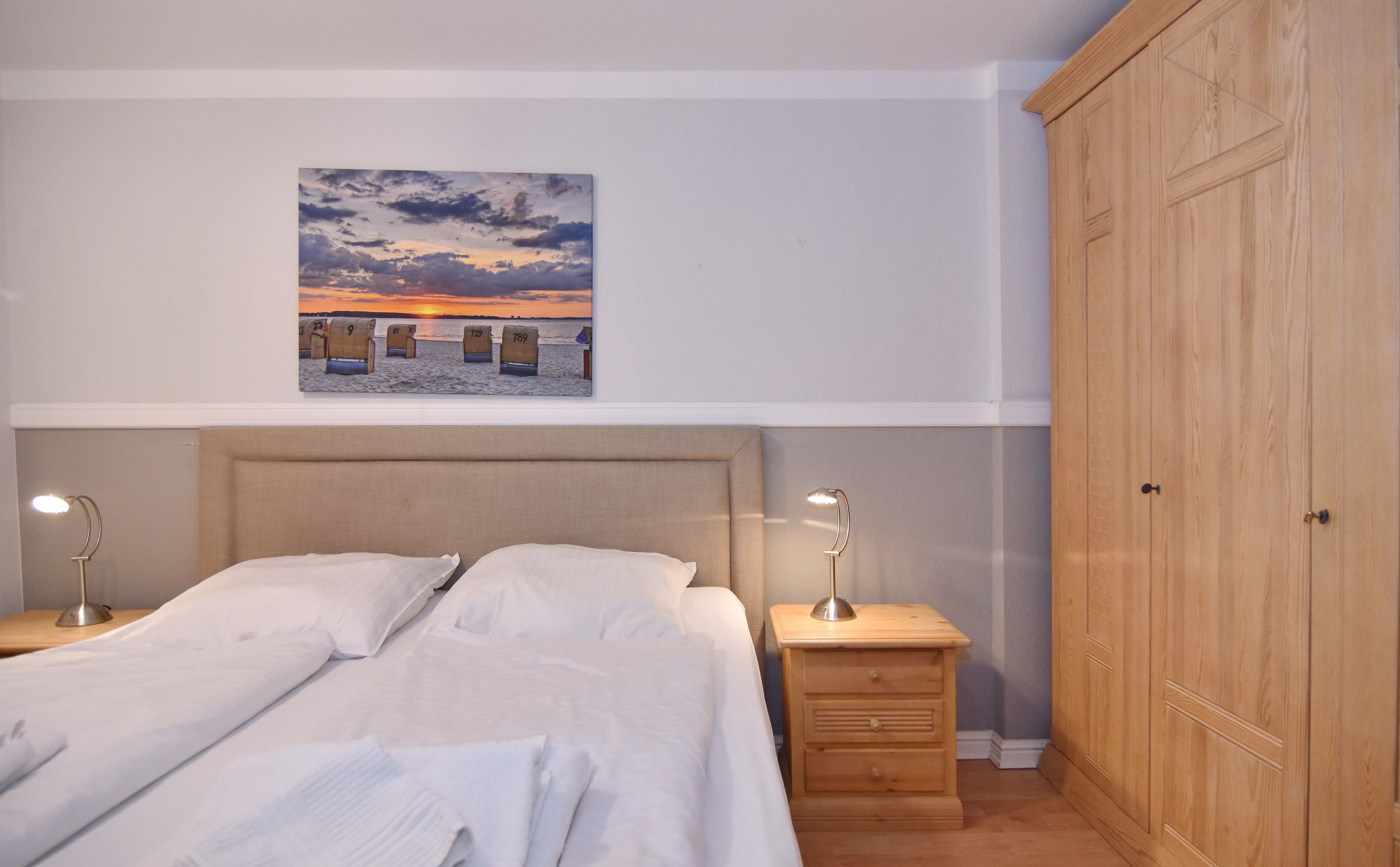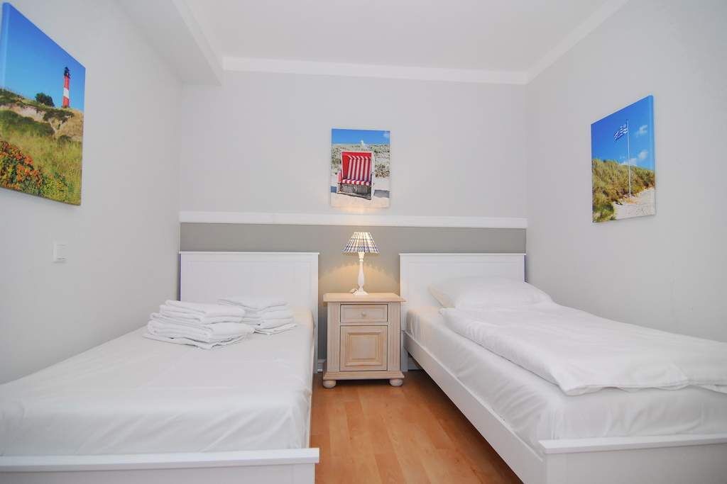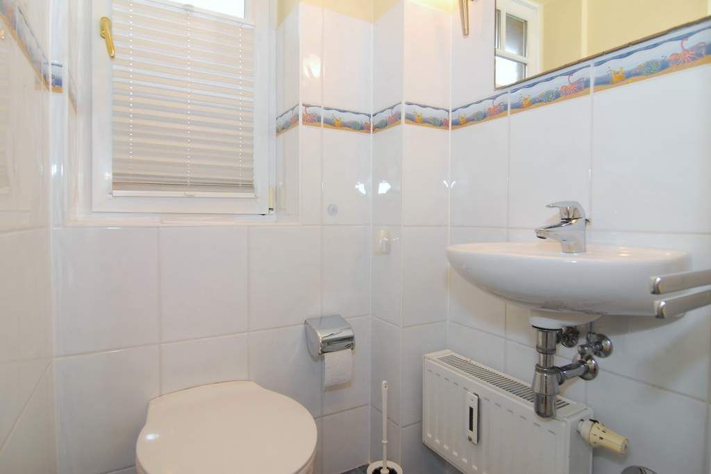 Die Wohnung ist ca. 68qm groß und erstreckt sich über das Erdgeschoss und Souterrain. Im Erdgeschoss befinden sich der Wohnraum mit offener Küche, der Flur mit Garderobe sowie ein Duschbad / WC. Die Küche verfügt über Backofen, Mikrowelle und Geschirrspüler. Vom Wohnzimmer aus gelangen Sie auf die Terrasse und in den Garten. Das Grundstück ist Richtung Osten und Süden ausgerichtet. Eine Treppe aus dem Wohnzimmer führt in das Untergeschoss. Hier befinden sich zwei Schlafräume mit Doppelbett sowie ein Badezimmer mit Wanne, WC und Waschmaschine Das Apartment ist komplett mit Laminat ausgelegt. PKW-Stellplatz Nr. 1 befindet sich direkt am Haus. Tierhaltung ist nicht gestattet. Bettwäsche und Handtücher sind zur Anreise aufgezogen. Nichtraucher-Appartement!