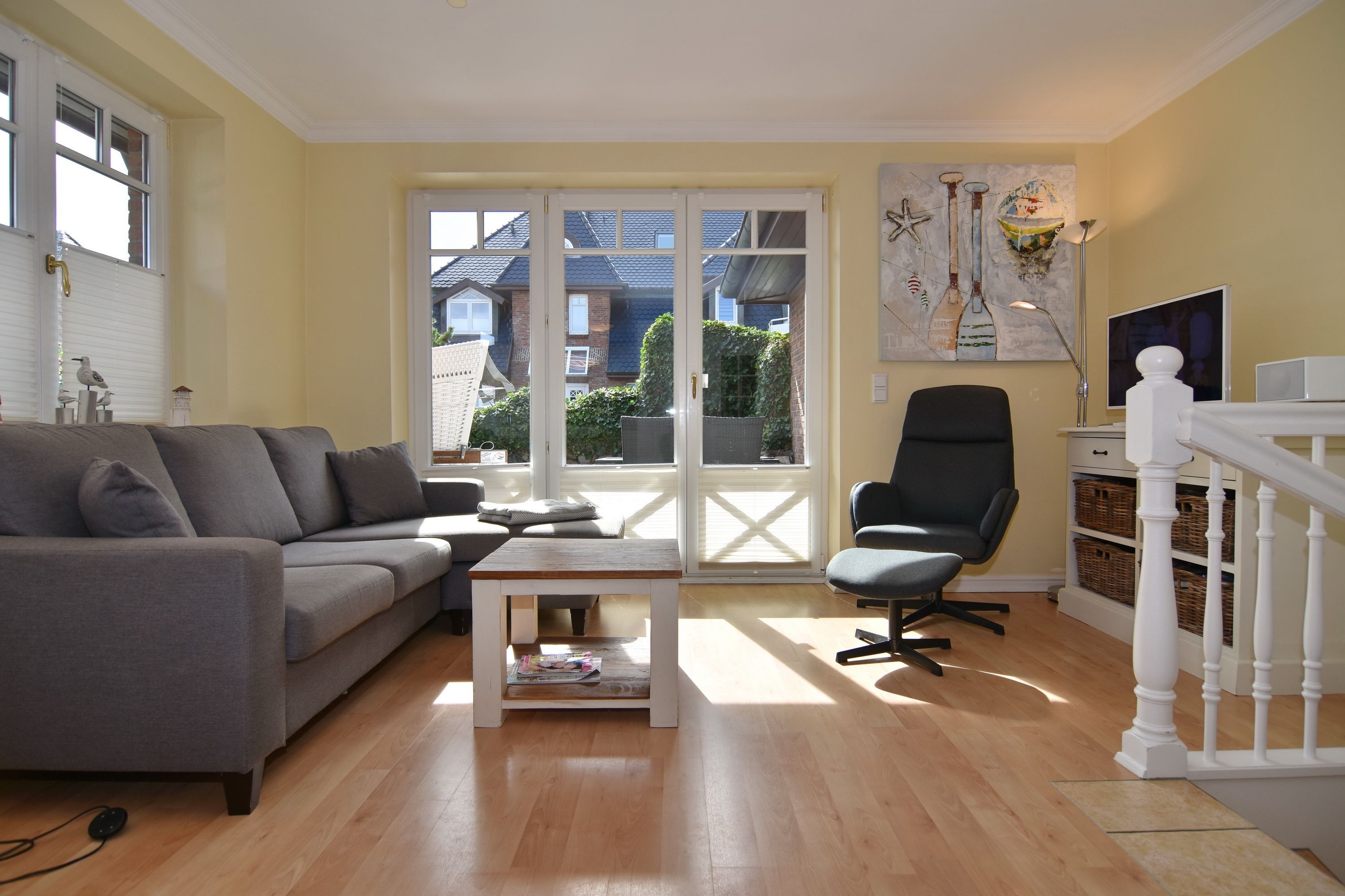 Zentral und strandnahe 3-Zimmer-Ferienwohnung mit herrlichem Garten und Terrasse. Genießen Sie die Sonnenstunden von morgens bis abends.
