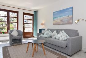 Schöne 2-Zimmer-Maisonettewohnung. Ca. 45 qm. Nichtraucher-Whg.! EG: Wohnzimmer mit sonniger Südterrasse, Strandkorb (Apr.-Okt.), Sitzecke mit Doppelschlafcouch (150x197), Kabel-Farb-TV, Radio, W-Lan (ohne Gewähr), Eßplatz für 4 Personen, Küchenzeile mit Mikrowelle und Geschirrspüler. UG: Schlafzimmer mit Doppelbett (2x90x200), Duschbad/WC. Die Wohnung ist im EG gefliest. Kostenlose Benutzung des hauseigenen Schwimmbades und der Sauna. Waschmaschine und Trockner über Münzautomaten. Bettwäsche und Handtücher sind zur Anreise aufgezogen! Tierhaltung ist nur im EG gestattet. (keine Kampfhunde)