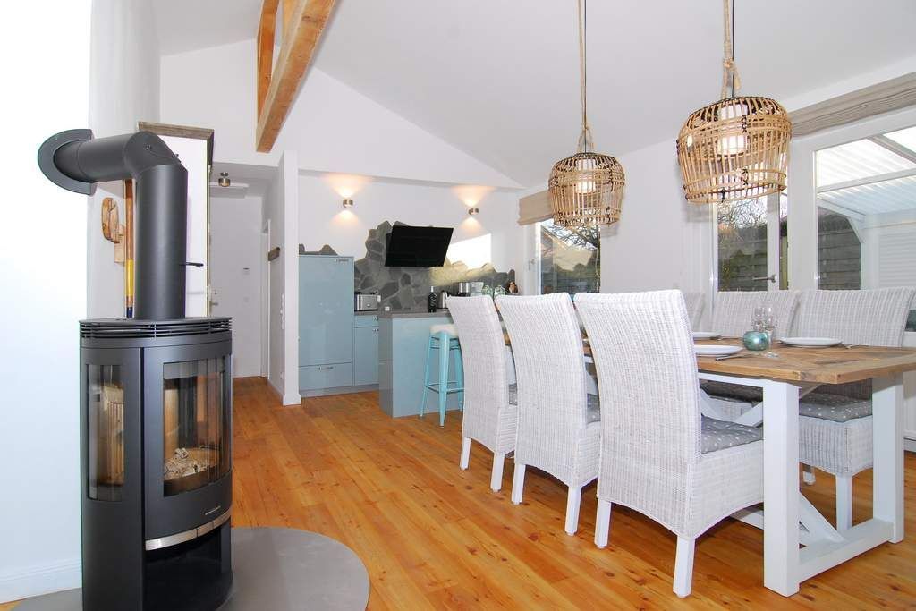 Abseits des Trubels und dennoch nah zum Strand finden Sie im Swiet Seven eine Oase zum Entspannen. Das kleine Haus wurde liebevoll eingerichtet und bietet für 4 Personen ausreichend Platz. Der Wohnraum hat einen großzügigen Essbereich mit offener Küche und einen gemütlichen Sitzbereich mit Kaminofen. Die Küche ist mit einem Backofen/Mikrowellen-Kombigerät, Ceranfeld und Geschirrspüler ausgestattet. Ein großer Flat-TV, Stereoanlage mit Bluetoothfunktion und ein kostenloser W-Lan-Zugang stehen Ihnen zur Verfügung. Vom Wohnraum aus gelangen Sie auf zwei möblierte Terrassenbereiche - eine überdachte Terrasse Richtung Süden und eine große Terrasse mit Saison-Strandkorb (ca. April -Oktober) und 2 Liegen in Richtung Westen. Auch die beiden Schlafräume sind im frischen Beachhouse-Stil eingerichtet und verfügen über ausreichend Platz für Gepäck und Kleidung. Das große Schlafzimmer verfügt zusätzlich über einen Flat-TV. Alle Räume sind mit einem Echtholz-Kieferboden verlegt, das geräumige Bad mit ebenerdiger Dusche und Waschmaschine verfügt über einen Steinboden, der durch die Fußbodenheizung angenehm warm ist. In diesem Haus findet auch der beste Freund des Menschen Platz und muss kostenpflichtig angemeldet werden. Selbstverständlich darf der Hund nicht in die Schlafräume oder auf die Polstermöbel. Ihr Fahrzeug können Sie bequem in der Sackgasse parken. Stellflächen sind hier kostenfrei und ausreichend vorhanden. Bettwäsche und Handtücher sind zur Anreise aufgezogen.