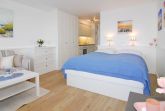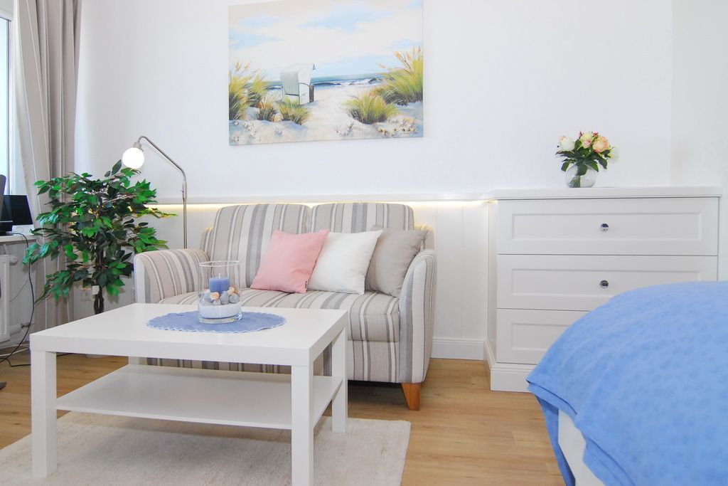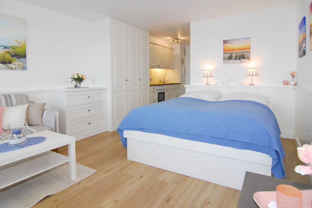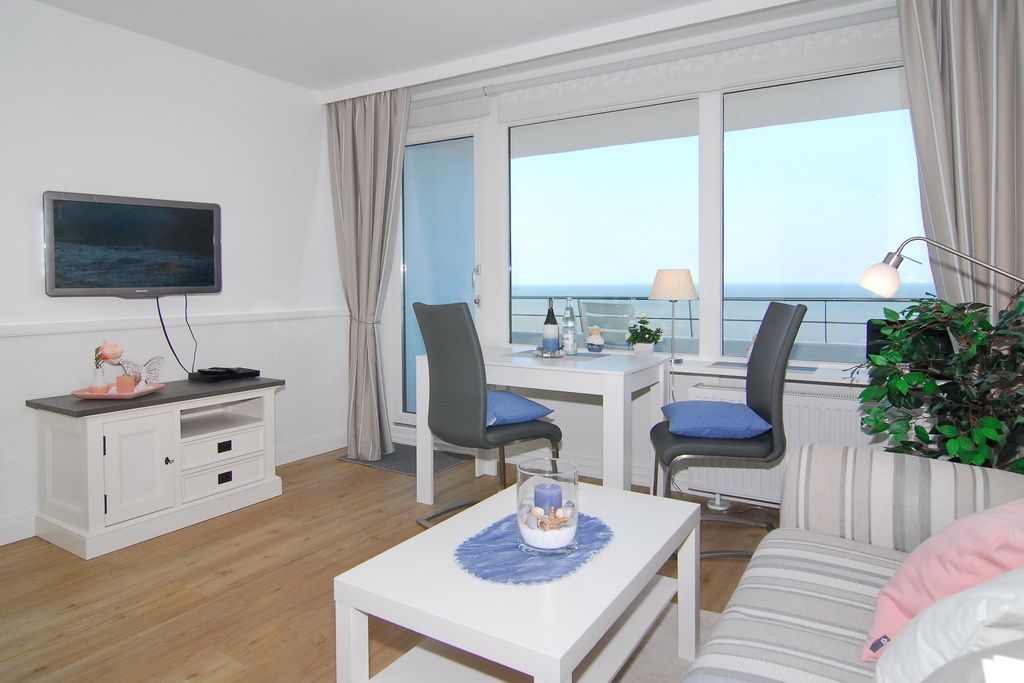Sie wohnen in einer schicken 1-Zimmer-Ferienwohnung mit herrlichem Blick auf die Nordsee im 10.OG vom Haus Metropol. Die Wohnung ist für 2 Personen komplett ausgestattet und verfügt über einen Wohn-/Schlafraum mit Designfußboden, eine freistehendes Doppelbett (160x200), das von beiden Seiten aus begehbar ist, maßgefertigte Einbauschränke, eine 2er-Couch und einen Essplatz mit Meerblick am Fenster. Die Küchenzeile im Flurbereich ist mit Ceranherd und Backofen, das Duschbad mit WC und Fön. Zudem ist die Wohnung mit einem TV mit Radiofunktion und WLAN (ohne Gewähr) ausgestattet. Der möblierte Westbalkon mit herrlichem Meeresblick läd ein zum Verweilen. Tierhaltung und Rauchen sind nicht gestattet. Bettwäsche und Handtücher sind zur Anreise aufgezogen. Ein PKW-Stellplatz kann kostenpflichtig zugebucht werden.