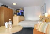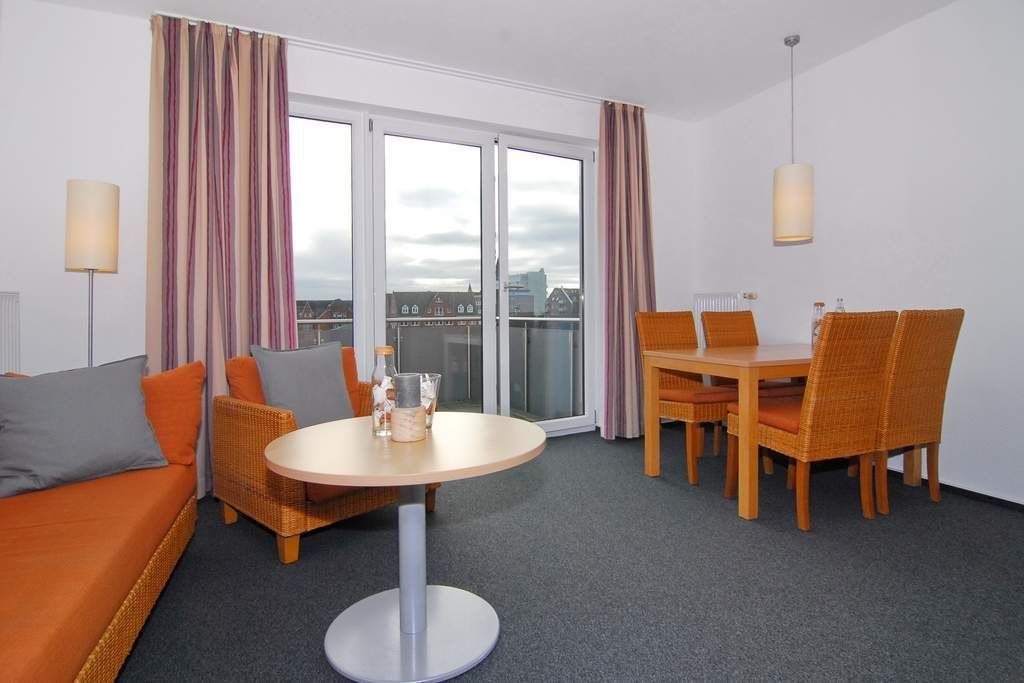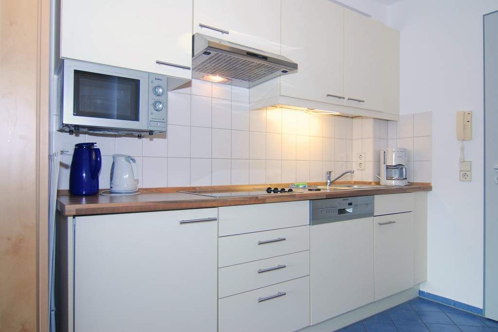 Moderne 1-Zimmer-Ferienwohnung im roten Haus, ca. 33m², 2. OG Nichtraucher-Whg.! Wohn-/Schlafraum mit Südbalkon, Doppelbett, Essplatz, 2-Sitzer-Couch u. Sessel, Kabel-TV, Küchenzeile mit GS u. Mikrowelle, Duschbad/WC. Internetanschluß (ohne Gewähr). Waschküche und Fahrradkeller im Nebenhaus Mauritius. Pkw-Stellplatz kann kostenpflichtig hinzugebucht werden. Bettwäsche und Handtücher sind zur Anreise aufgezogen! Tierhaltung ist nicht gestattet.