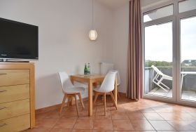 1-Zimmer-Ferienwohnung im roten Haus der Residenz Mauritius, Nichtraucher-Whg., ca. 36 m², 1. OG. Wohn-/Schlafraum mit Südbalkon, Doppelbett, Essplatz, 2-Sitzer-Couch (ausziehbar/als Doppelliege nutzbar) und Sessel, Kabel-TV, Küchenzeile mit Geschirrspüler und Mikrowelle, Nespressomaschine, Duschbad/WC. Das Apartment ist komplett gefliest. Internetanschluß (ohne Gewähr). Waschküche und Fahrradkeller im Nebenhaus Mauriitus. Pkw-Stellplatz kann kostenpflichtig hinzugebucht werden. Bettwäsche und Handtücher sind zur Anreise aufgezogen! Tierhaltung ist gestattet und muss angemeldet werden.