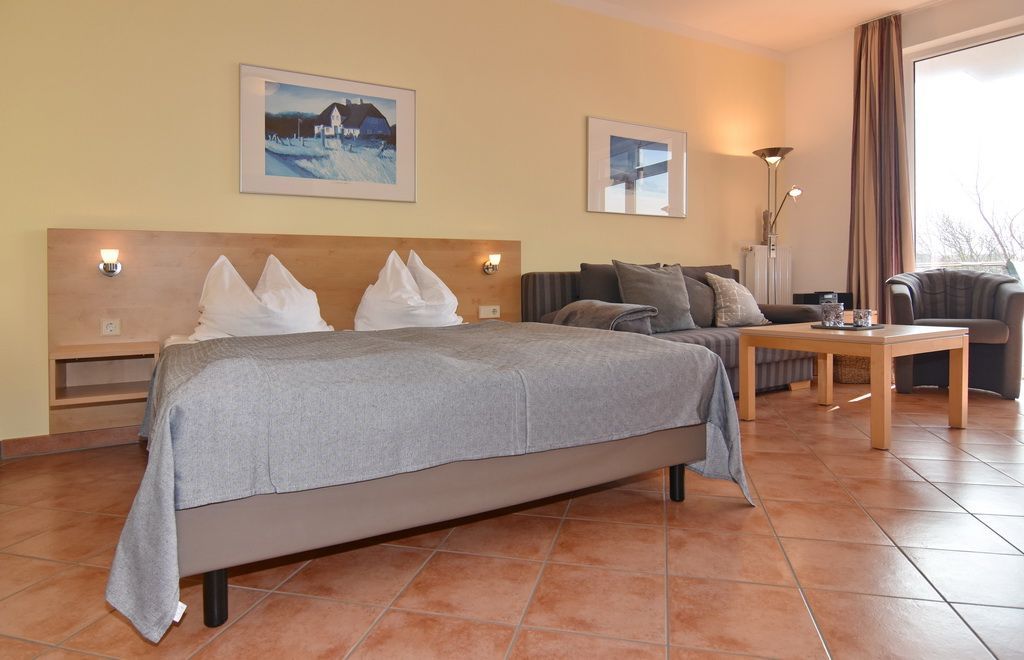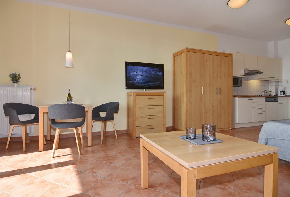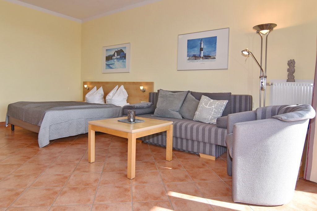 Gepflegte 1-Zimmer-Ferienwohnung im roten Haus, Nichtraucher-Whg., ca. 34m², 1. OG. Wohn-/Schlafraum mit Südbalkon, Doppelbett, Essplatz, 2-Sitzer-Couch und Sessel, Flat-TV, Küchenzeile mit Geschirrspüler und Mikrowelle, Duschbad/WC. Das Apartment ist komplett gefliest. Internetanschluß (ohne Gewähr). Waschküche und Fahrradkeller im Nebenhaus Mauritius. P Pkw-Stellplatz kann kostenpflichtig hinzugebucht werden. Bettwäsche und Handtücher sind zur Anreise aufgezogen!
