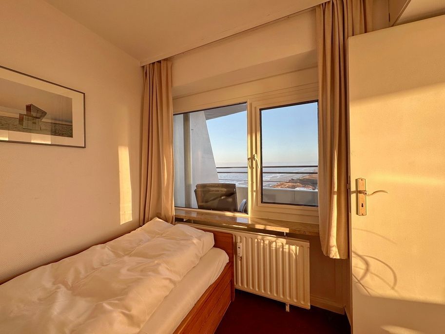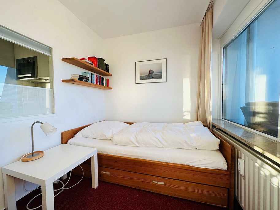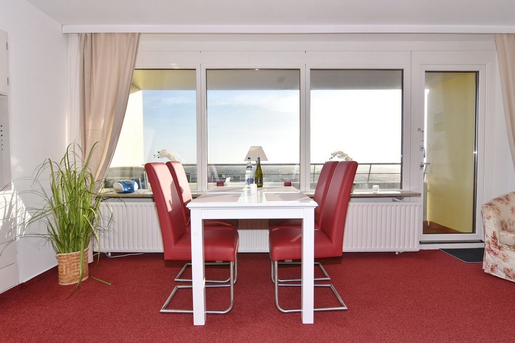 Gepflegte 3-Zimmer-Wohnung im Haus Metropol im 10. OG, Nord-Ost-Ecke mit Meerblick, Nichtraucher. Wohnraum mit Sofa und 2 Sessel, TV,, Radio, W-Lan (ohne Gewähr), Essplatz für 4 Personen, Nordbalkon mit Meeresblick, Ostbalkon mit Blick über die Insel, separate Küche mit 4-Platten-Herd und Mikrowelle, 1 kleines Schlafzimmer mit Einzelbett und Blick auf das Meer, 1 Schlafzimmer mit Doppelbett (2x90x200) und Ostbalkon sowie Blick über die Insel, Wannenbad/WC mit Duschvorrichtung. Tierhaltung ist nicht gestattet. Bettwäsche und Handtücher sind zur Anreise aufgezogen. PKW-Stellplatz/Garage kann kostenpflichtig zugebucht werden.