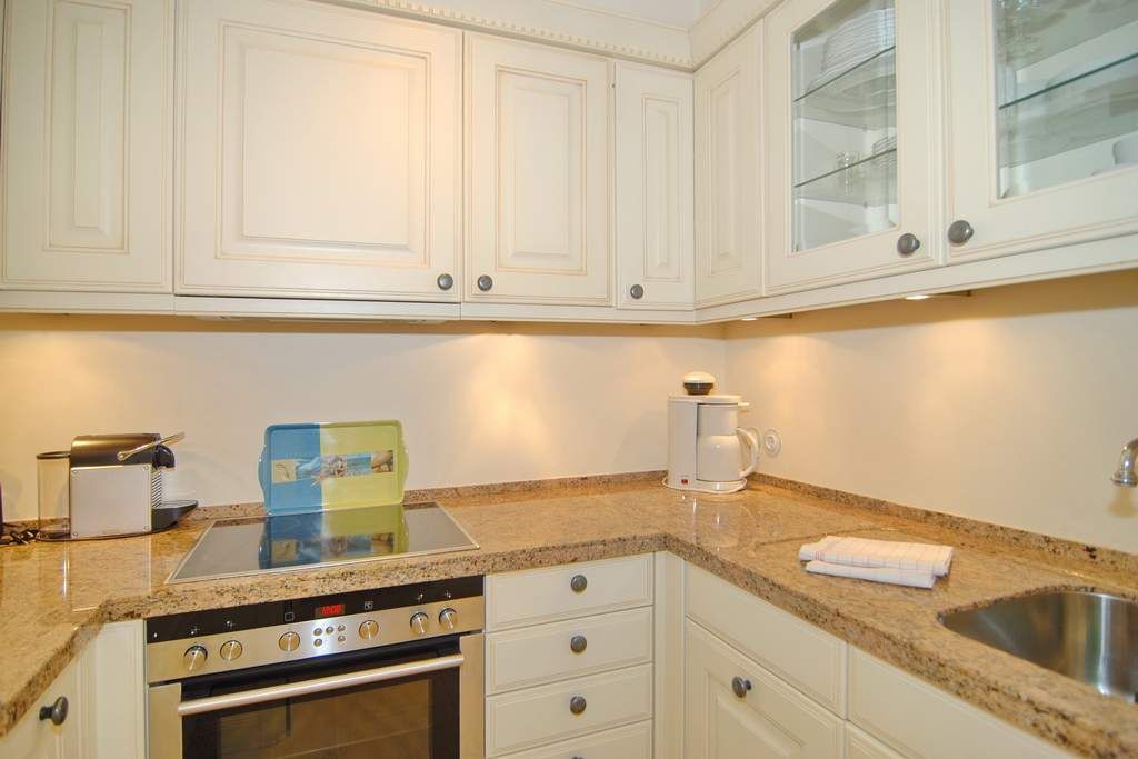 Exklusive 2-Zimmer-Ferienwohnung im 4. OG zur Seeseite; Haus Metropol. Ca. 68m². Großes Wohnzimmer mit eingebauter Essecke und Tisch, Couchecke (Dpp.-Schlaf-Couch) mit Sessel, TV und Stereo, separates Schlafzimmer mit Doppelbett (2x90x200 ) und kleiner Couch, begehbarer Kleiderschrank, Bad mit Dusche, Waschtisch, Regenduschkopf, separate Küche mit Mikrowelle, Geschirrspüler, Backofen und Ceranfeld, WLAN (ohne Gewähr). 2 große Westbalkone mit Seeblick, Rauchen und Tierhaltung verboten. PKW-Stellplatz/Garage kann kostenpflichtig gebucht werden. Bettwäsche und Handtücher sind zur Anreise aufgezogen.