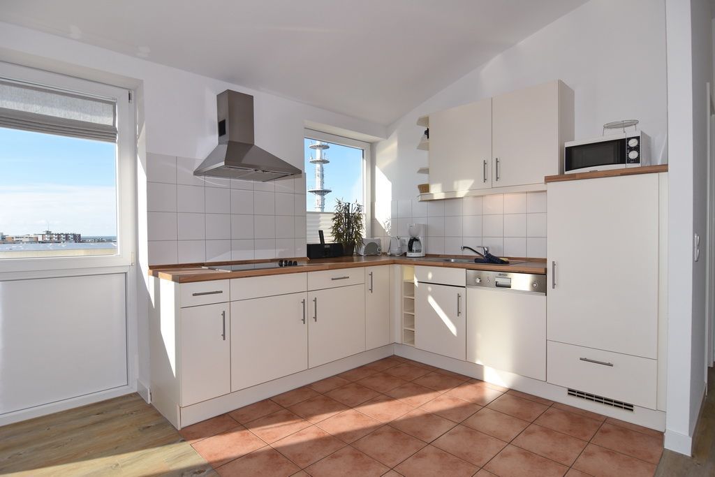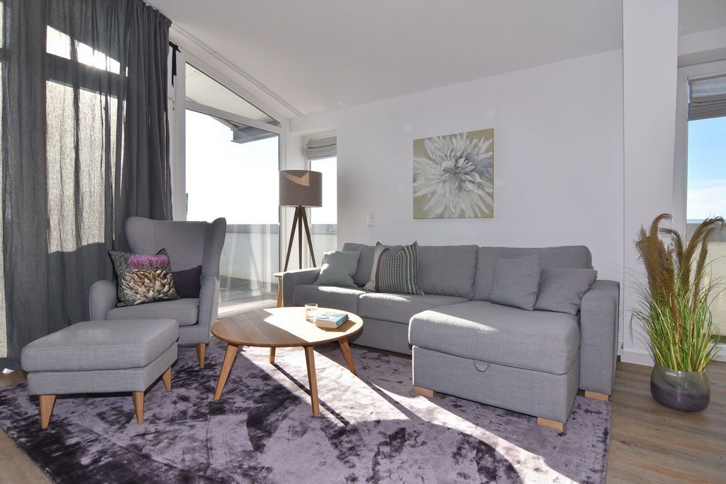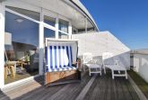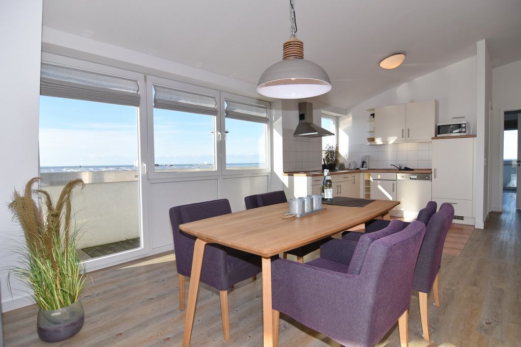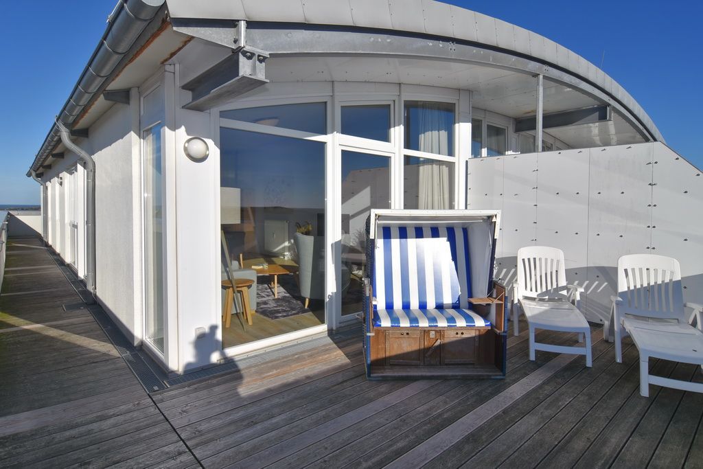 Modernes 2-Zimmer-Penthouse im 6.OG mit umlaufender Dachterrasse (Süden/Westen/Norden) mit Strandkorb. Ca. 72 m² im Haus Mauritius. Wohnzimmer mit großer Schlafcouch und Sessel, TV, offene Küche mit Geschirrspüler und Mikrowelle, Essplatz , Schlafzimmer mit Doppelbett, Duschbad/WC und separates Gäste-WC. Rauchen und Tierhaltung ist nicht gestattet. Ein Pkw-Stellplatz kann kostenpflichtig hinzugebucht werden. Bettwäsche und Handtücher sind zur Anreise aufgezogen!Waschküche und Fahrradkeller im Haus. Internet (ohne Gewähr).