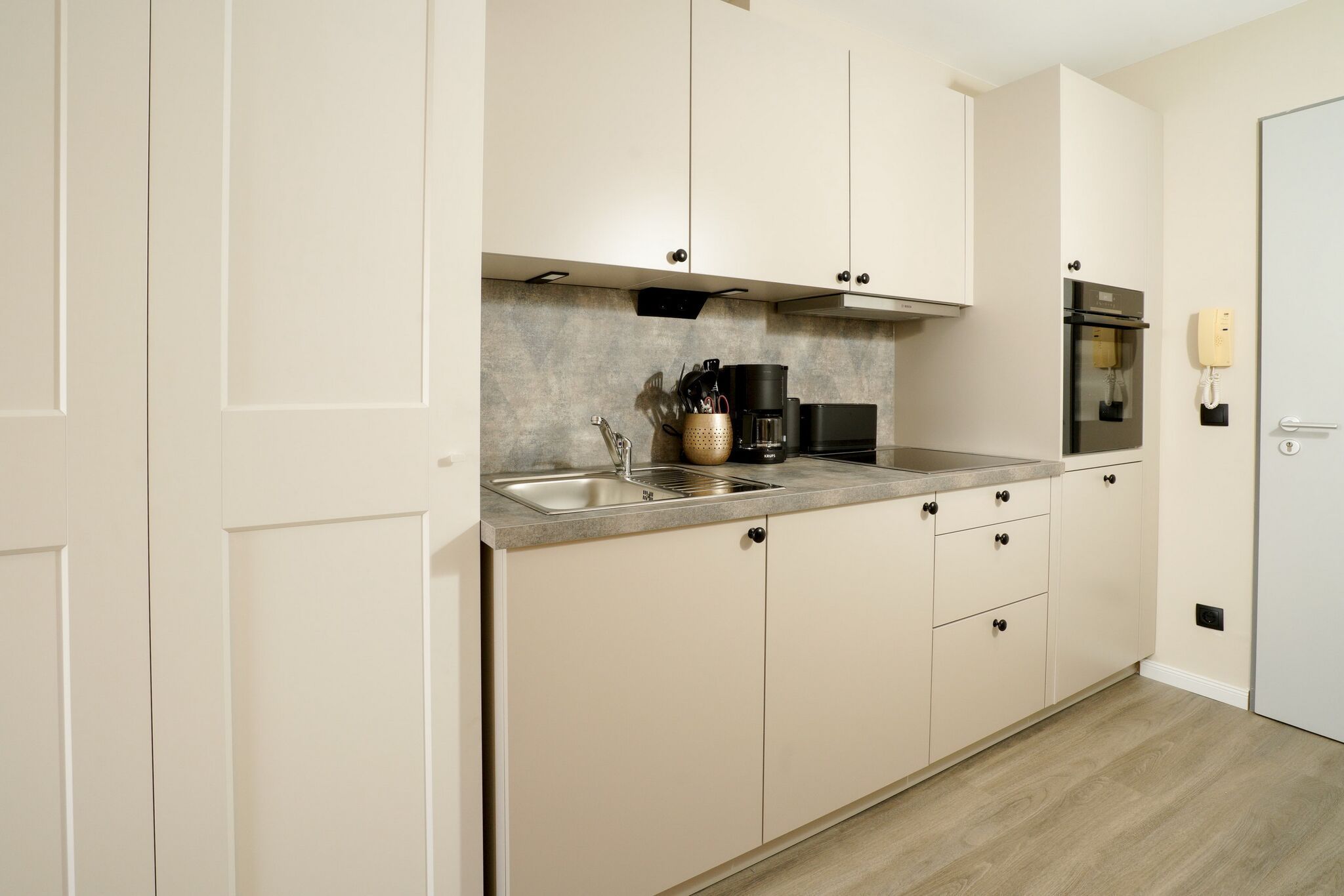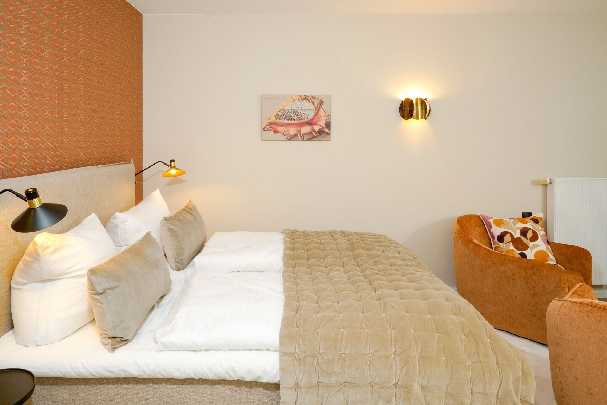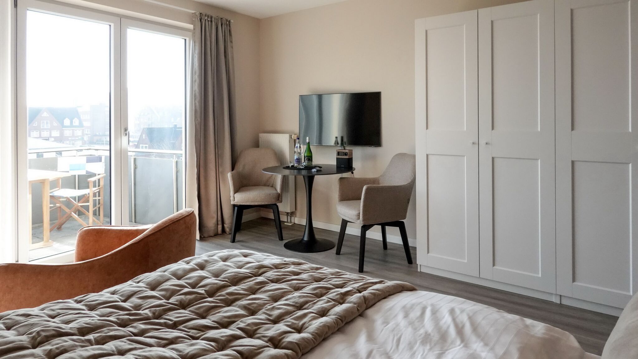 Modernes 1-Zimmer-Apartment in der Residenz Mauritius im gelben Haus, ca. 26 m², Nichtraucher. 2. OG: Wohn-/ Schlafraum mit Südbalkon, Boxspringbett (160x200), Essplatz, 2 Sessel, TV, Küchenzeile mit Mikrowelle und Geschirrspüler, Flur, Duschbad/ WC. Waschküche und Fahrradkeller im Nebenhaus Mauritius. Pkw-Stellplatz kann kostenpflichtig hinzugebucht werden. Bettwäsche und Handtücher sind zur Anreise aufgezogen! Tierhaltung ist nicht gestattet.