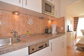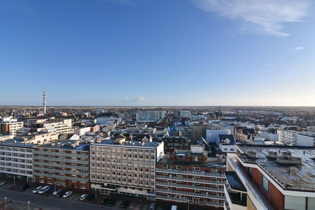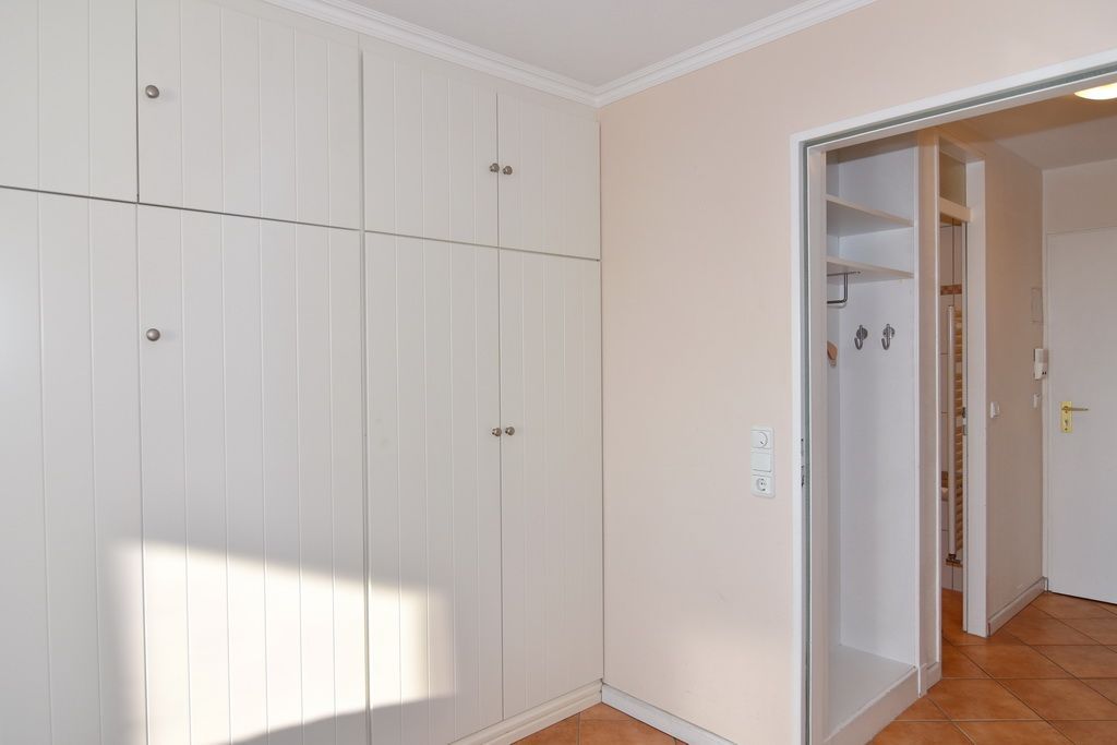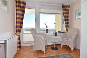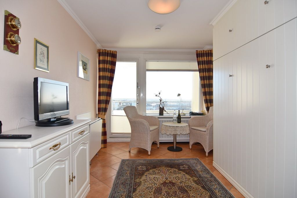 Gepflegte 1-Zimmer-Ferienwohnung, ca. 23 m², 11. OG im Haus Metropol. Nichtraucher-Whg.! Wohn-/ Schlafraum mit Doppelschrankbett (2 Matratzen), Essplatz am Fenster mit 2 Korbsessel, Radio, Kabel-TV, WLAN (ohne Gewähr), Ostbalkon mit Blick über die Insel, Küchenzeile im Flur mit Mikrowelle/Grill und Geschirrspüler, Duschbad/WC. Das Apartment ist komplett mit Terrakottafliesen ausgelegt. Tierhaltung ist nicht gestattet. Bettwäsche und Handtücher sind zur Anreise aufgezogen. Ein PKW-Stellplatz kann kostenpflichtig zugebucht werden.