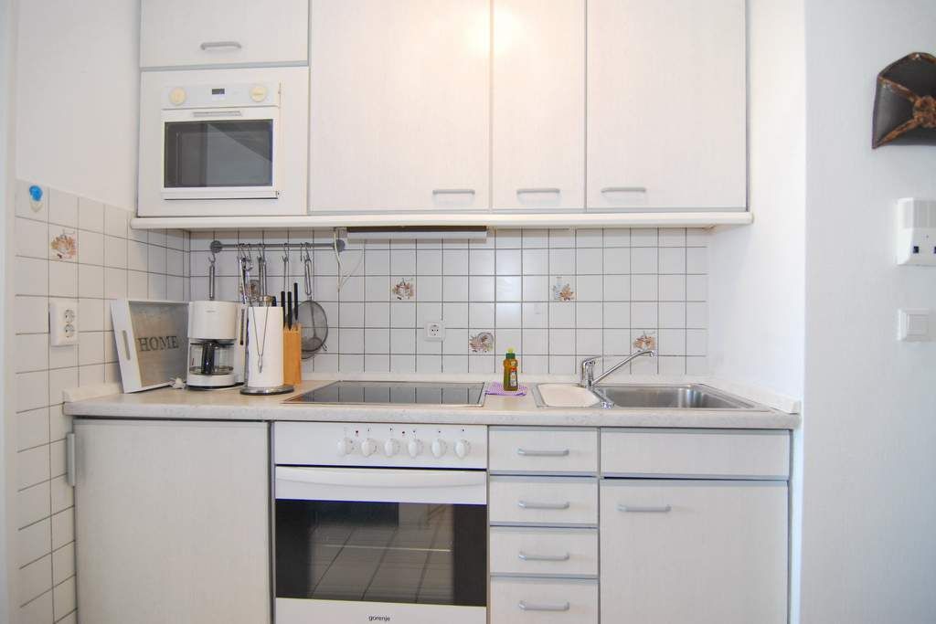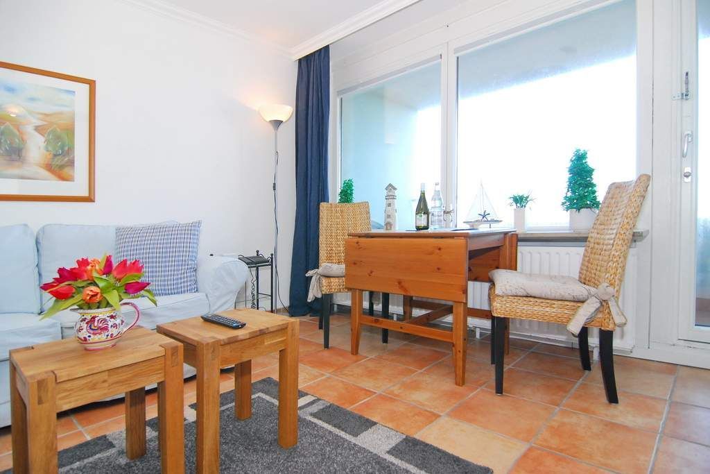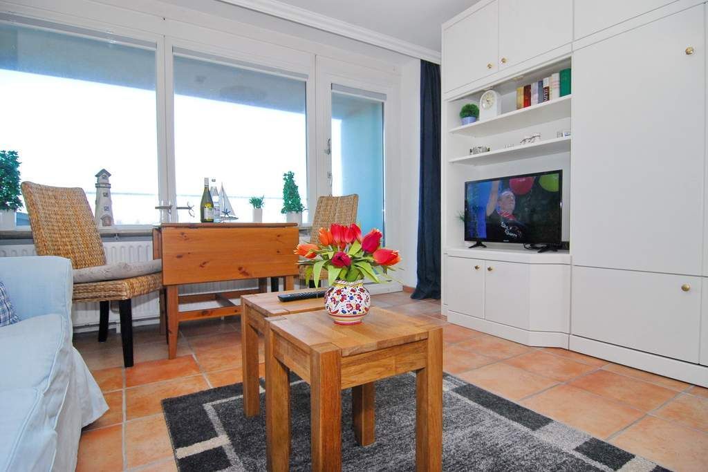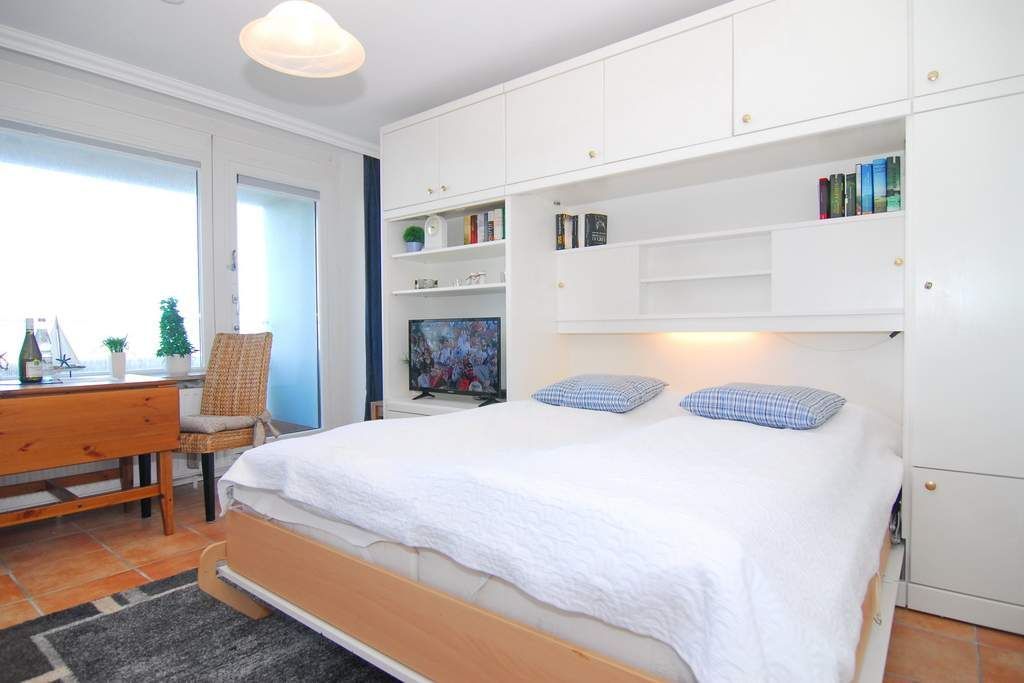 1-Zimmer-Ferienwohnung, ca. 30 qm, im 4. OG zur Landseite Haus Metropol. Nichtraucher-Whg.! Wohn-/ Schlafraum mit Doppelschrankbett, Couch und Sessel, Eßplatz am Fenster, Radio, Kabel-TV, W-Lan (ohne Gewähr), Küchenzeile im Flurbereich mit Mikrowelle, Duschbad/WC. Das Appartement ist gefliest. Ostbalkon mit Balkonmöbeln. Tierhaltung ist nicht gestattet! Bettwäsche und Handtücher sind zur Anreise aufgezogen. Ein PKW-Stellplatz kann kostenpflichtig zugebucht werden.